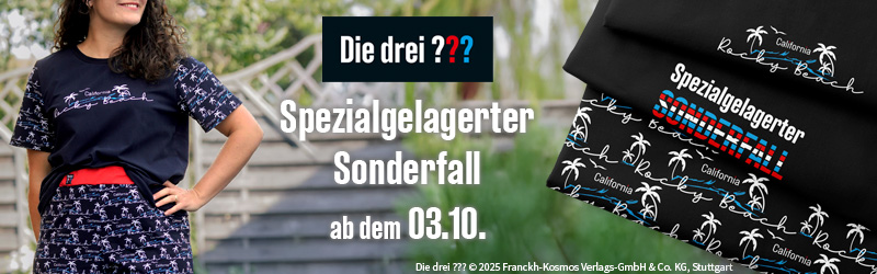 In dieser Woche geht es mal wieder nach Rocky Beach. Na, wie wär es? Einmal dorthin reisen und die Sunrise Road entlang gehen. Den Marktplatz mit der atemberaubenden Fred Fireman Statue bestaunen, sich in Giovannis Eiscafé ein Eis gönnen, bei Porter ein Souvenir kaufen und dann mit Justus, Peter & Bob einen spezialgelagerten Sonderfall lösen. Das wäre was, oder?  Das wird wohl leider nur ein Traum bleiben. Dafür aber könnt Ihr am Freitag in unserem Shop unsere neue Kollektion ergattern. Das ist Euer ganz persönlicher Sonderfall! Die drei ??? – Sonderfall Unsere neue „Die drei ???“ Kollektion besteht, wie schon erwähnt, aus einem Panel undRead More →