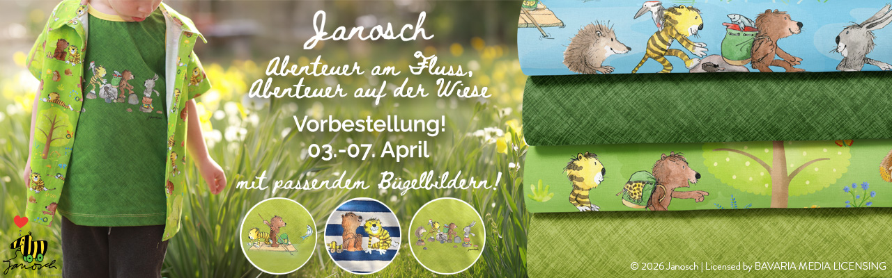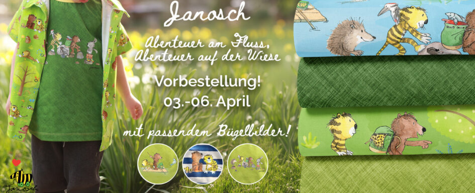 Erinnert Ihr Euch noch an diese wunderschönen Janosch Designs? Abenteuer am Fluss und Abenteuer auf der Wiese? Designs die von Freundschaft, Mut, Freude und gemeinsamen Abenteuern erzählen. Immer wieder habt Ihr Euch Nachschub gewünscht und genau diesen Wunsch erfüllen wir Euch in dieser Woche. Zwei Allover mit passenden Kombistoffen stehen Euch zur Auswahl. Passende Bügelbilder runden die Kollektion diesmal ab. Und wisst Ihr was das Beste ist? Das Ganze gibt es als Vorbestellung. Natürlich wieder mit einem liebevoll geschnürten Spar-Paket für Euch. Na, wie klingt das? Janosch – Abenteuer am Fluss Genau wie die Erstauflage „Abenteuer am Fluss“ stammt dieses Design aus der Feder von RapelliRead More →