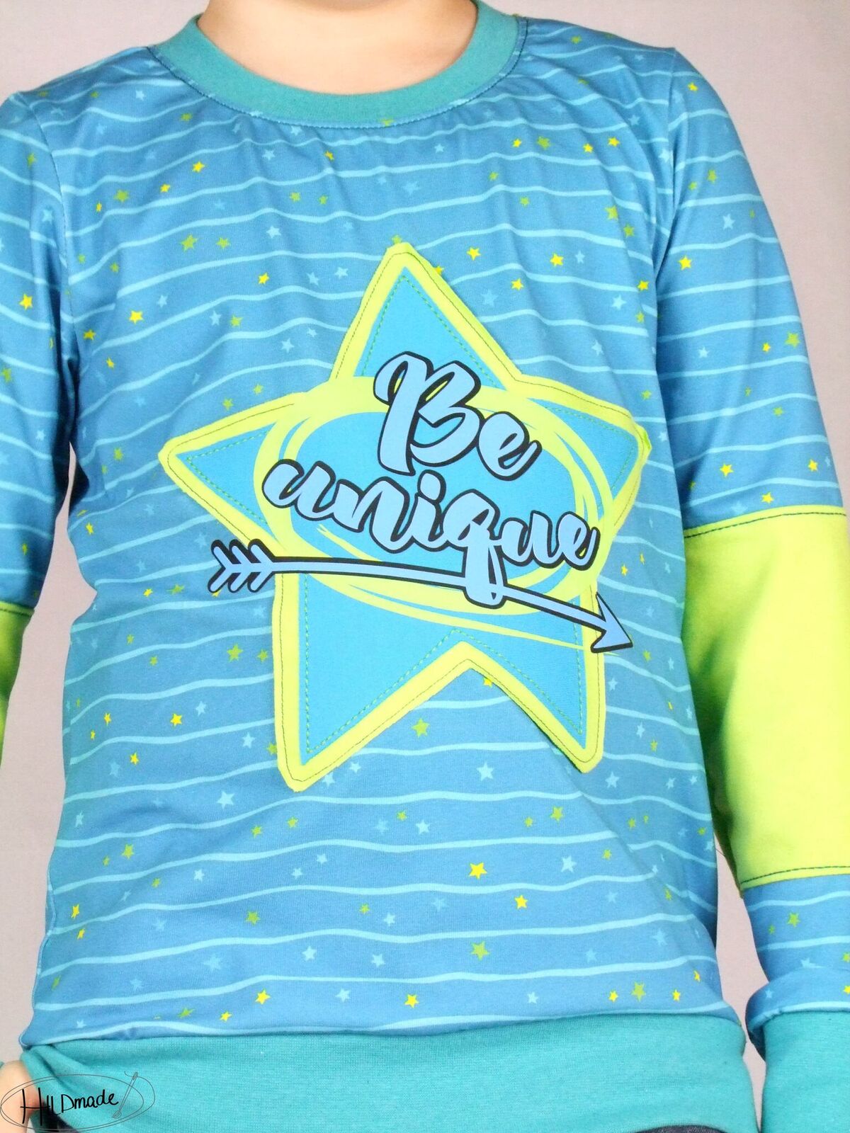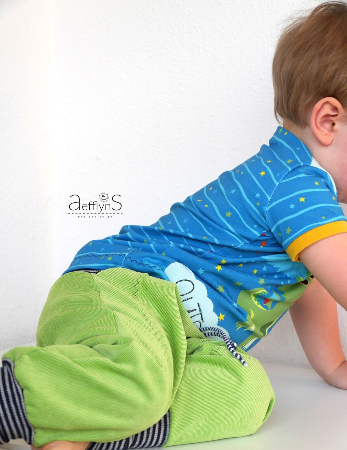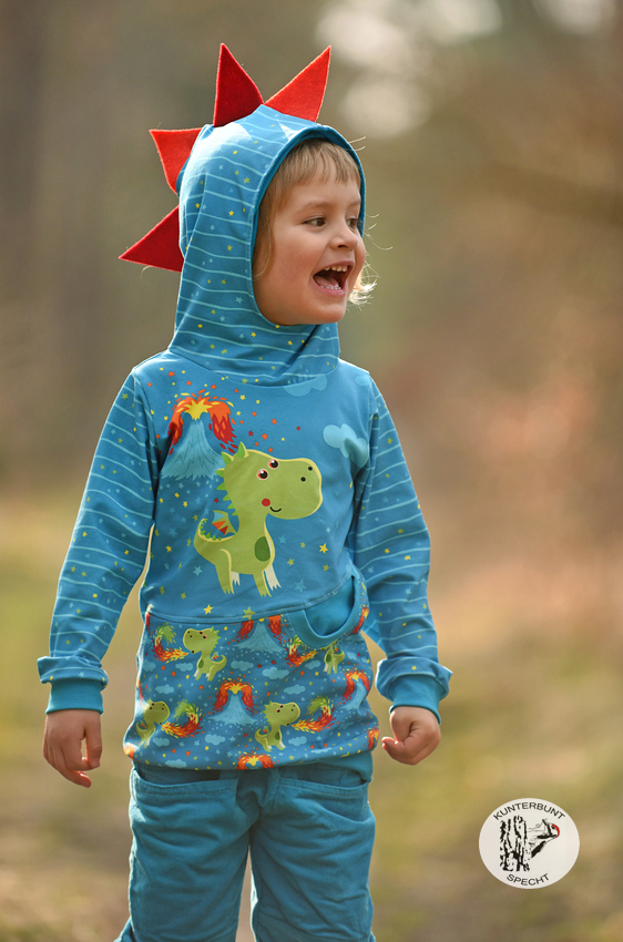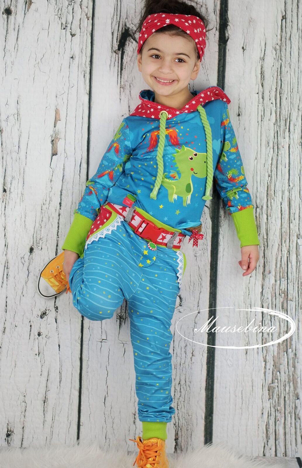 „Aquamarin“ in Kombination mit bunten fröhlichen Farben ist genau das Richtige für Deinen süssen Jungen oder freches Mädchen. Denn, wie Du an den Designbeispielen sehen kannst, lässt sich dieses feurige Freundchen auch ganz hervorragend für kleine Mädchen vernähen.