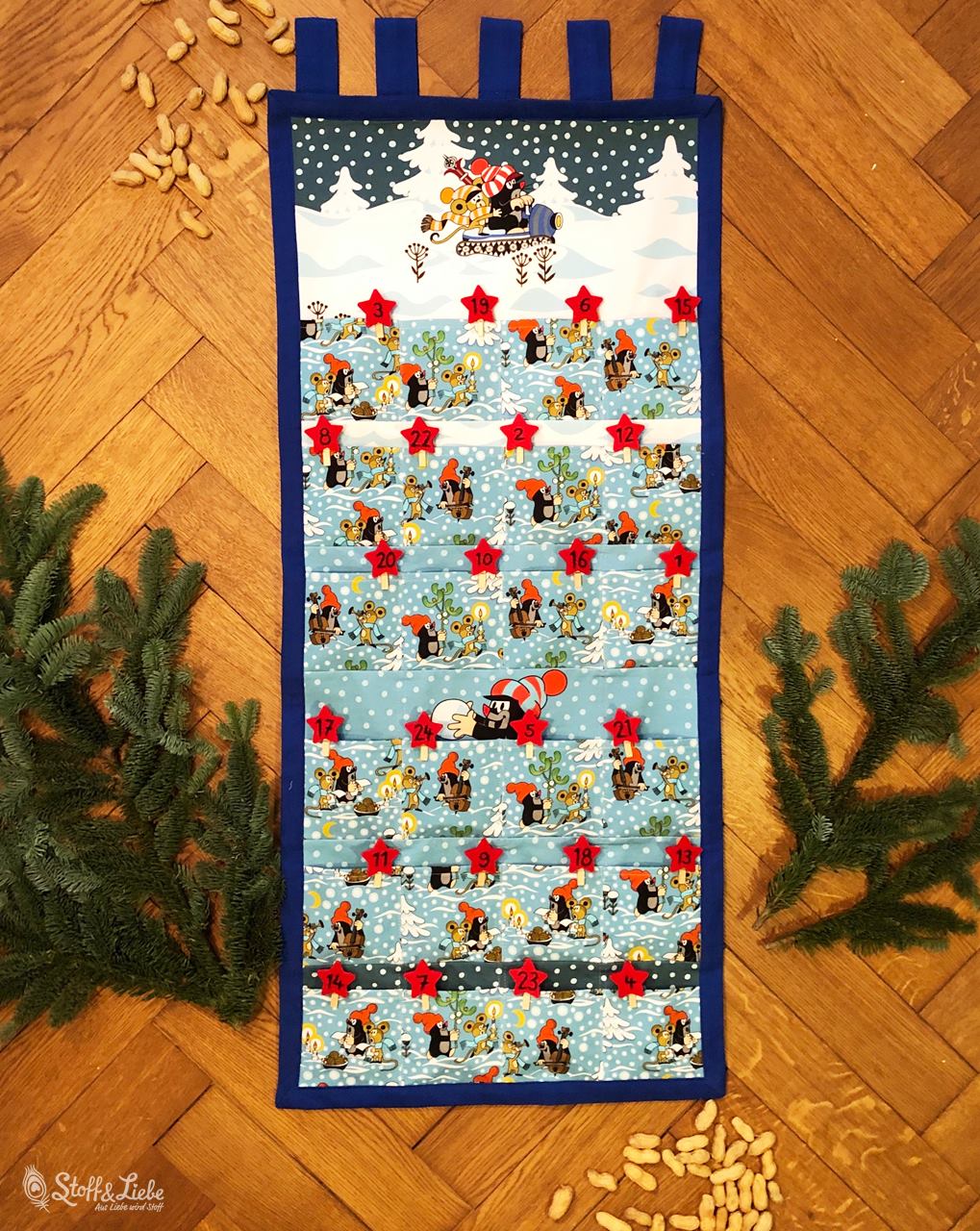 An nur einem Vormittag, Nachmittag oder Abend könnt Ihr einen solchen Kalender nähen. Noch schnell die Lieblingsschokolade eingekauft, ein paar liebvolle Briefchen geschrieben und/oder andere Herzensdinge besorgt – befüllt – fertig und startklar für kommmenden Samstag!