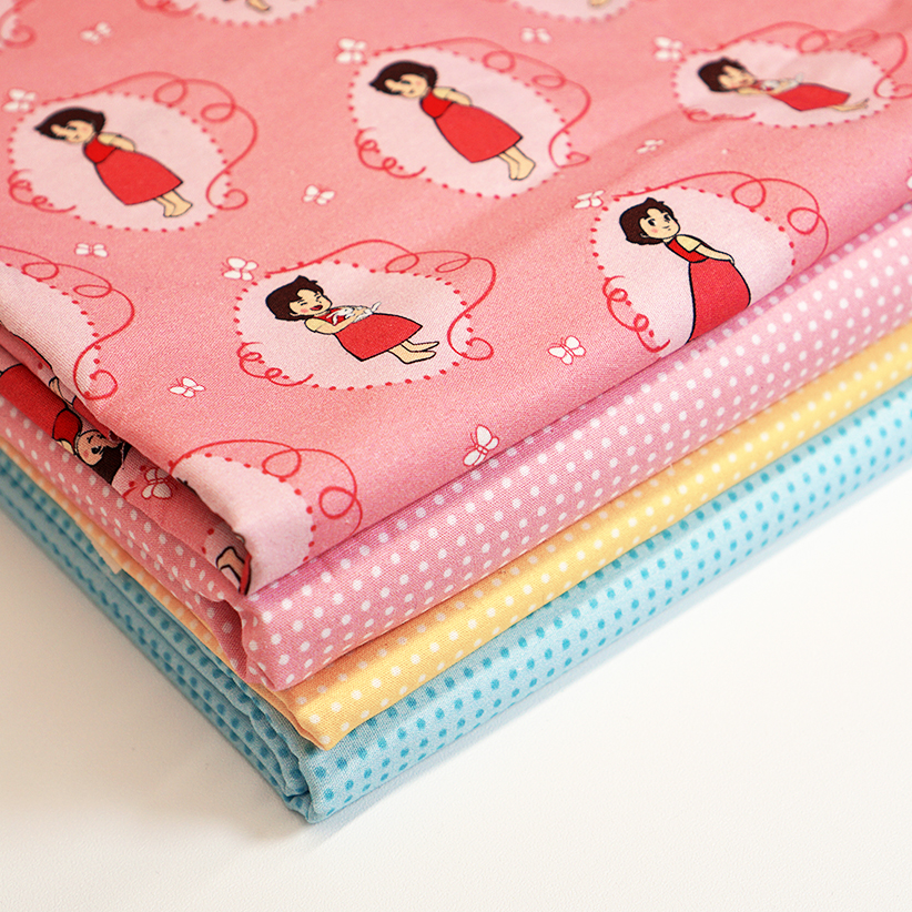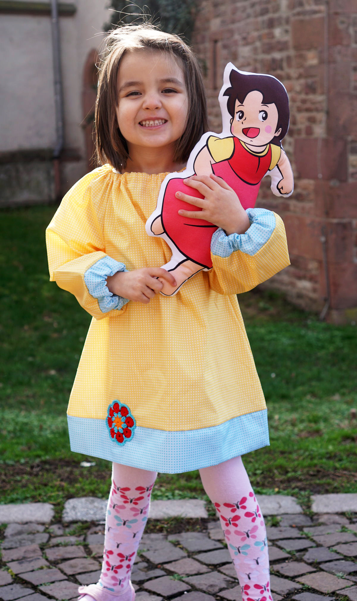 Die Heidi Nostalgie ist zurück! Dieses Mal auf einer wunderschönen, weichen Popeline, 100% Baumwolle. Die Heidi ist mit einer Größe von ca. 4,4 cm auch super für kleinere Projekte geeignet, aber auch auf einem Kleidchen, wie bei unserer kleinen Maid wirkt sie zuckersüß! Die Heidi kommt nicht alleine, sie hat tolle Kombistoffe dabei. Minipunkte in Rosé, Himmelblau und Mango.