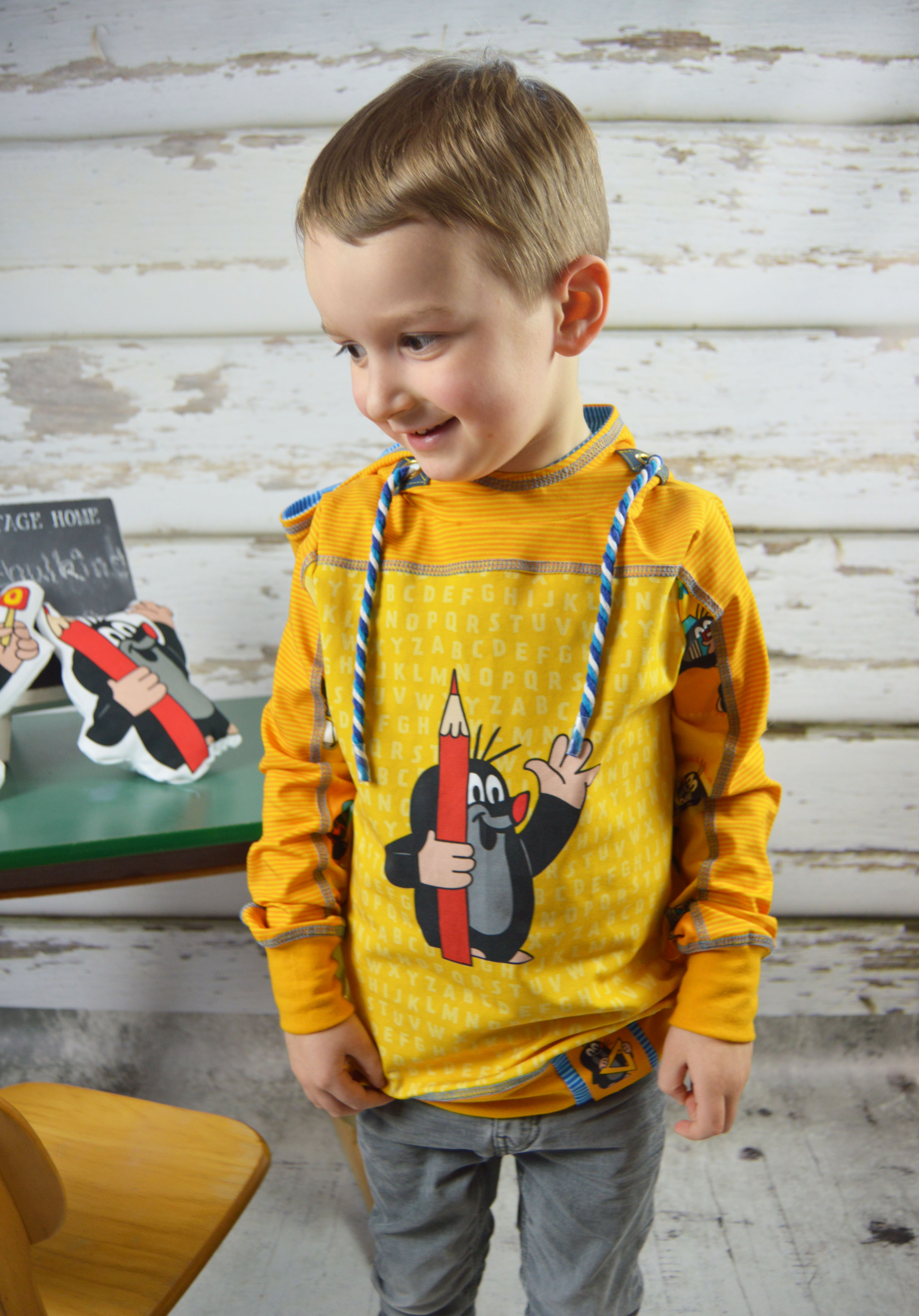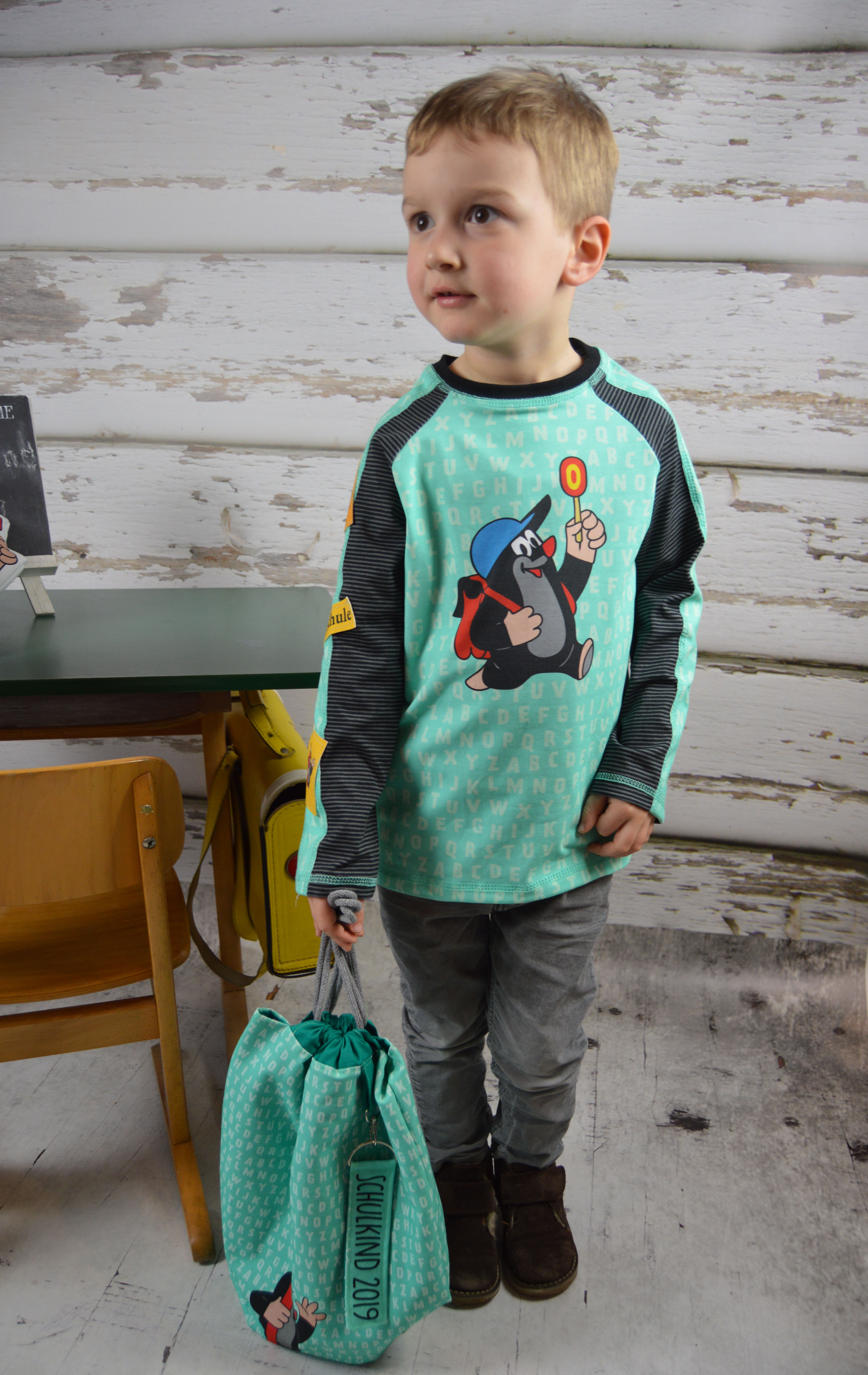 Passend zur Einschulung gibt es eine Neuauflage von „Der Kleine Maulwurf – Endlich Schule“, dieses Mal in einem tollen Orange-Gelb und auf Bio-Jersey!
