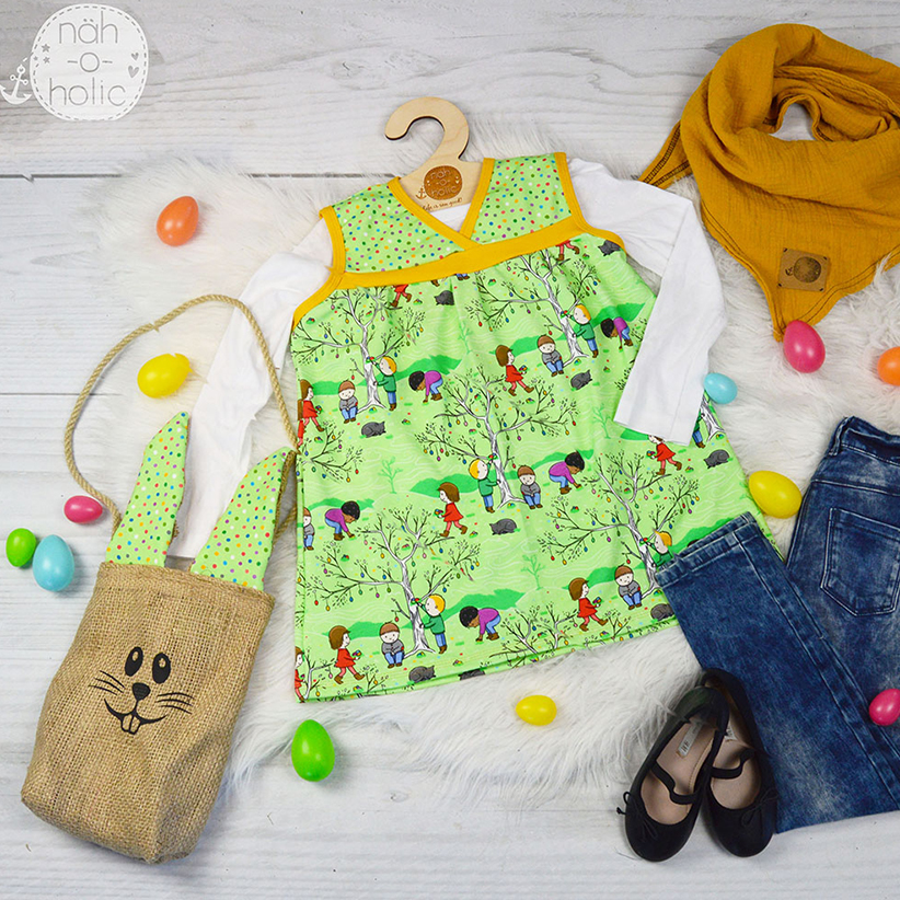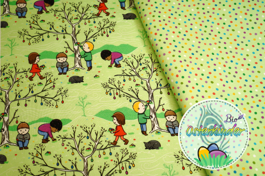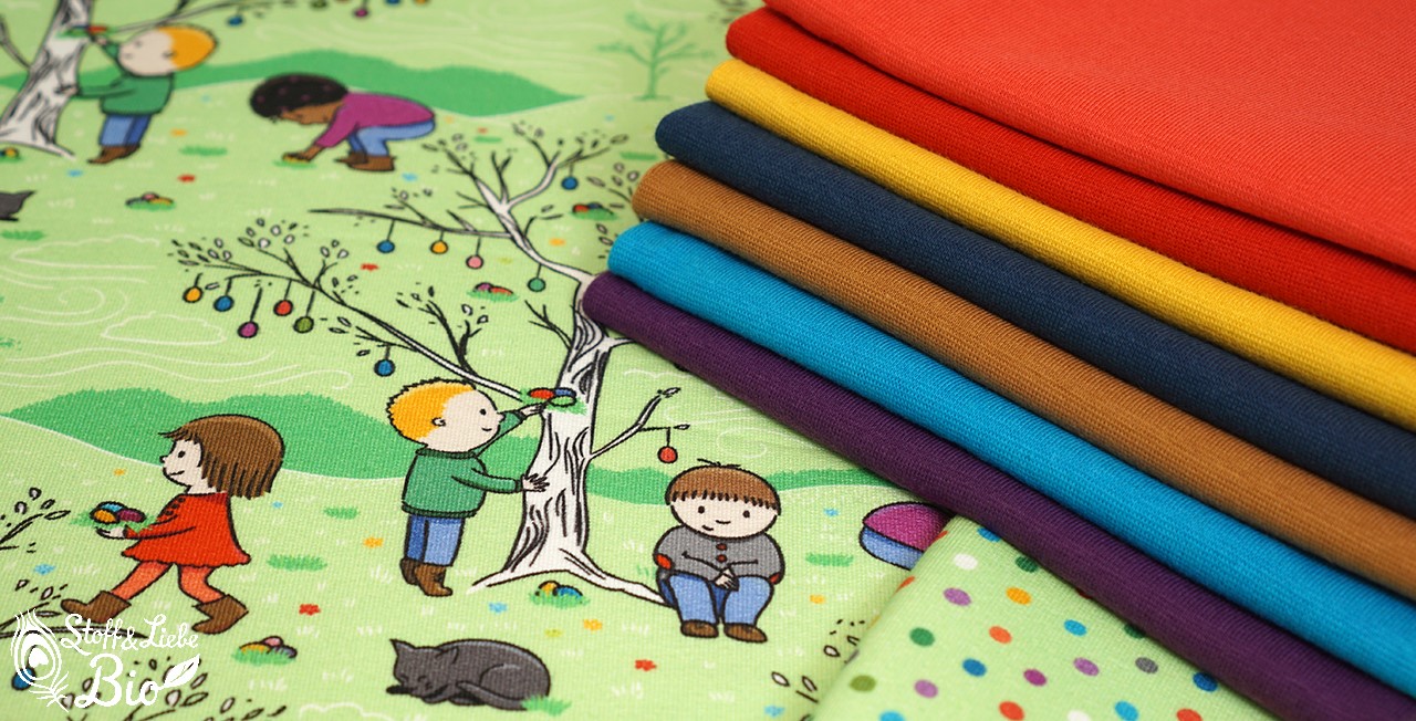 Auf mit den Osterkindern zur Ostereiersuche im neuen Hoodie, Onesie, Kuschelkleidchen oder was auch immer Dir für Deine Herzensmenschen einfällt. Die Punkte lassen sich ganz wunderbar auch einzeln vernähen oder mit unserer Pamuk-Kollektion kombinieren.