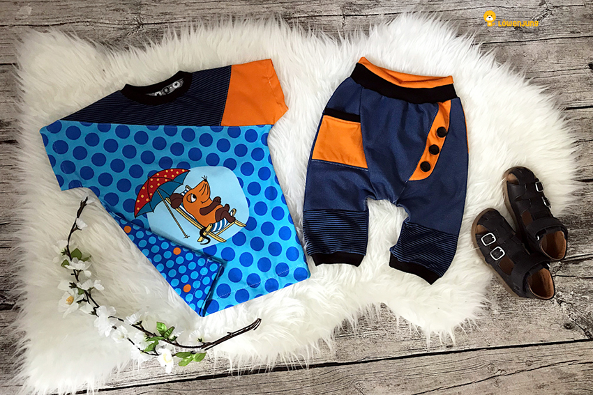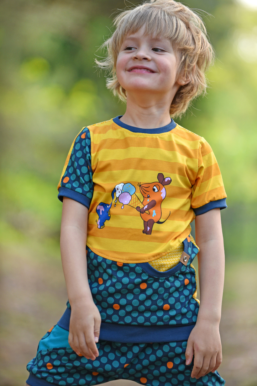 Das Panel lässt sich ganz wunderbar kombinieren, zum Beispiel mit unseren Punkten oder unserem neuen Jersey in Mausorange. Allerdings machen die Kombistoffe alleine verarbeitet auch einen nachhaltigen Eindruck.