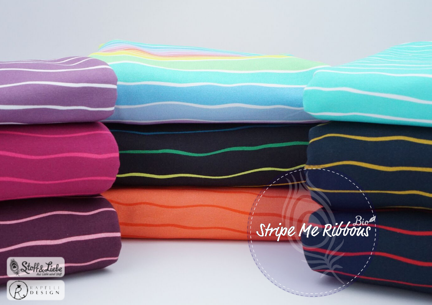Da ist sie: Die dritte Auflage unseres beliebten Stripe Me Designs. Unsere Streifenliebe in NEUN neuen Farben, die keine Wünsche offen lassen. Auf vielfachen Wunsch haben wir die tollen Stripe Me Ribbons noch einmal aufgelegt! Neue Farben und die ersten Stripe Mes auf Bio French Terry.