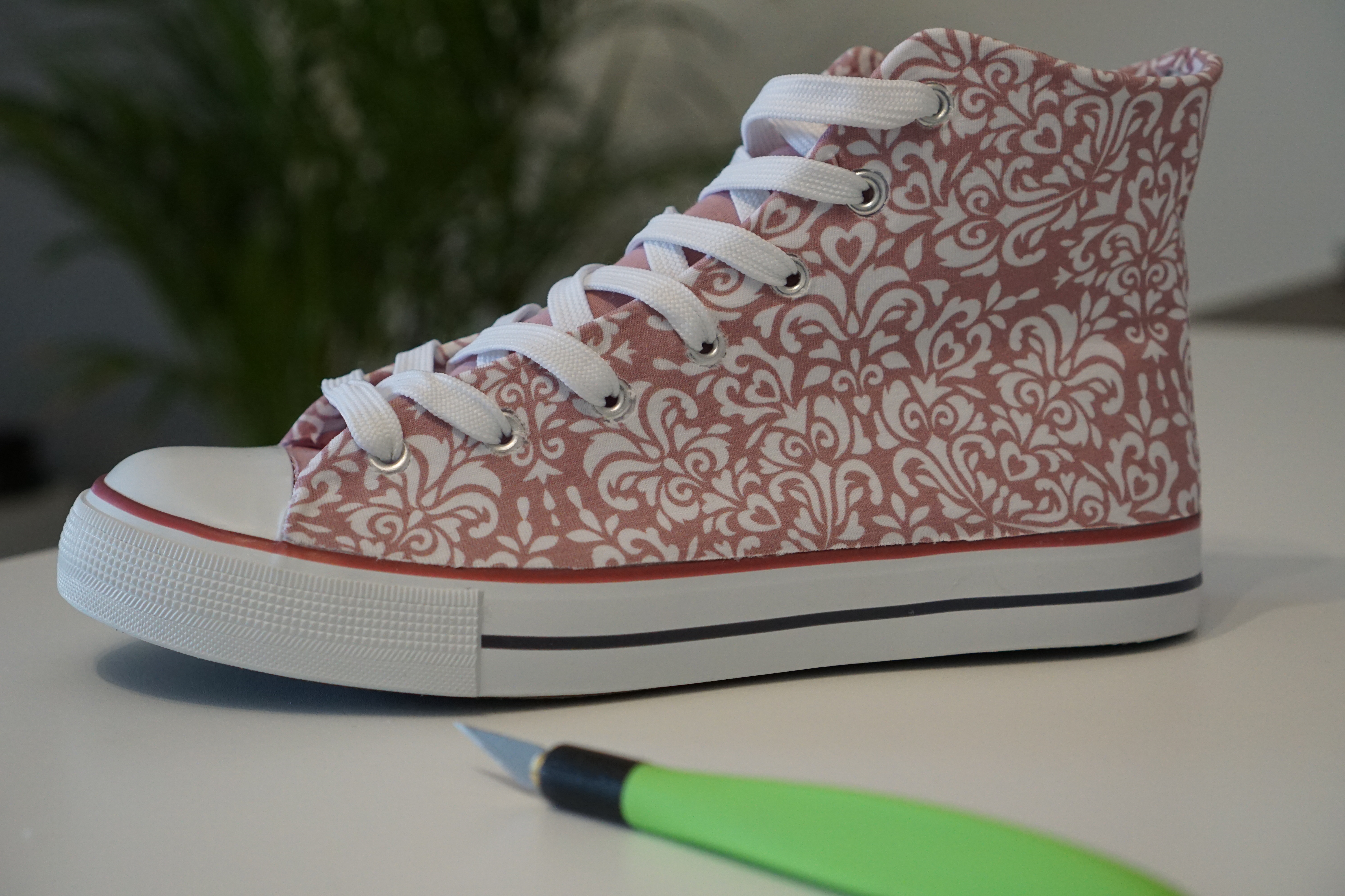 Ich war mir auch sicher … dass das Thema mit dem bekleben von Stoffschuhen mittlerweile total durch ist … Doch ich hab mich wohl echt getäuscht … denn wenn ich mit meinen „weltschönsten“ Turnschuhen durch die Gegend hüpfe … darüber berichte oder angesprochen werde … weiß keiner Bescheid.