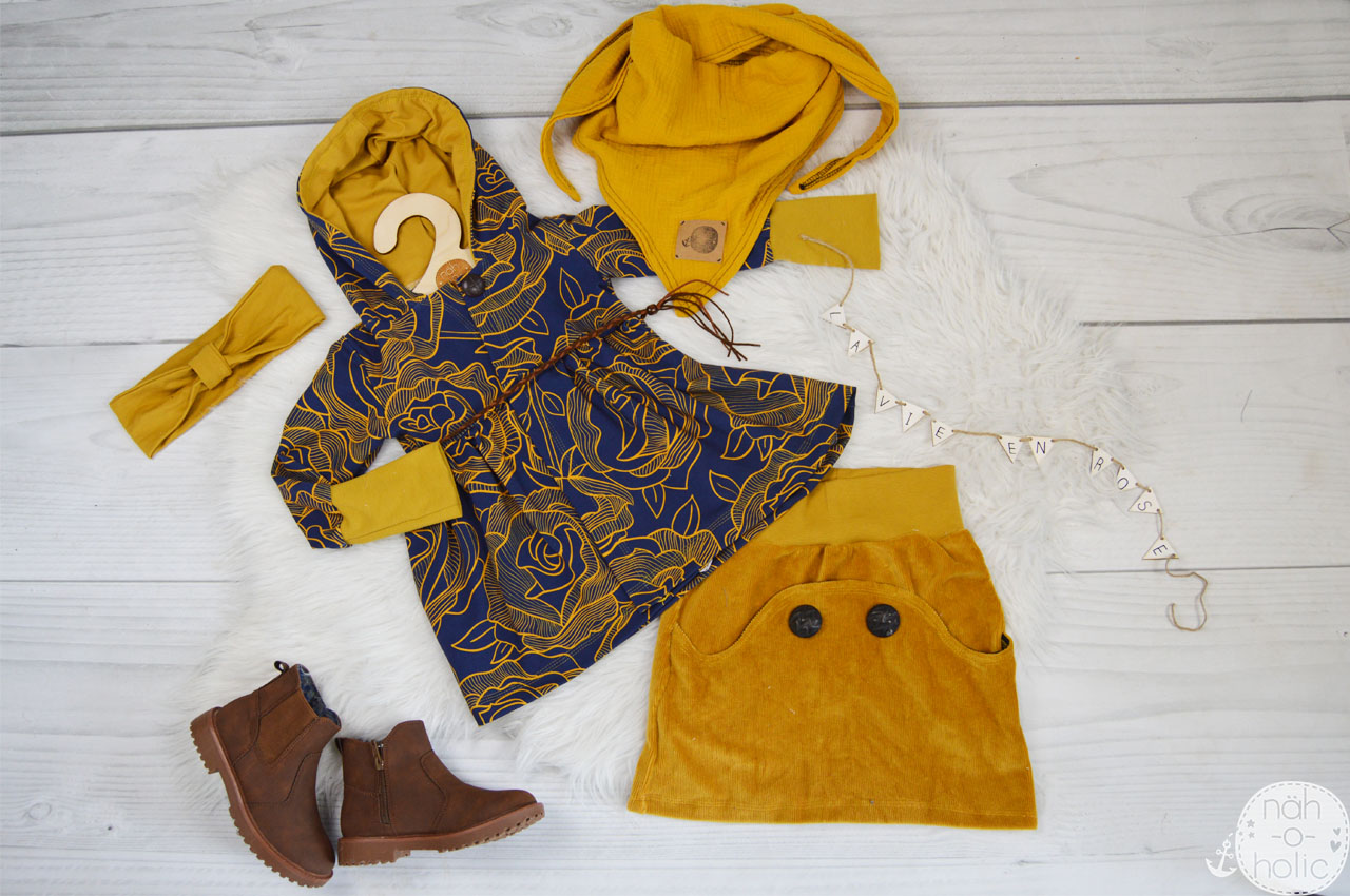 Eine Farbkombi herrlich zurückgenommen Ton in Ton (Mauve mit einem etwas helleren Aubergine) und eine etwas leuchtendere Farbvariante (in einem schönen Dunkelblau/Senf). Beide Farben passen wunderbar in den Herbst und Winter. Der Bio French Terry (95% Bio Baumwolle und 5% Elasthan) wurde im hochwertigen Digitaldruckverfahren von einem GOTS zertifizierten Betrieb produziert. Die maximale Bestellemenge beträgt 3 Meter pro Farbe/Bestellung, so dass Du auch Projekte mit mehr Stoffverbrauch bedenkenlos umsetzen kannst.
