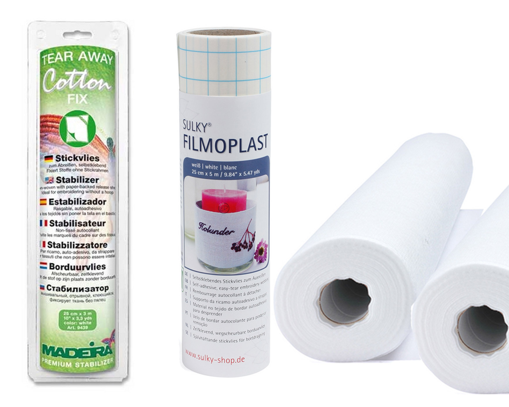 Selbstklebendes Vlies: Sulky Filmoplast und Madeira Cotton Fix