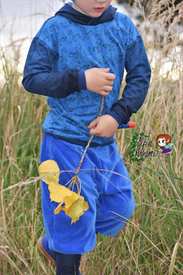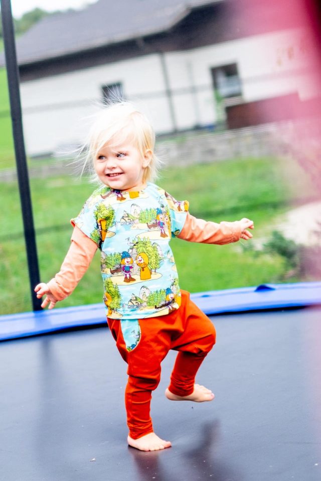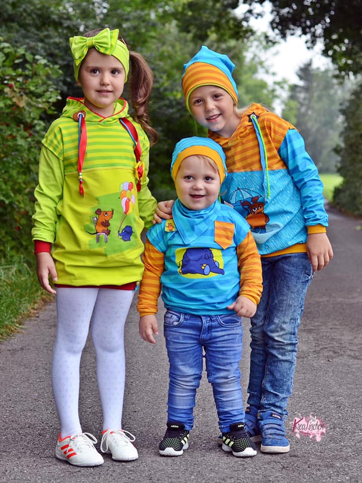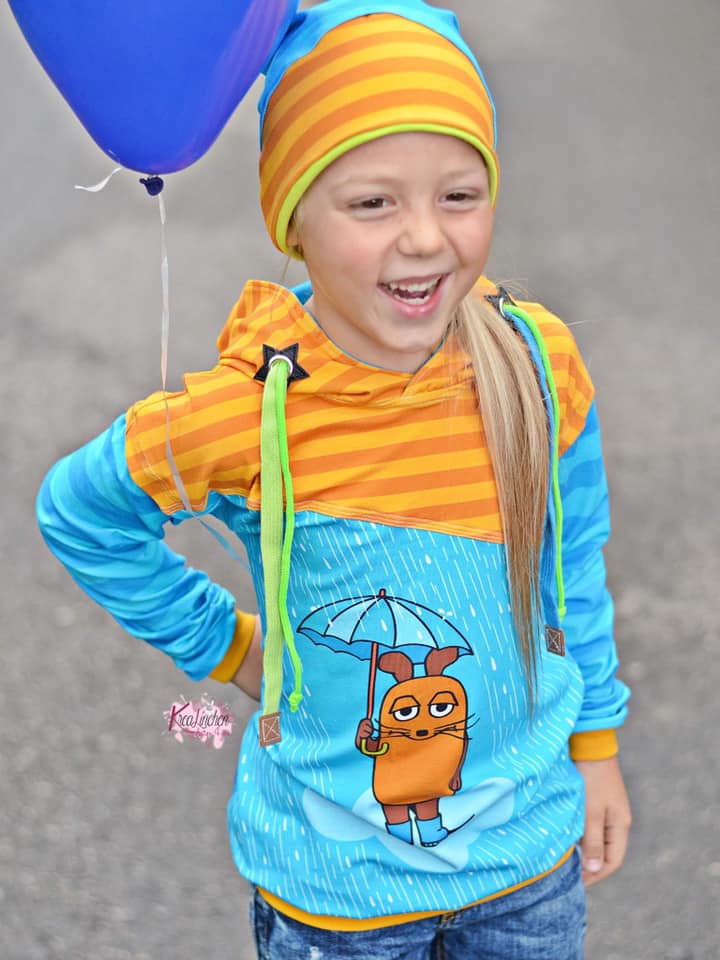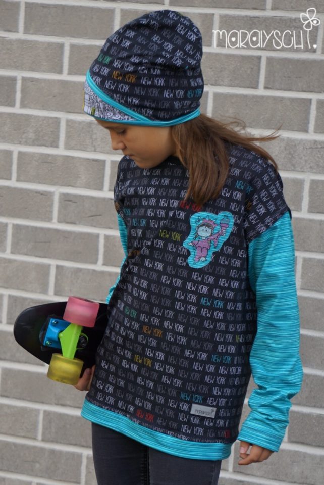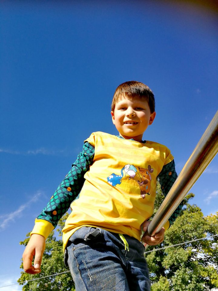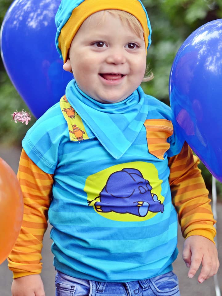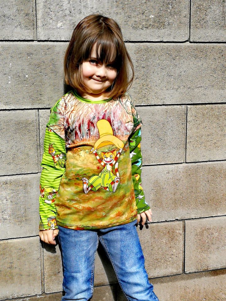Raffnix ist ein variantenreicher Schnitt in den Größen 74-146 mit überschnittenen Ärmeln. Hierdurch eignet sich der Schnitt übrigens perfekt zur Verarbeitung von Stoff & Liebe Panels, denn Vorder- und Rückteil bestehen aus nur zwei Teilen.