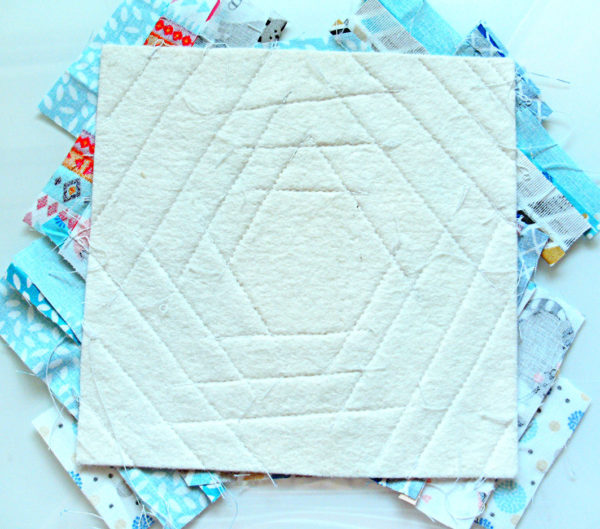 Crazy Patchwork wird normalerweise wie klassisches Patchwork gearbeitet, also Streifen werden aneinander genäht, ein Sandwich aus 3 Lagen wird gelegt, alle Lagen werden gequiltet und die Ränder eingefasst. Die Technik die wir hier benutzen ist eine abgewandelte Version die auch die „Quilt as you go“ Technik beinhaltet. Ready? Los geht’s!
