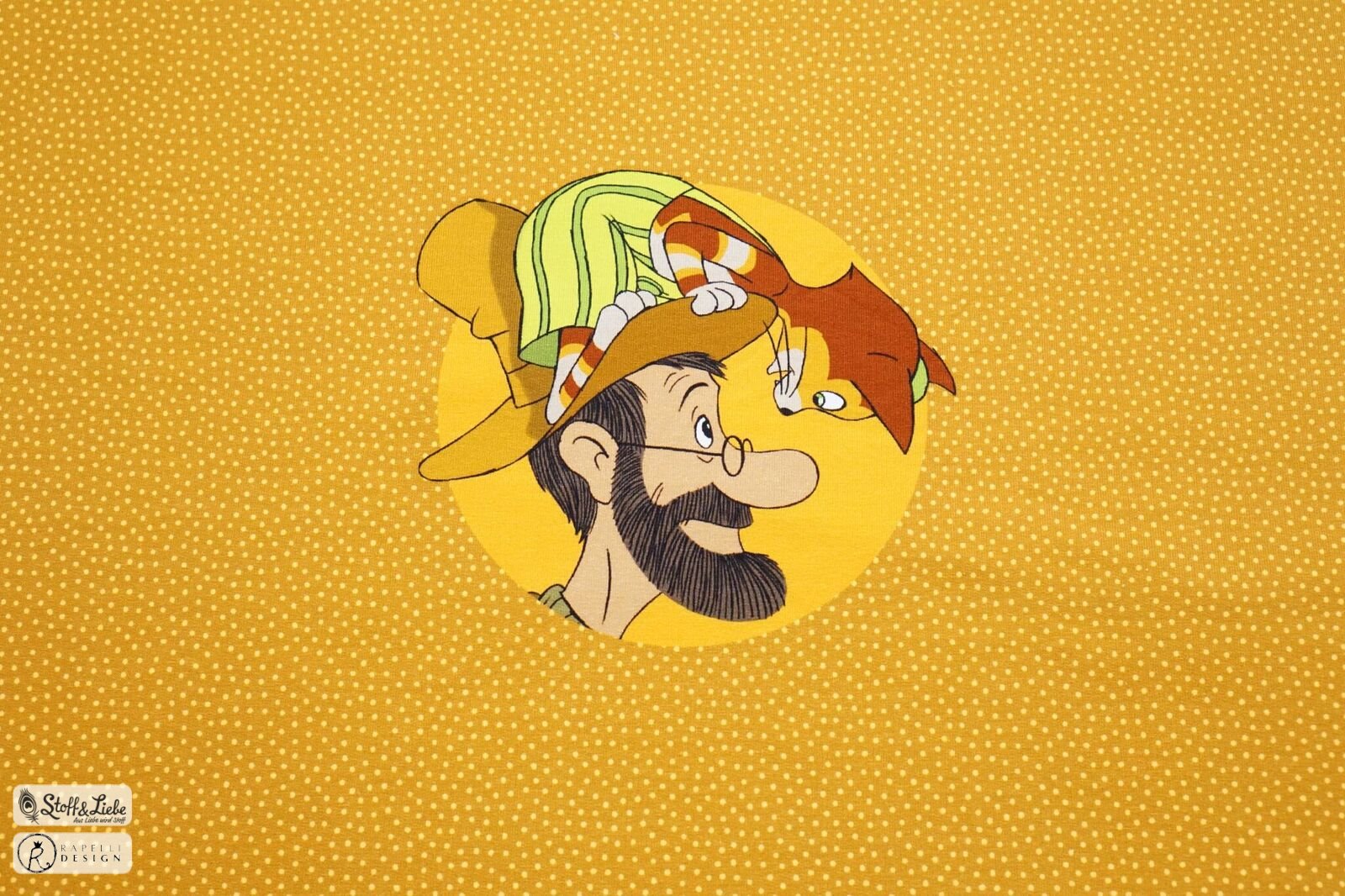 1. Hallo…gibt es den Orange farbigen Findus und Petterson Stoff nicht mehr?