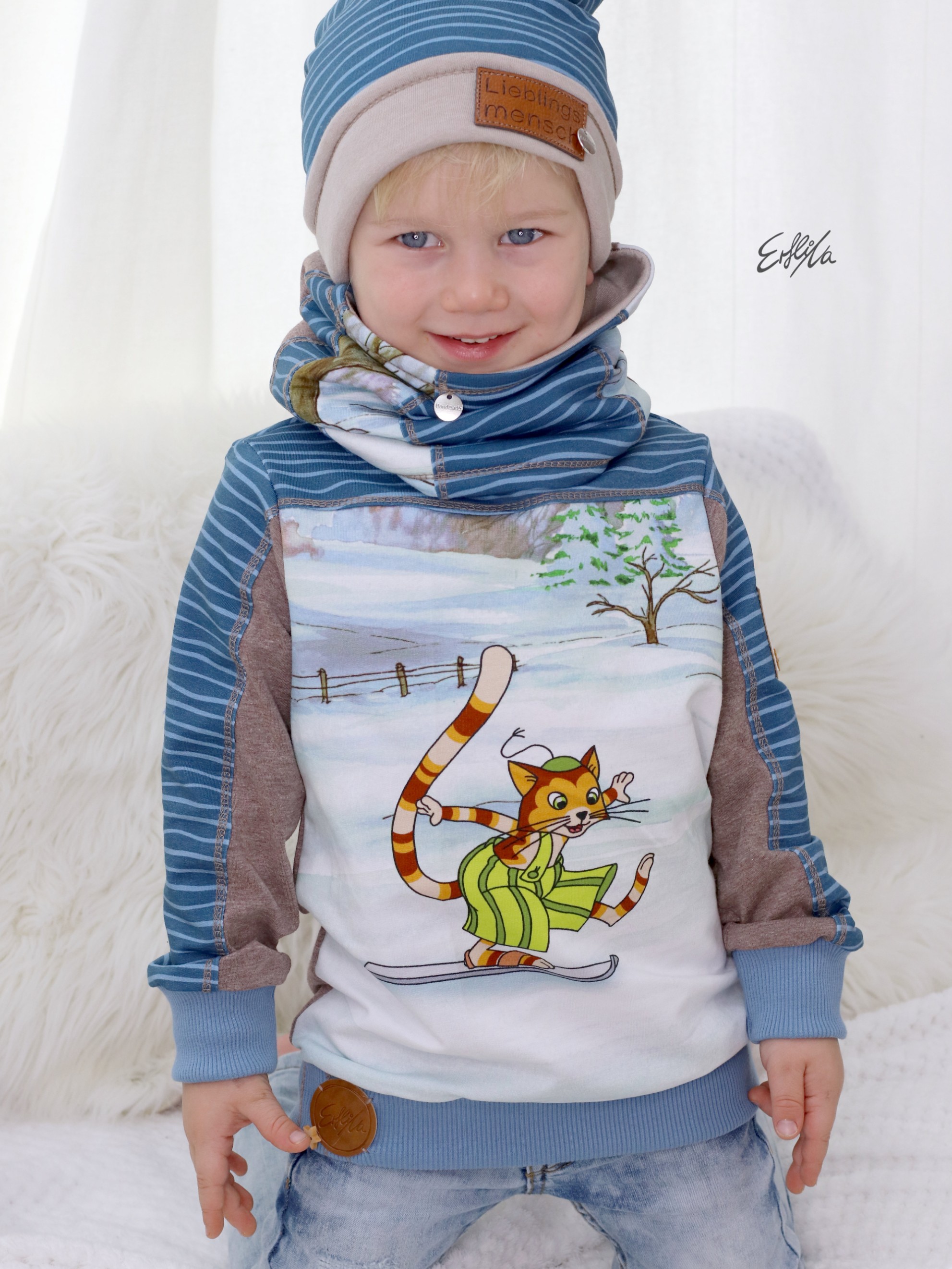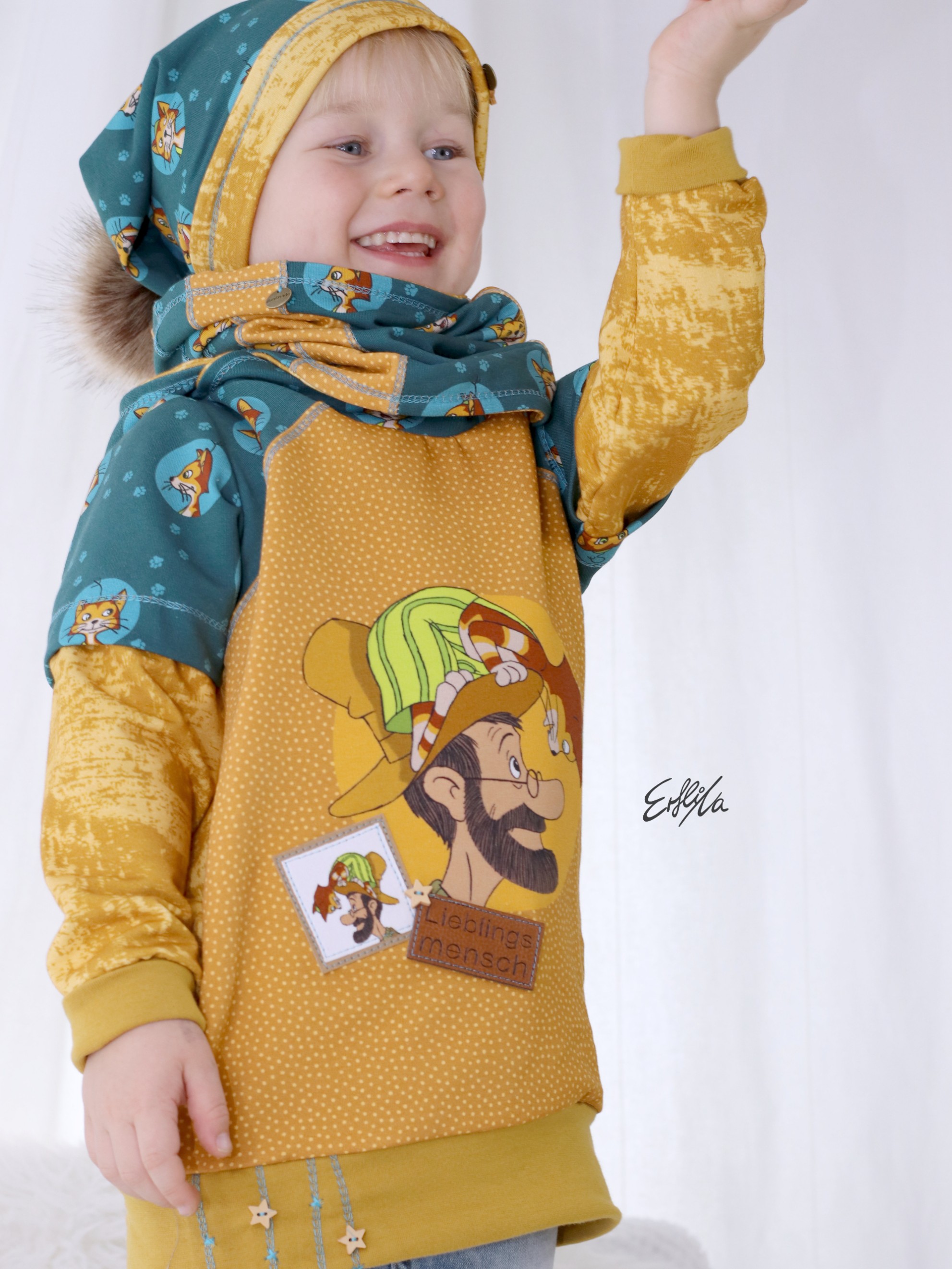 Wir finden, es wird Zeit für ein Wiedersehen mit Pettersson und dem kleinen, schlauen, frechen Kater Findus. Ihr auch? Dann haben wir heute etwas für Euch: Unsere neue Pettersson und Findus Kollektion aus French Terry.