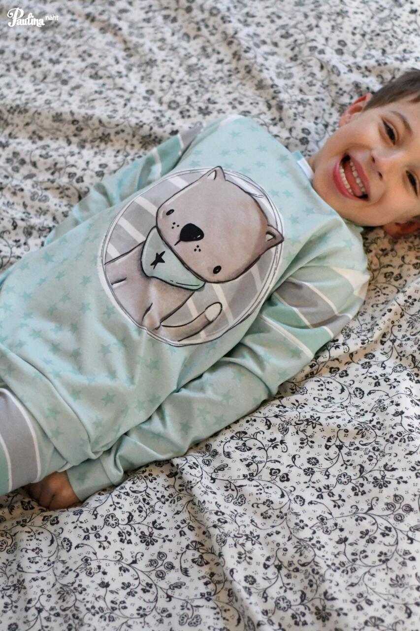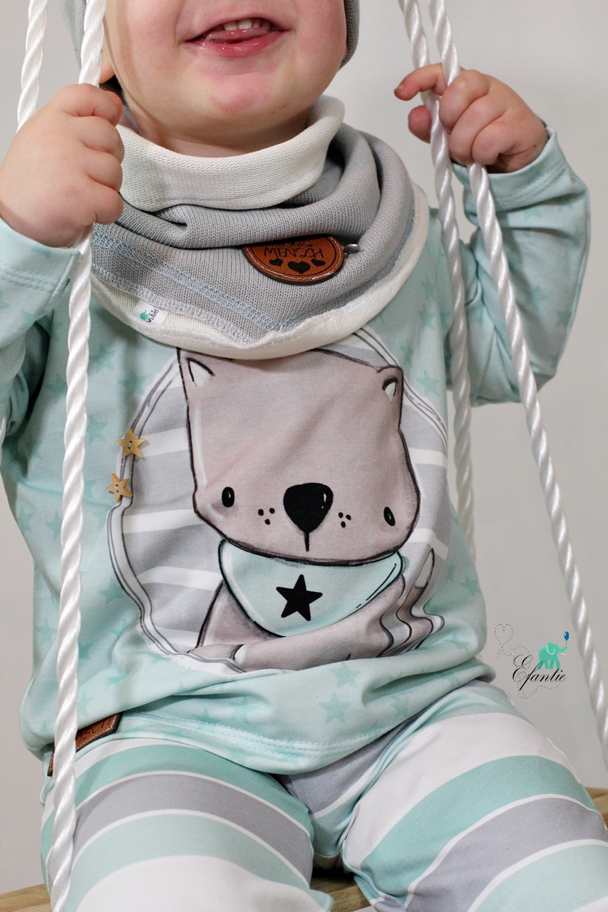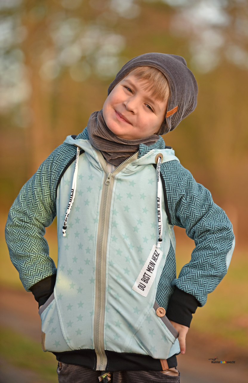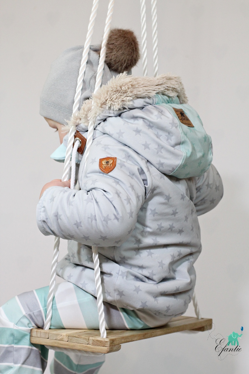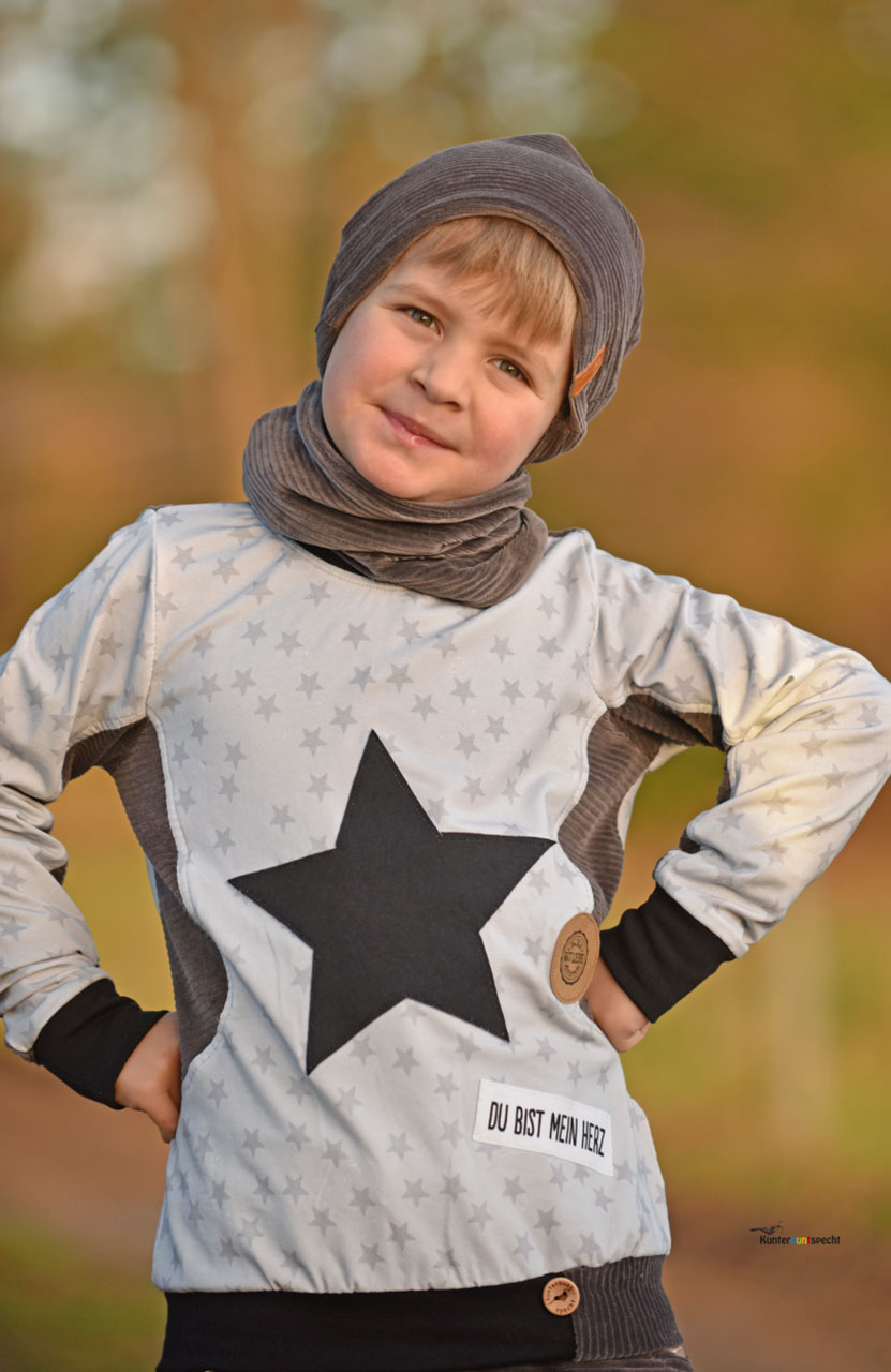 Sarah von Paul & Clara hat einen so süßen Stoff für uns (und damit für Euch!) kreiert. Die Kollektion umfasst ein Panel, welches im Rapport angelegt ist. Das heißt, das Motiv ist ca. 10 cm von der Webkante entfernt und der komplette restliche Teil ist mit den Sternen bedruckt.