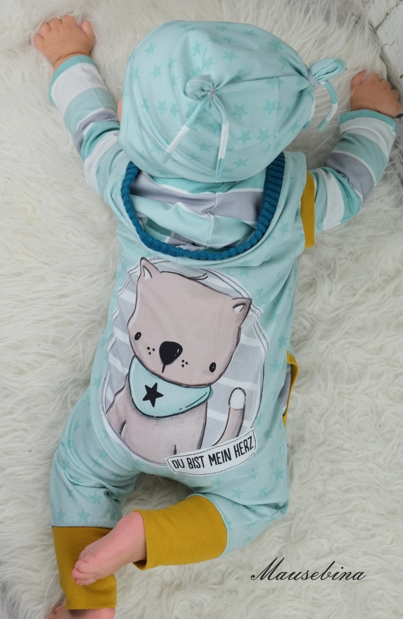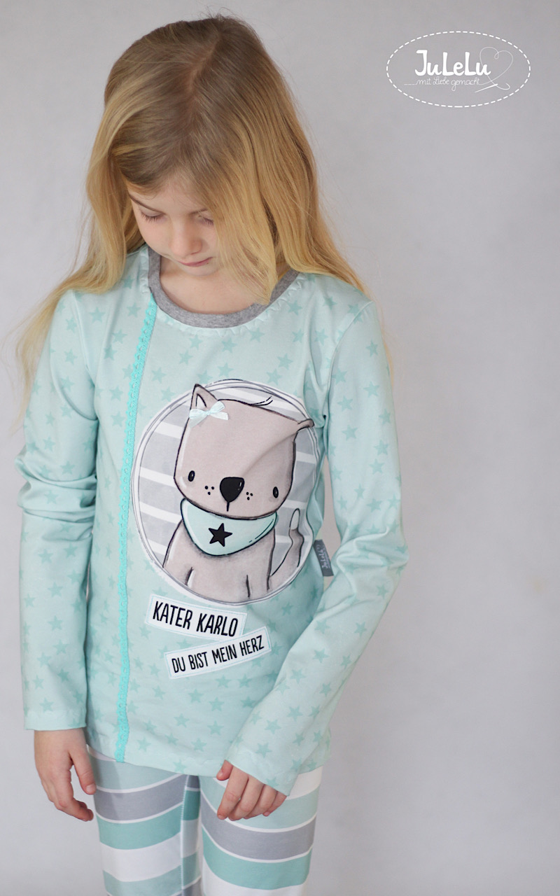 Den „Kater Karlo – Du bist mein Herz“ Sternenstoff bekommt ihr dieses Mal als Rapportabschnitt von ca. 60 cm und nicht als Meterware.