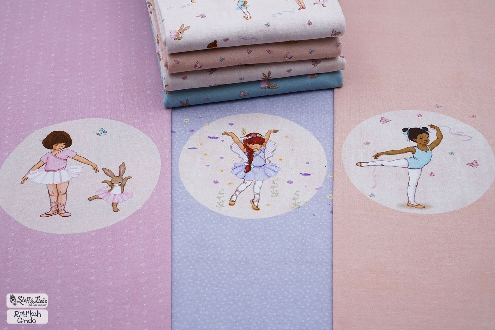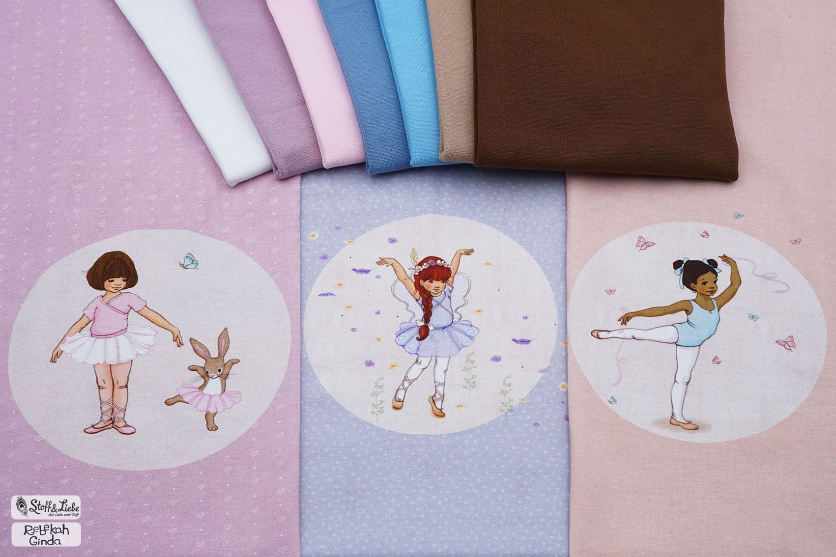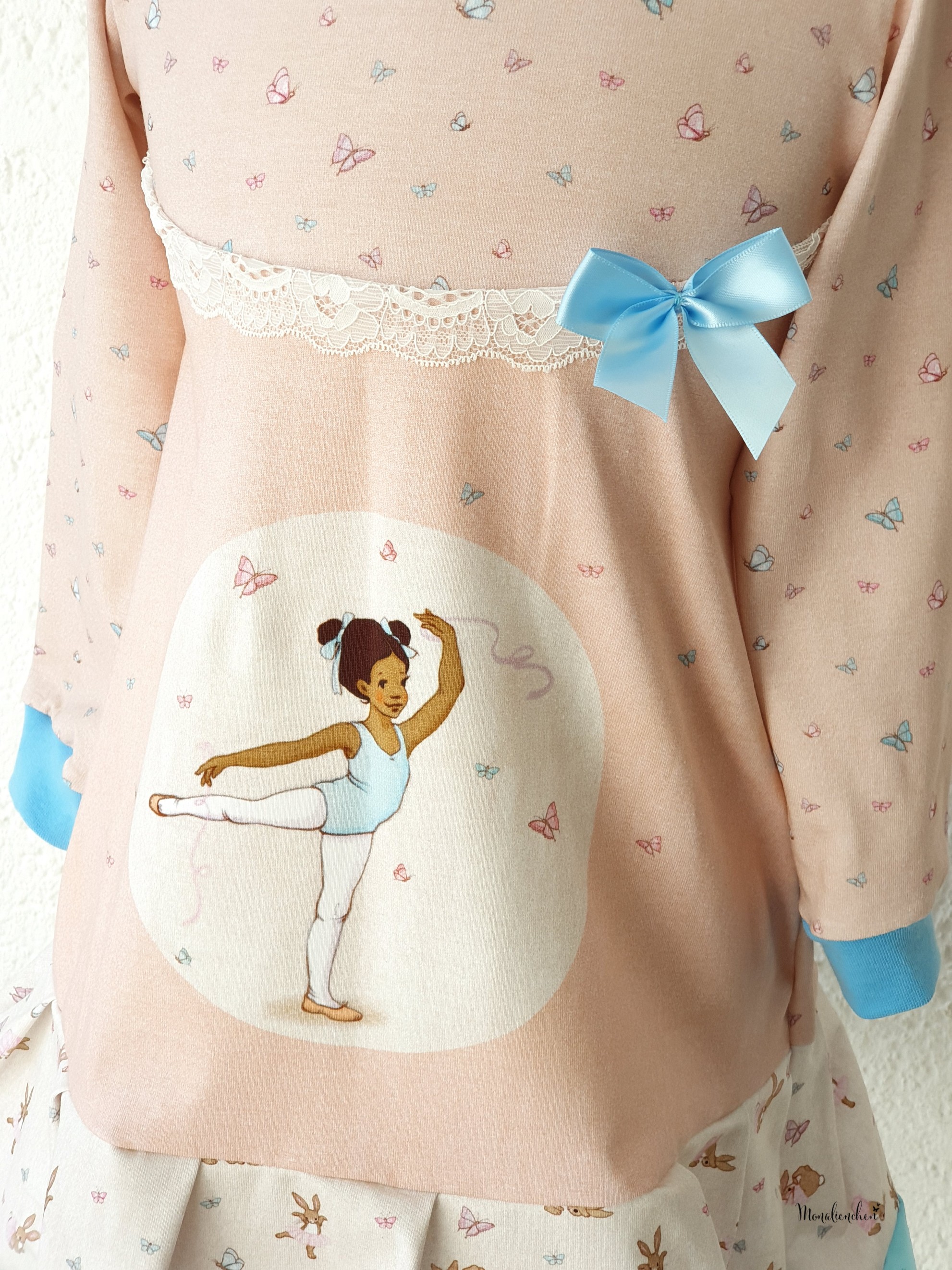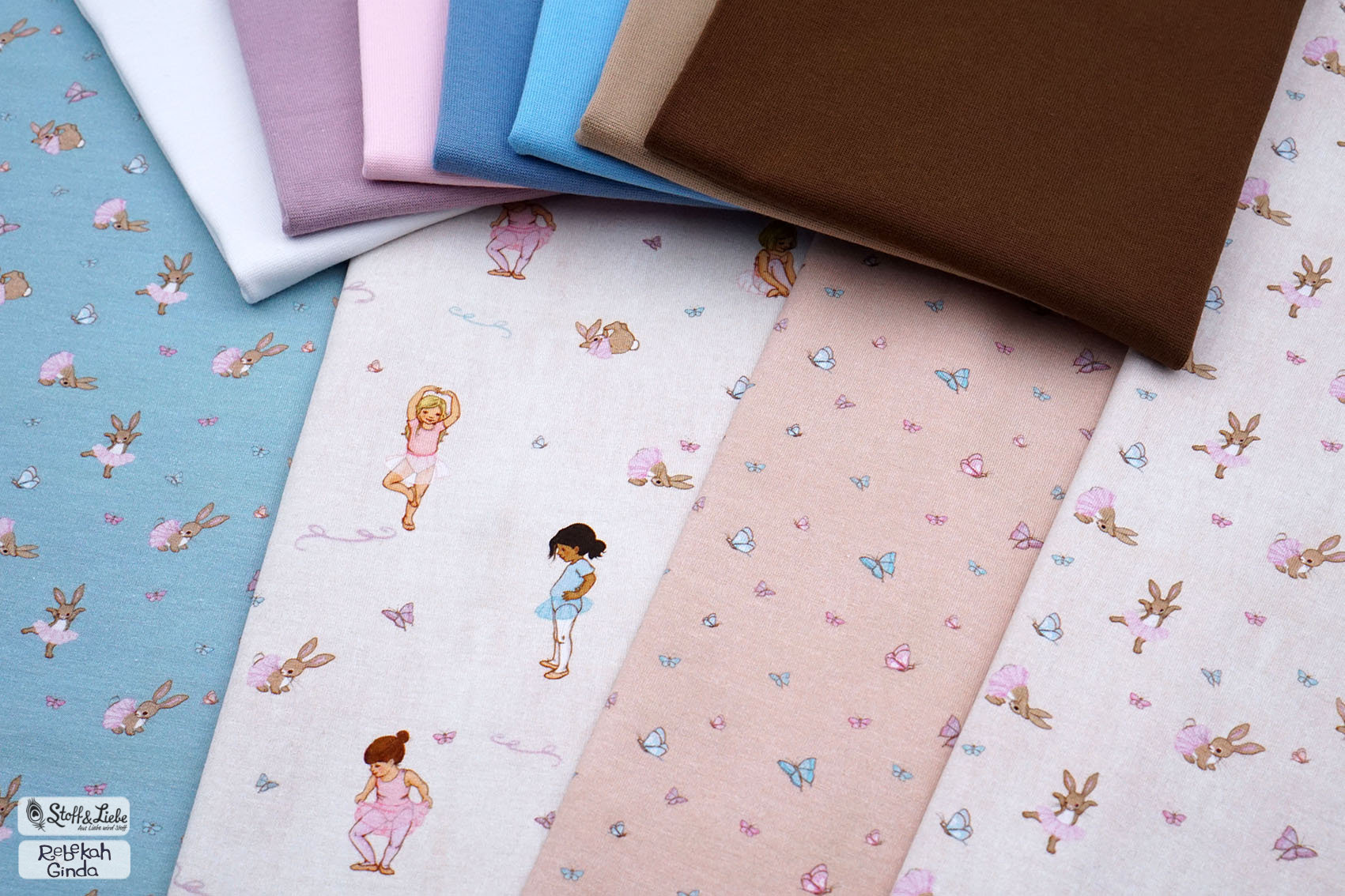 Sollen wir Euch in Geheimnis verraten? Der Hauptstoff ist unser persönlicher Favorit in dieser Kollektion. Wie geht es Euch damit? Die Ballerinas sind über den ganzen Stoff verteilt, ebenso wie die Schmetterlinge. Das lockert den Stoff ungemein auf, aber lässt ihn auch gleichzeitig zart und zurückhaltend erscheinen.
