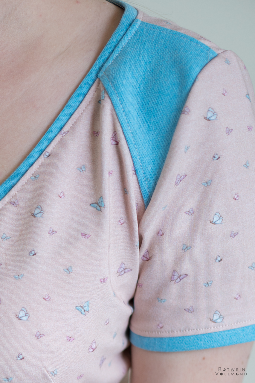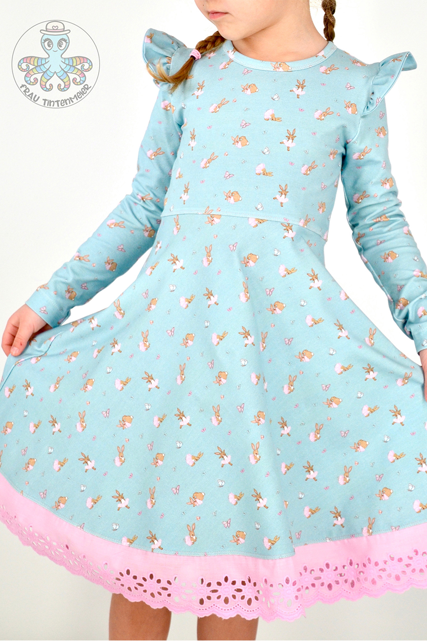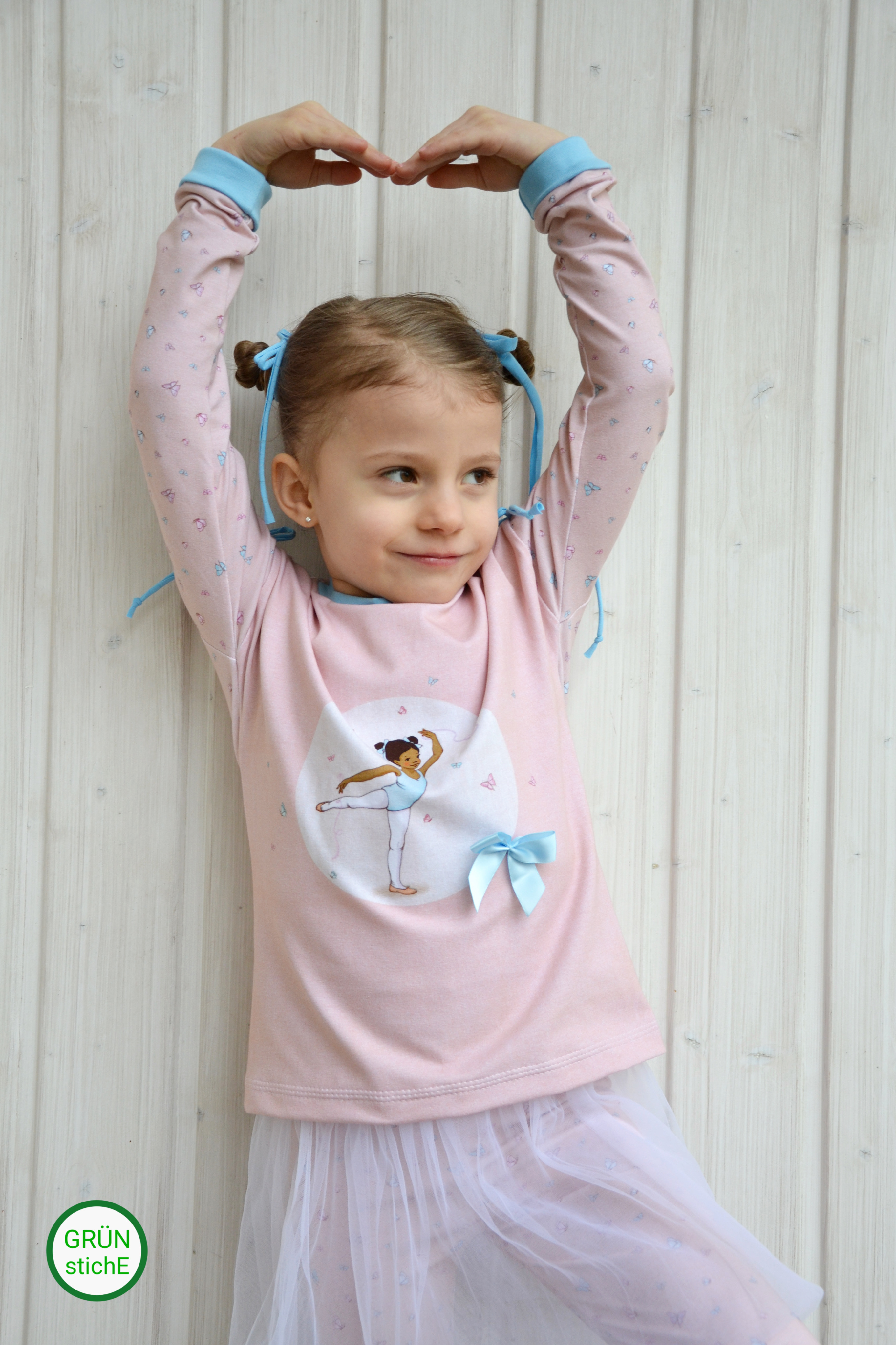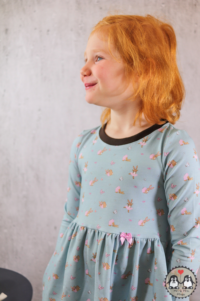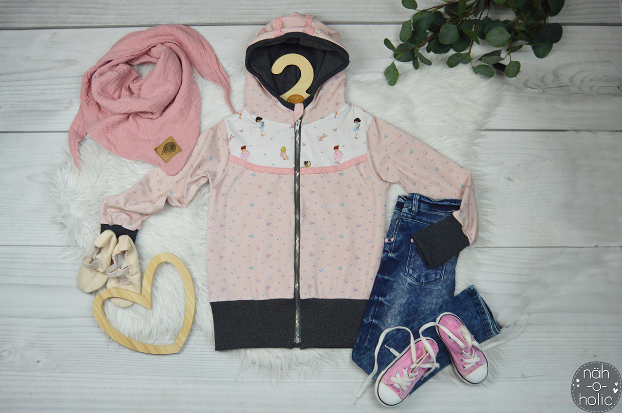 Sollen wir Euch in Geheimnis verraten? Der Hauptstoff ist unser persönlicher Favorit in dieser Kollektion. Wie geht es Euch damit? Die Ballerinas sind über den ganzen Stoff verteilt, ebenso wie die Schmetterlinge. Das lockert den Stoff ungemein auf, aber lässt ihn auch gleichzeitig zart und zurückhaltend erscheinen.