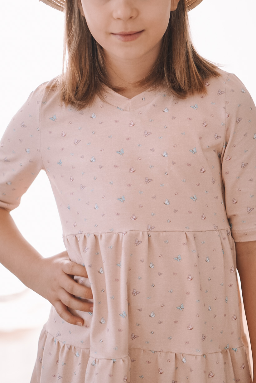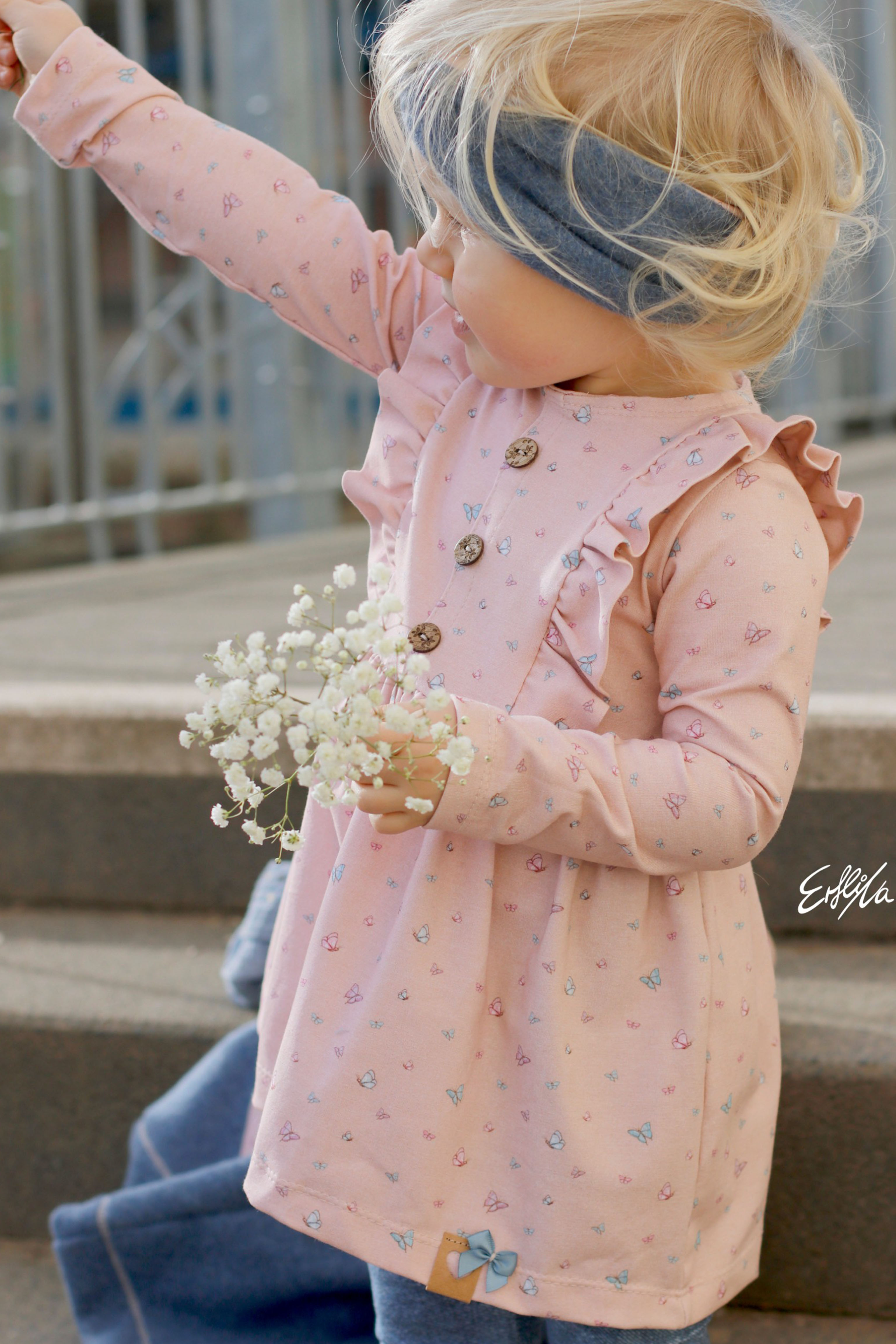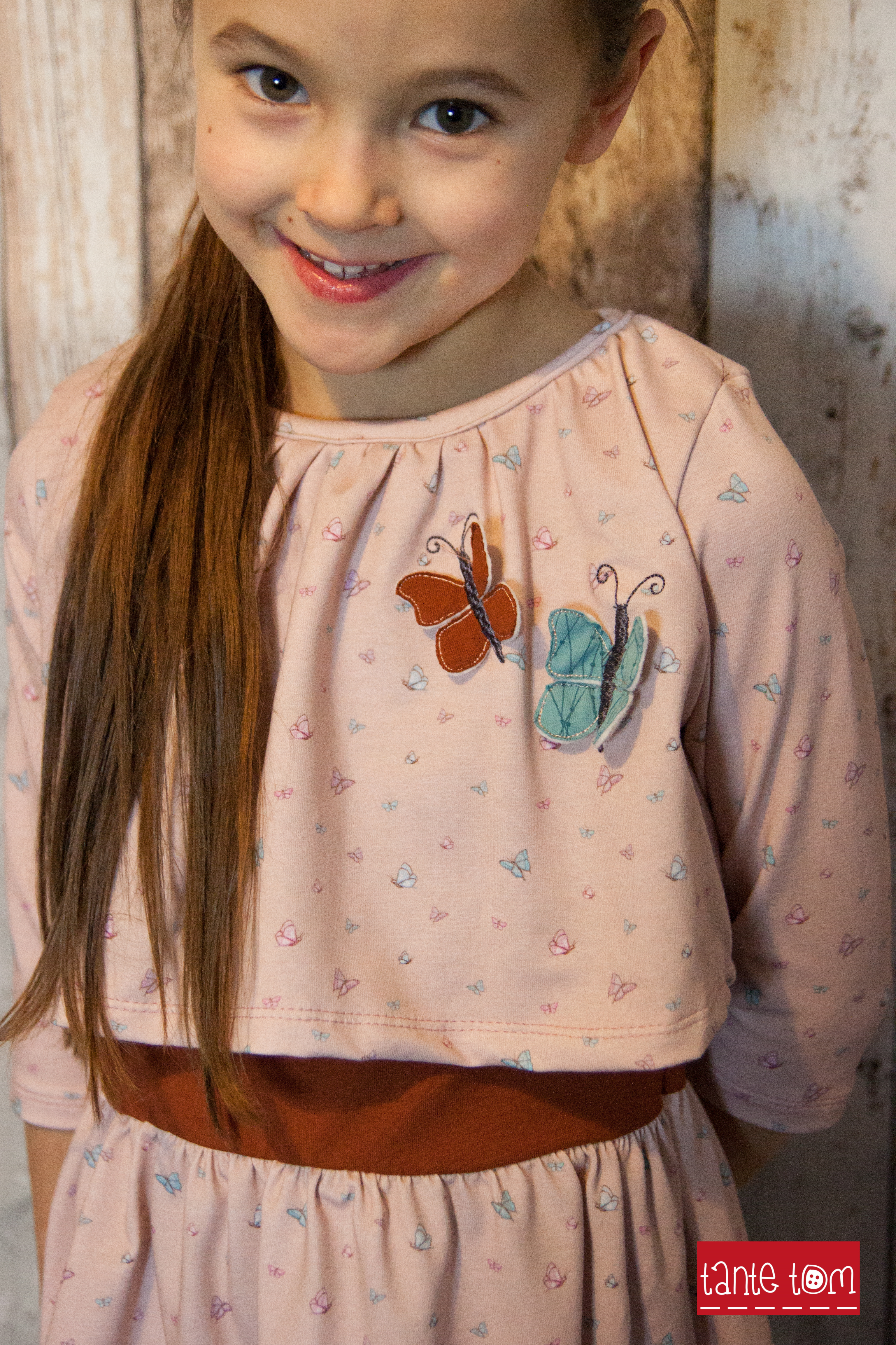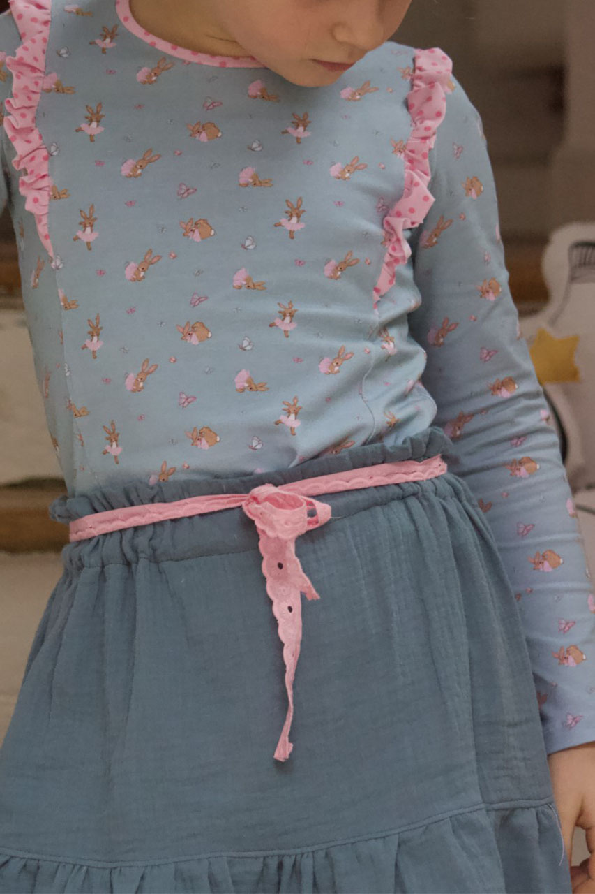 Sollen wir Euch in Geheimnis verraten? Der Hauptstoff ist unser persönlicher Favorit in dieser Kollektion. Wie geht es Euch damit? Die Ballerinas sind über den ganzen Stoff verteilt, ebenso wie die Schmetterlinge. Das lockert den Stoff ungemein auf, aber lässt ihn auch gleichzeitig zart und zurückhaltend erscheinen.