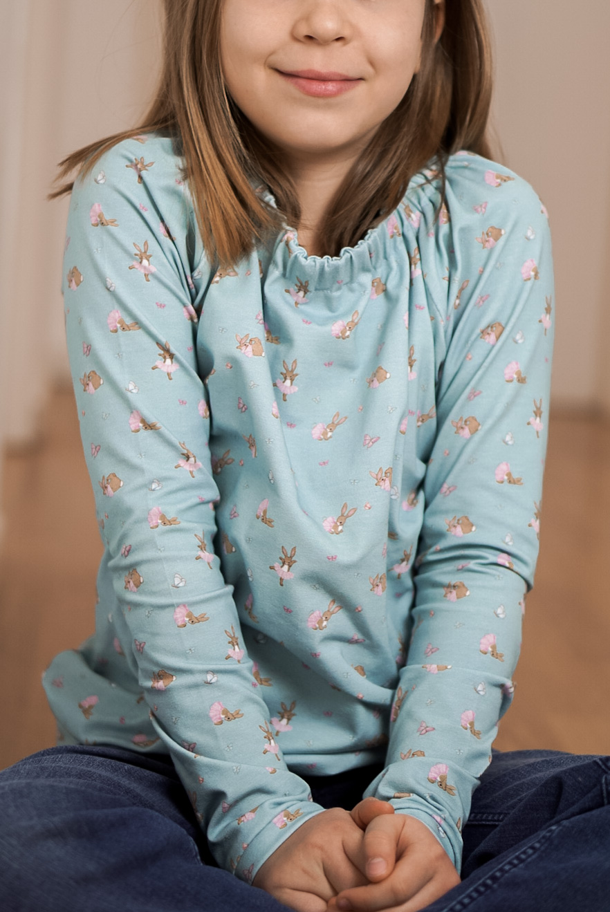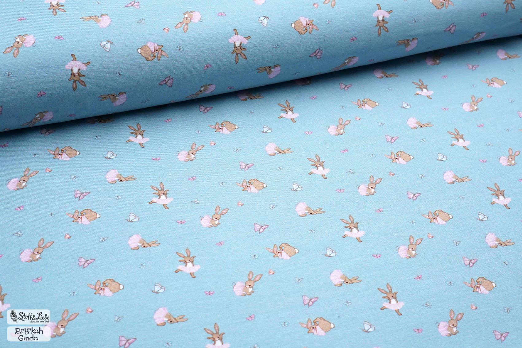 Die Ballerina Häschen im Allover-Design kommen direkt in zwei Farben: Creme und Pastellblau.