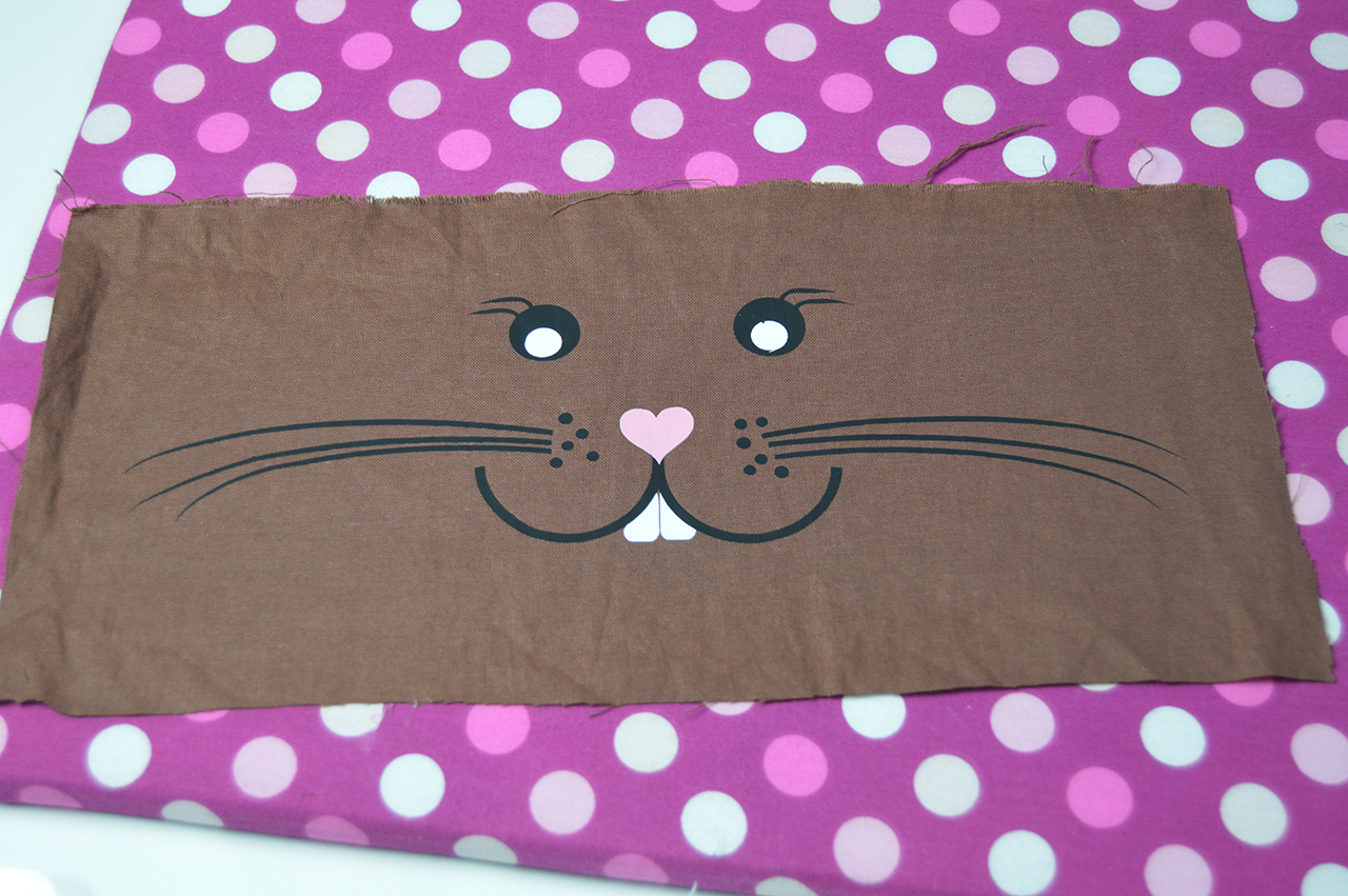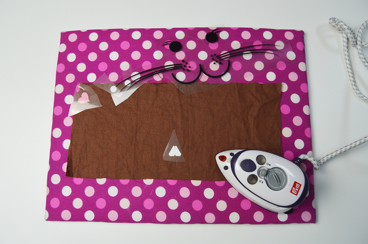 Als nächstes bringst Du den Plott mittig auf das vordere Unterteil auf. Alternativ kannst Du, wenn Du keinen Plotter hast, das Gesicht auch applizieren oder mit Stoffmalfarbe aufmalen. Dafür haben wir Dir eine PDF im Downloadordner der Plottdatei hinterlegt.