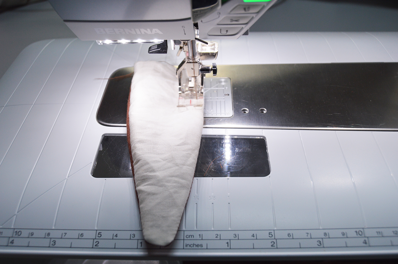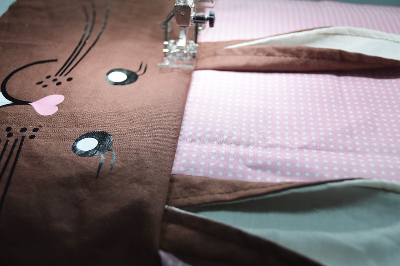 Achte darauf, dass Du die Ohren nicht versehentlich mit in die Seitennaht bekommst.