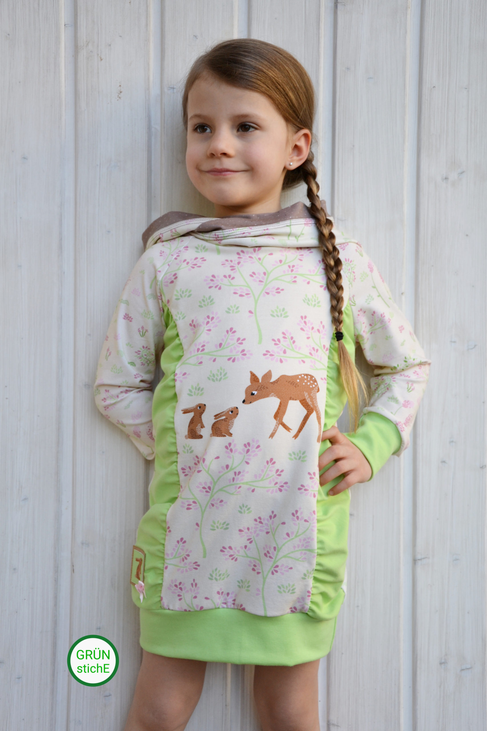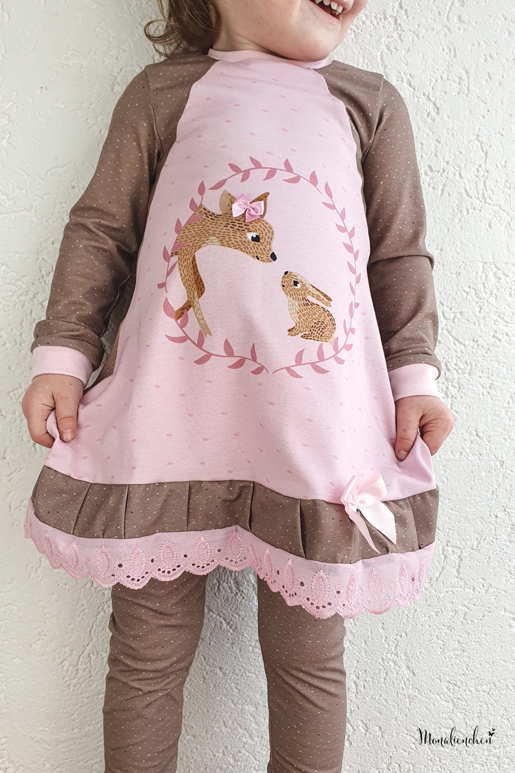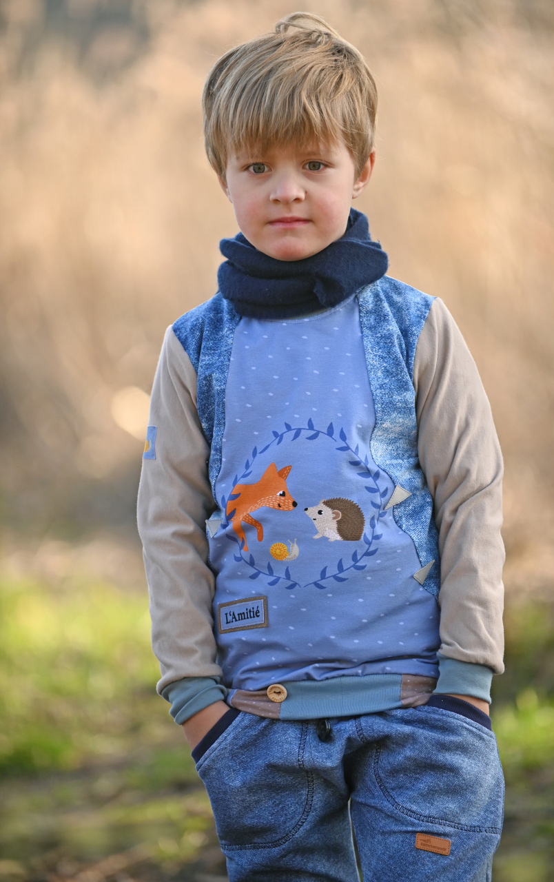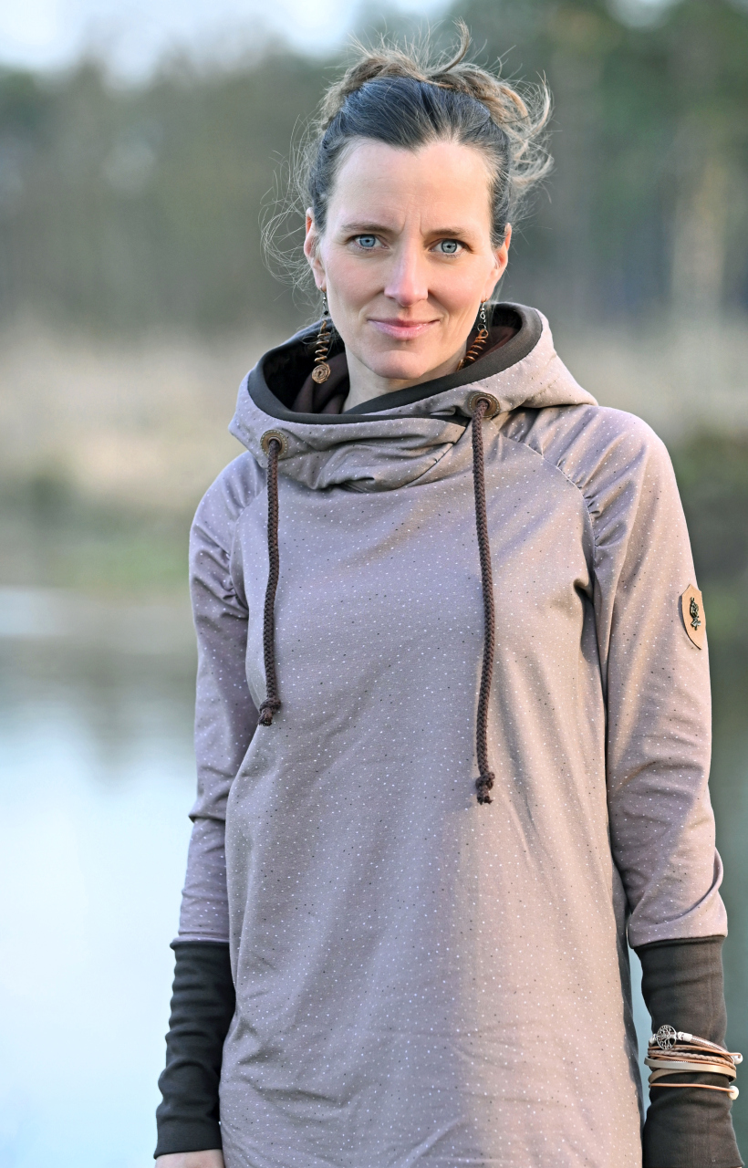 Wie ihr weiter unten, bei den Designbeispielen, sehen könnt, sind der Hauptstoff „La Foret“ und die Kombistoffe auch solo vernäht absolut schön. Nicht nur Kinder kommen mit den neuen Stoffen auf ihre Kosten, unsere Designnäherinnen haben auch traumhafte Damenbeispiele für Euch genäht.