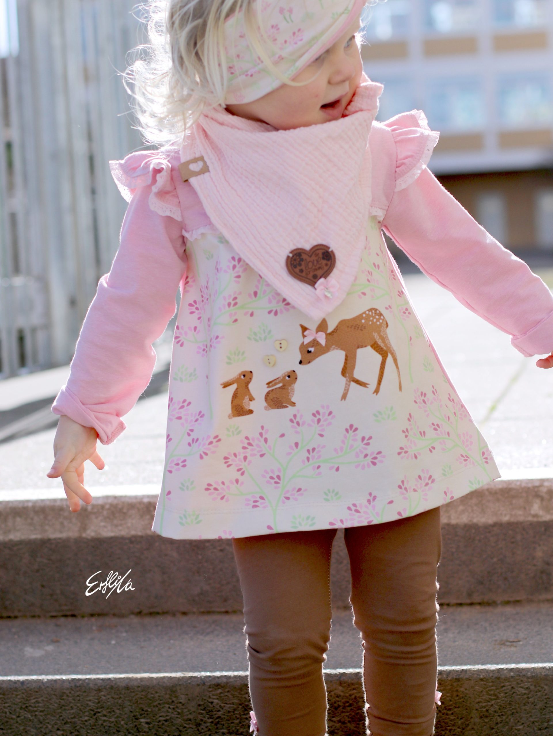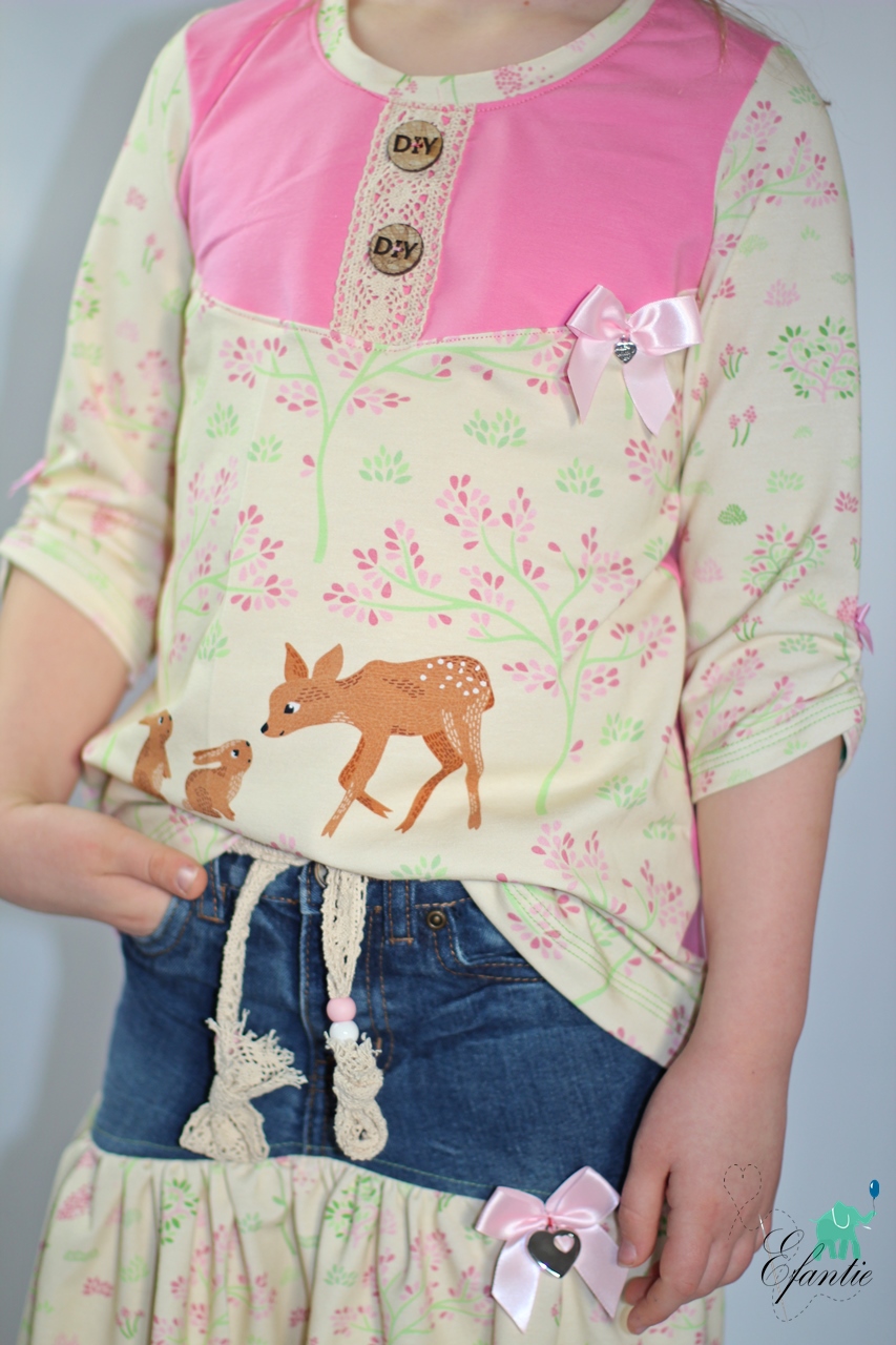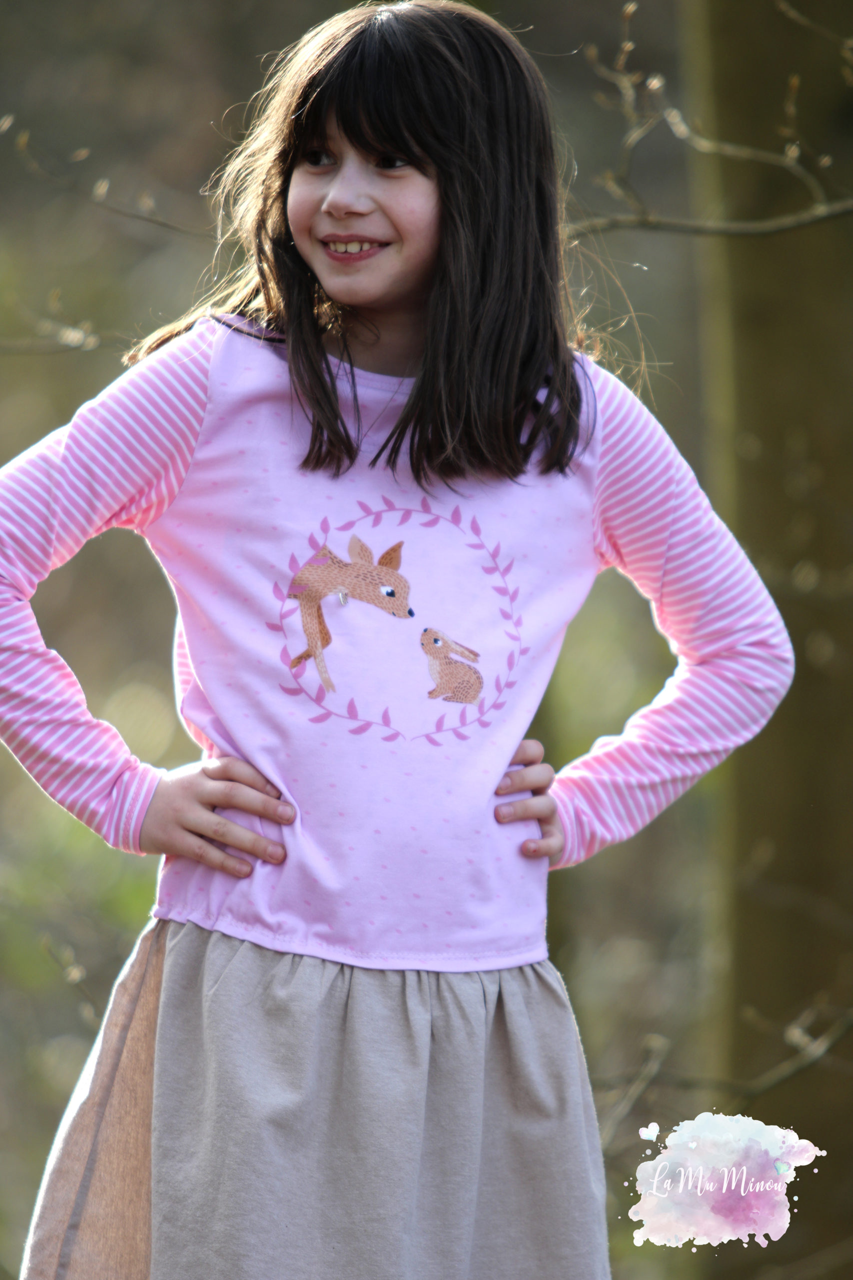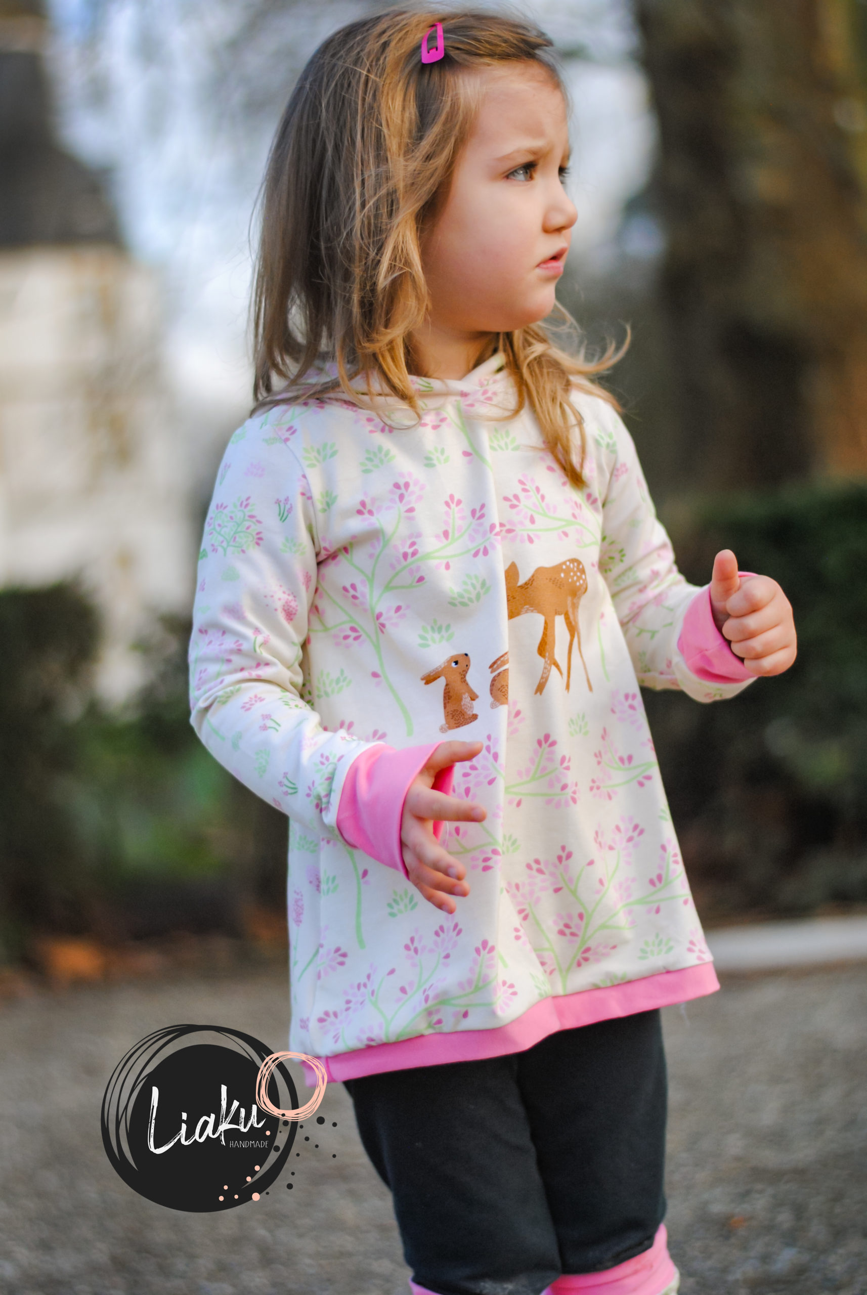 Wie ihr weiter unten, bei den Designbeispielen, sehen könnt, sind der Hauptstoff „La Foret“ und die Kombistoffe auch solo vernäht absolut schön. Nicht nur Kinder kommen mit den neuen Stoffen auf ihre Kosten, unsere Designnäherinnen haben auch traumhafte Damenbeispiele für Euch genäht.