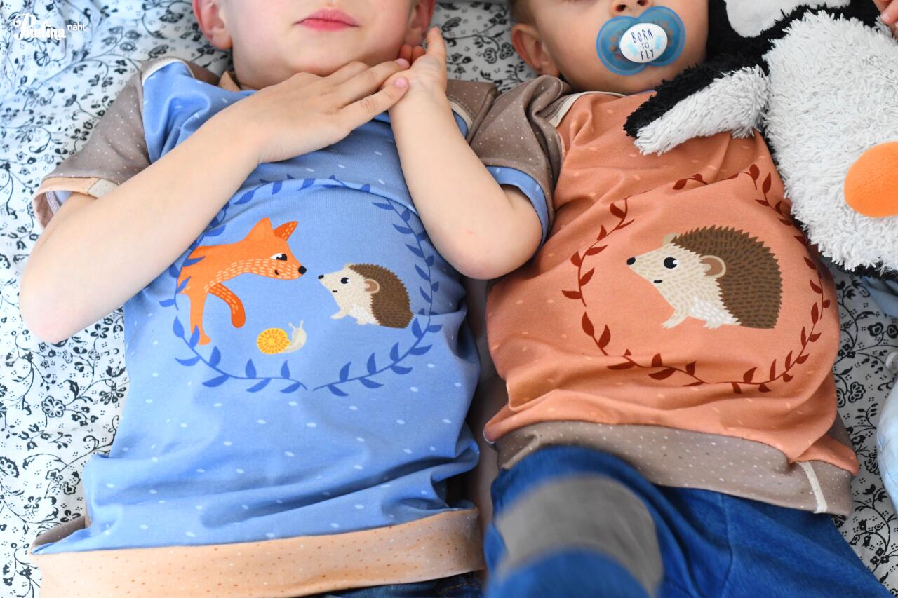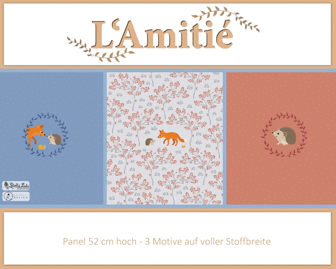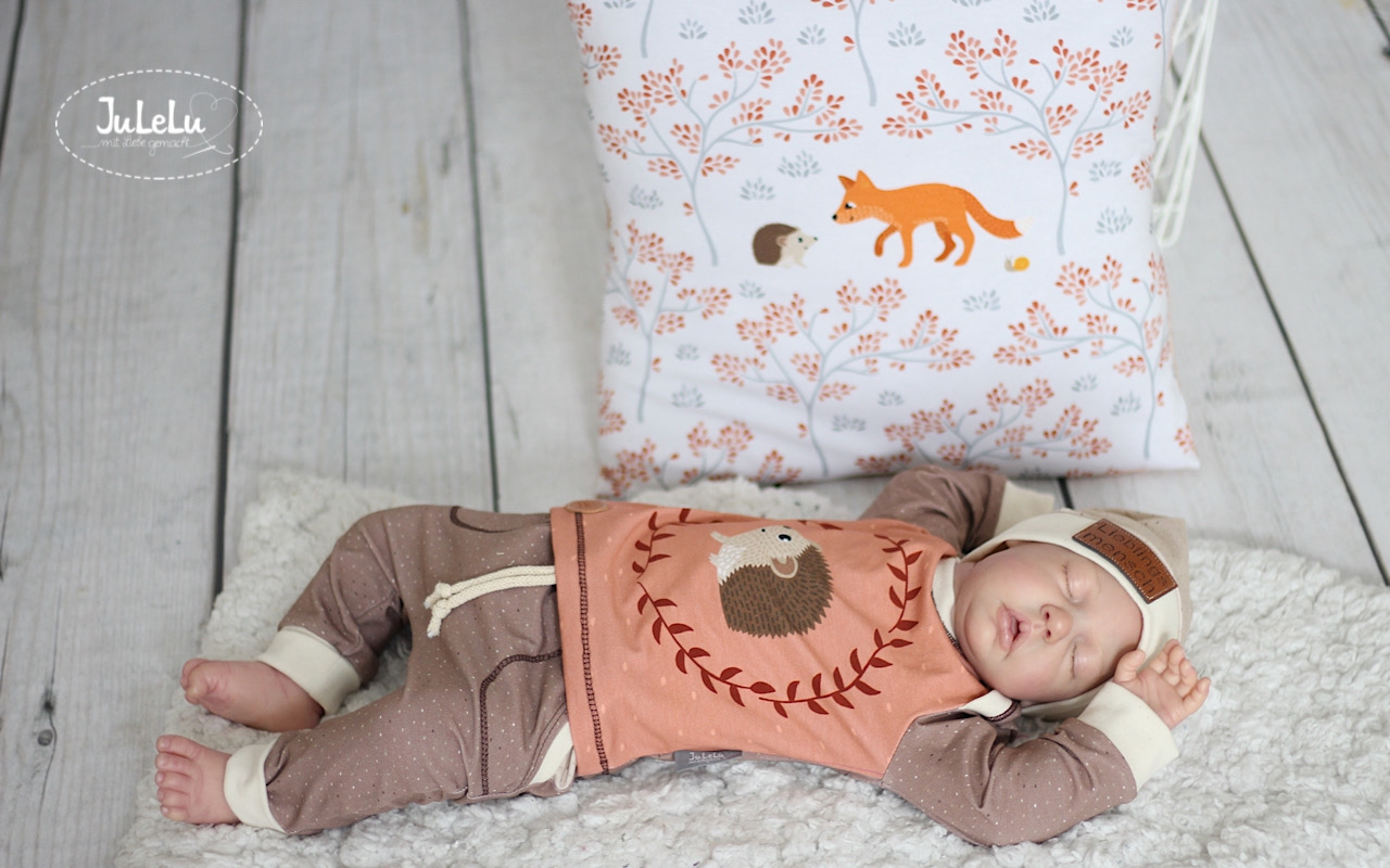 Mit dabei sind diesmal die Panele „Hase &Reh“, sowie „Fuchs & Igel“. Die Panele haben eine Höhe von ca. 50 cm auf voller Stoffbreite und mit jeweils drei Motivabschnitten. Wie ihr seht, haben wir uns für eine Mischung aus sanften Farben, gemischt mit Erdtönen entschieden, so dass jede Menge Freiraum zum Kombinieren bleibt.