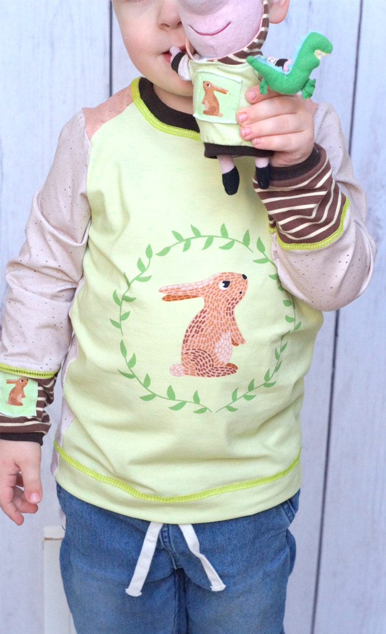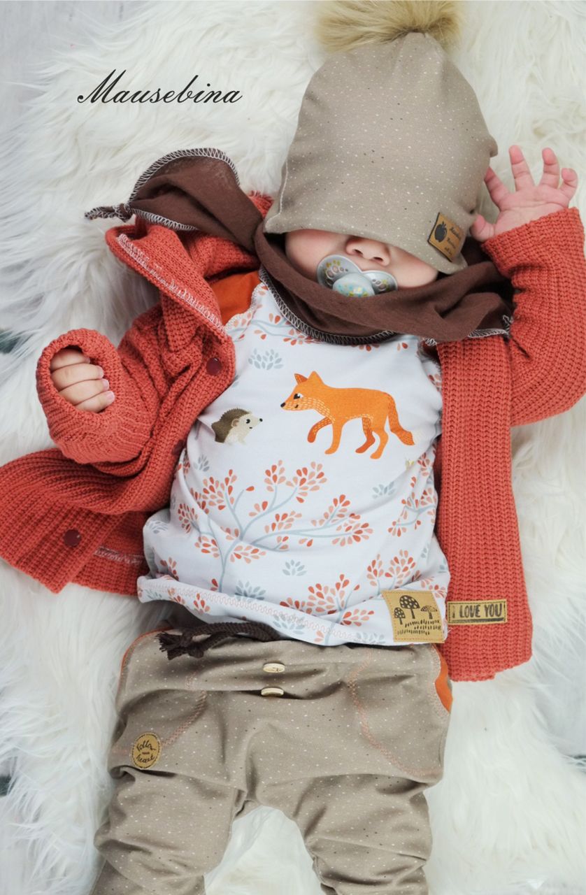 Bambi Caramel passt wie La Foret farblich prima zum Panel „Hase&Reh“. Passende Bündchen und Jerseys unserer Pamuk Kollektion sind hier: 329, 610a und 101.