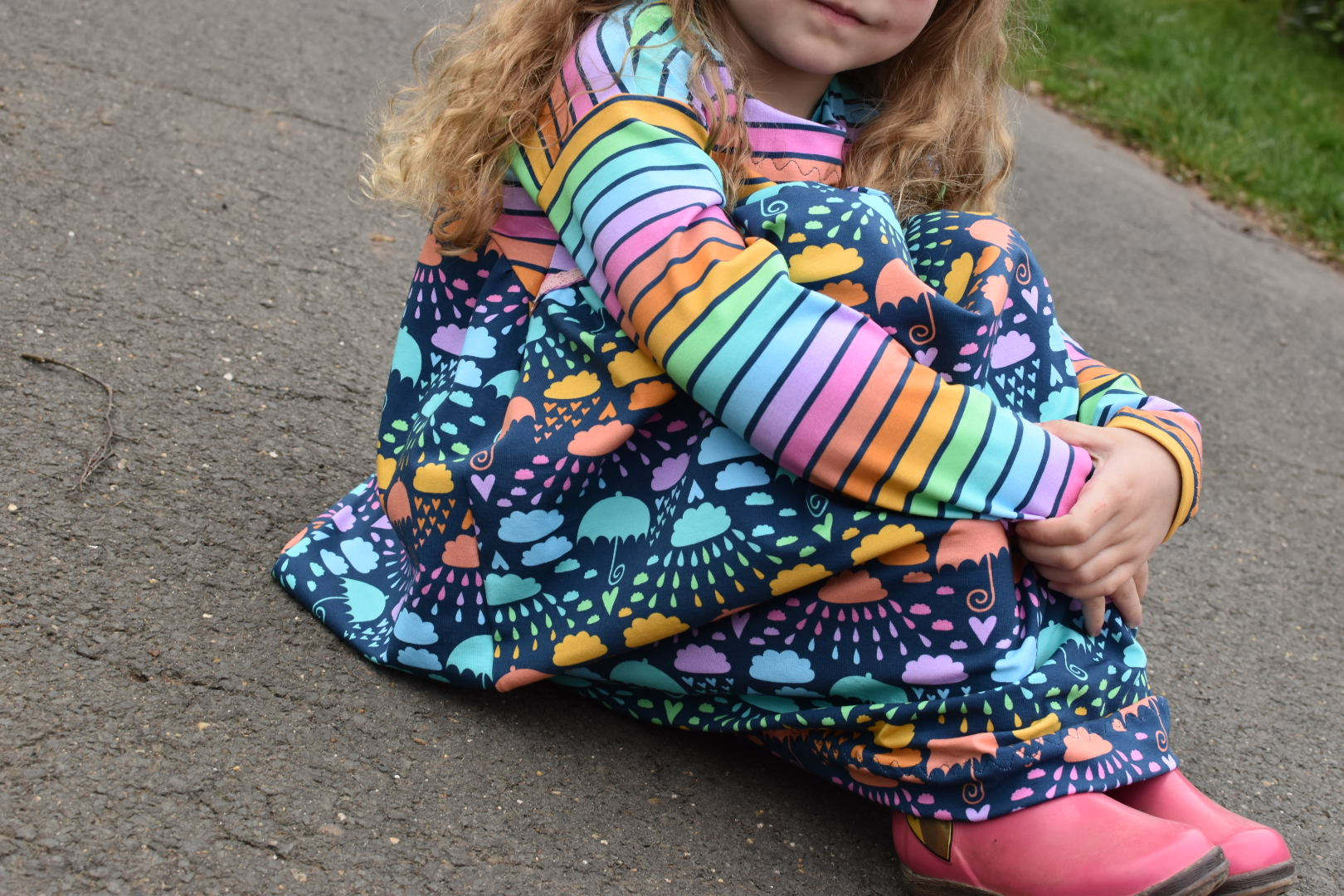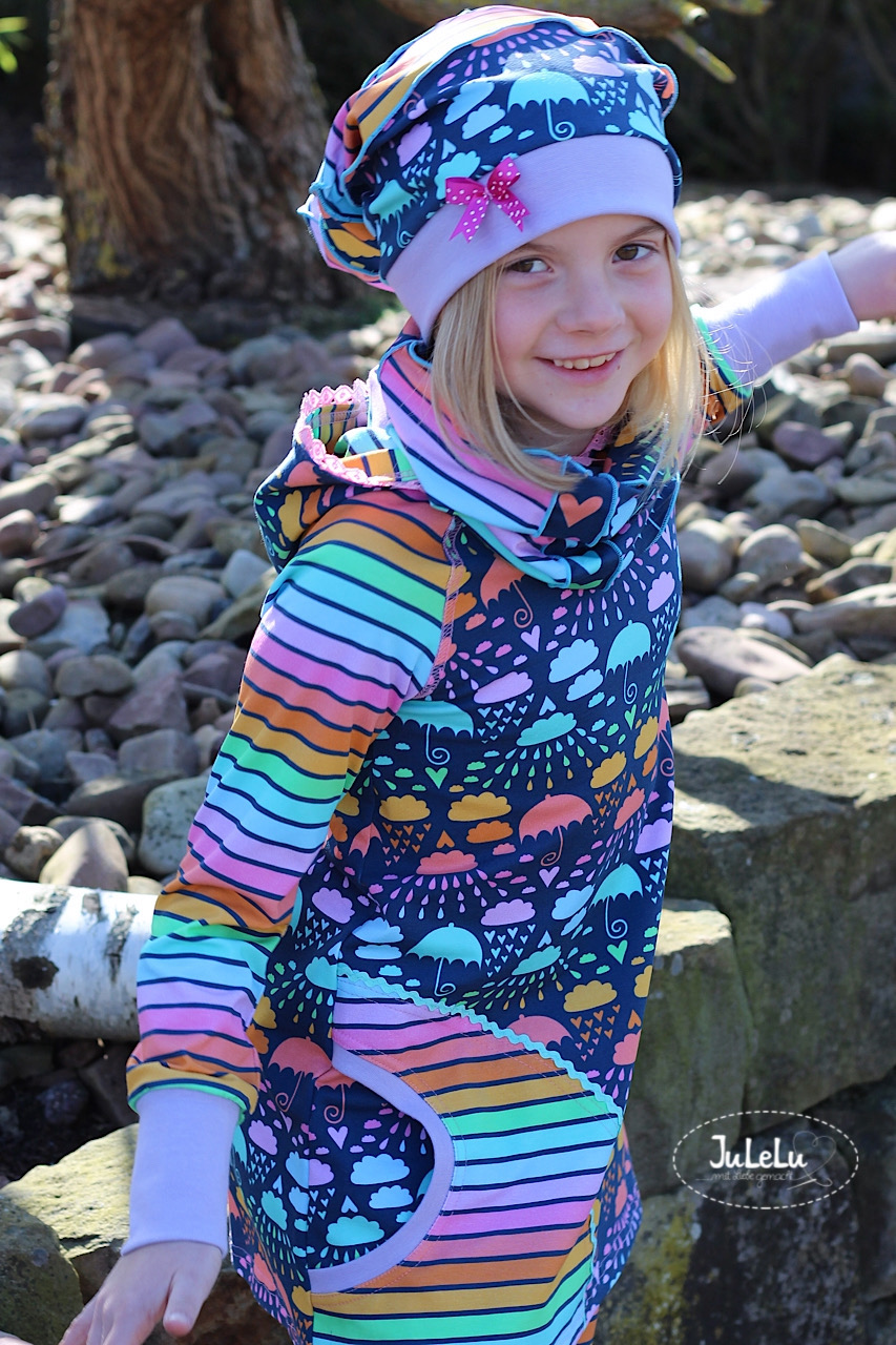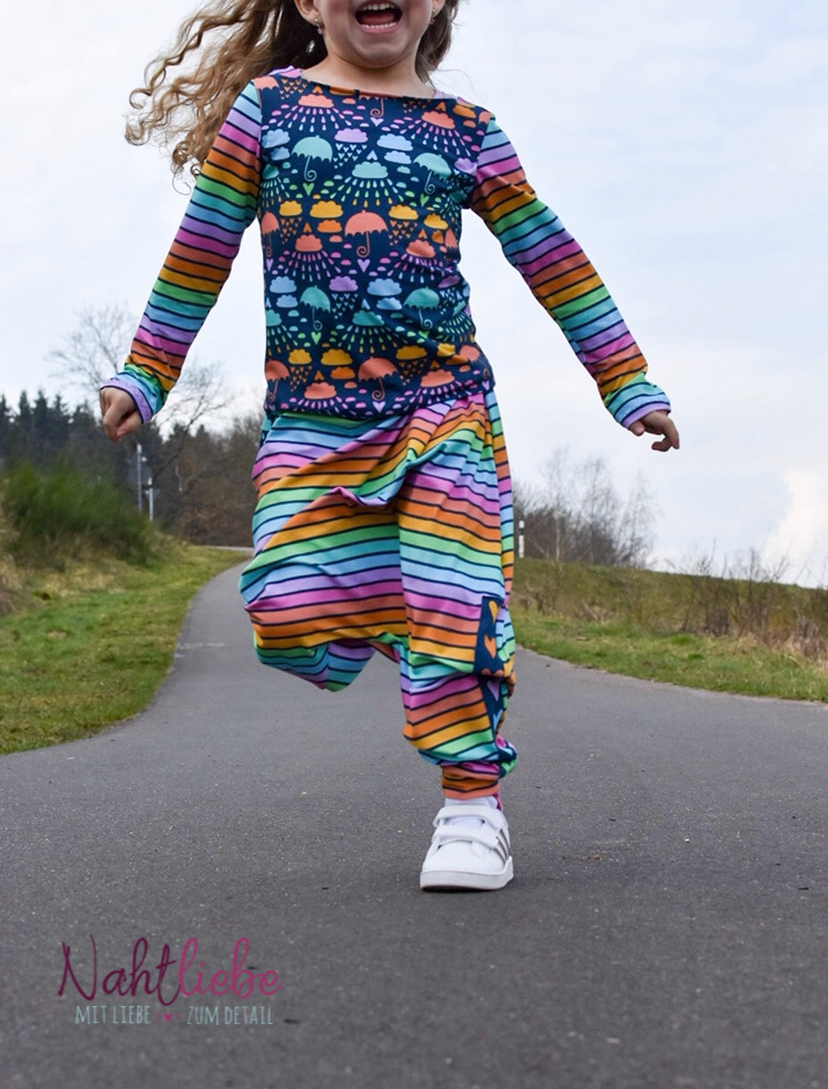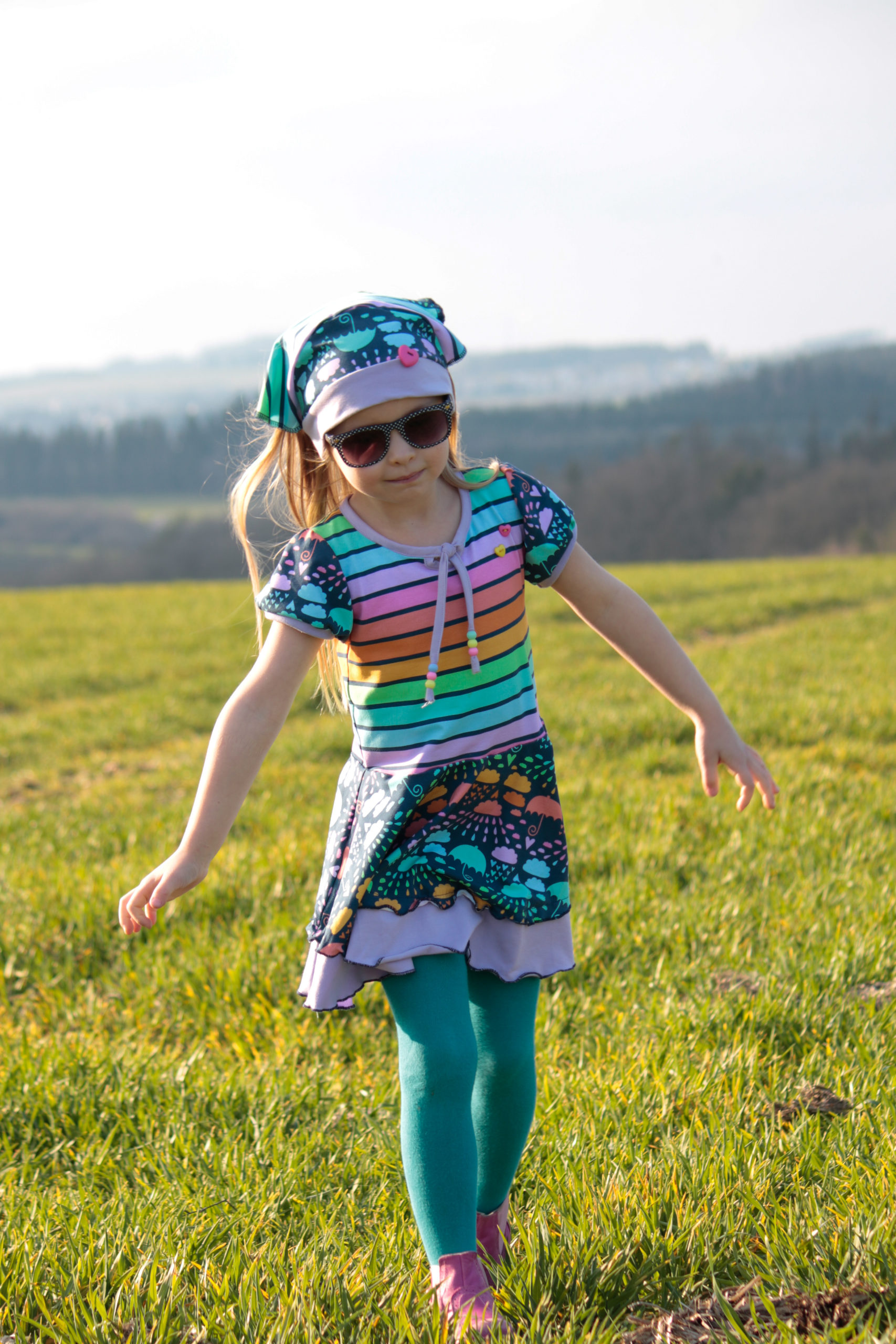 Die Kollektion besteht aus drei farbenprächtigen Stoffen in gewohnter Bio Qualität. Es erwartet Euch ein detailreicher Hauptstoff mit einer Materialzusammensetzung von 95%Baumwolle und 5% Elasthan, sowie die Rainbow Stripes in Small und Large.