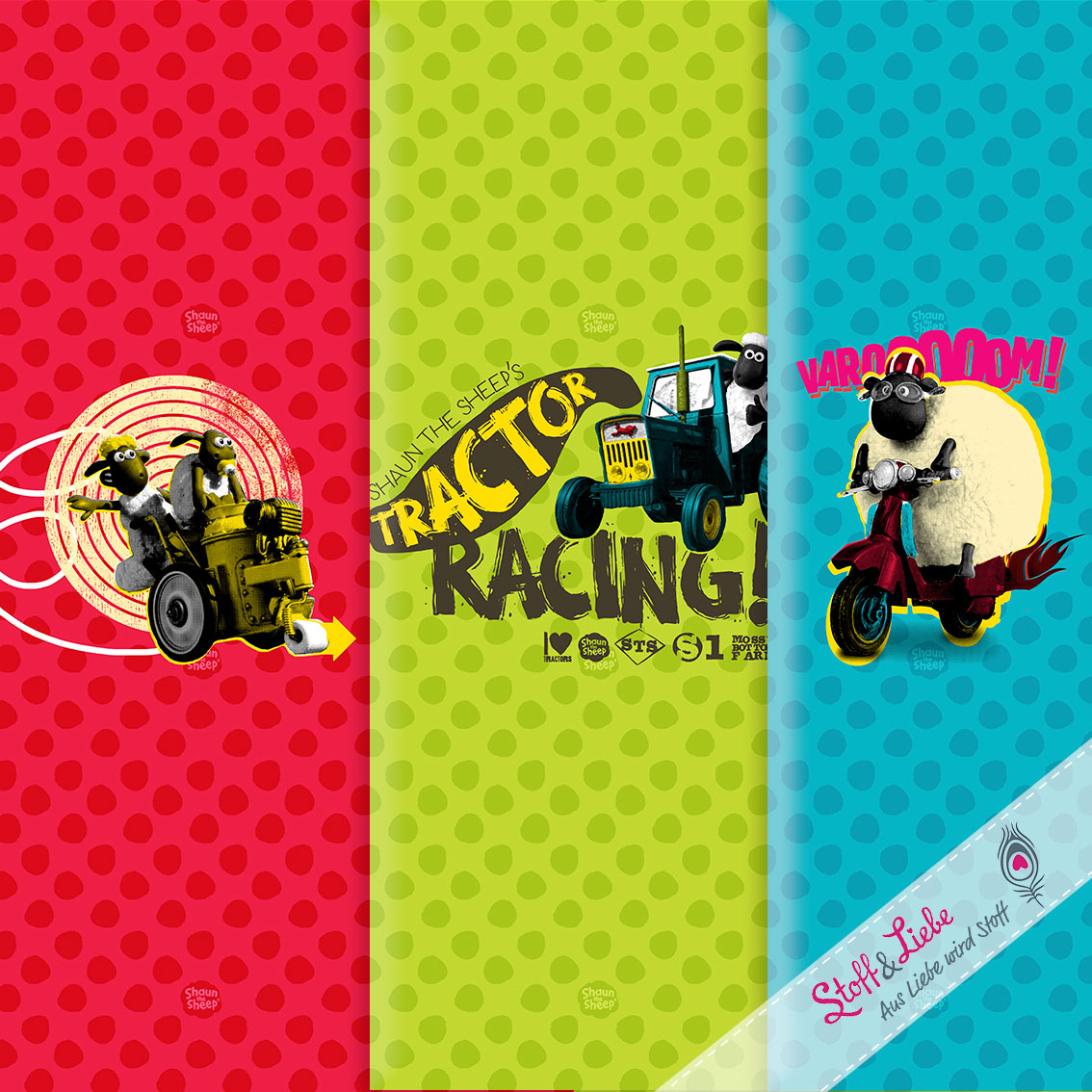 Auch das Racing Design gibt es als Panel mit drei coolen Motiven in leuchtenden Farben und einem passenden Hauptstoff dazu. Auch hier ist das Panel ca. 65 cm hoch.