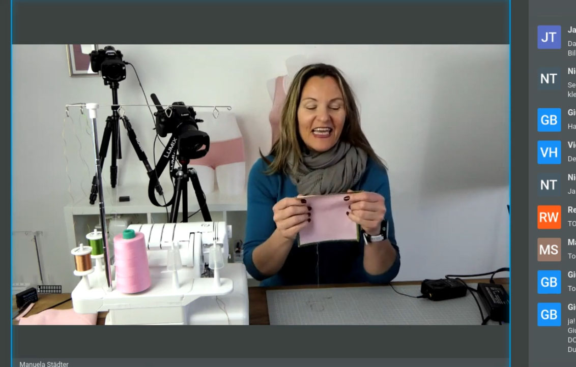 Ich bin im Moment froh wenn ich fehlerfreie Covernähte habe und daran möchte ich noch gerne Arbeiten…..einfach die Maschine richtig kennen lernen. Das Webinar von Manu verfolgen ist sehr hilfreich und die Videos bestimmt auch.ich hätte da gerne mal mehr Zeit mich richtig dranzusetzen.