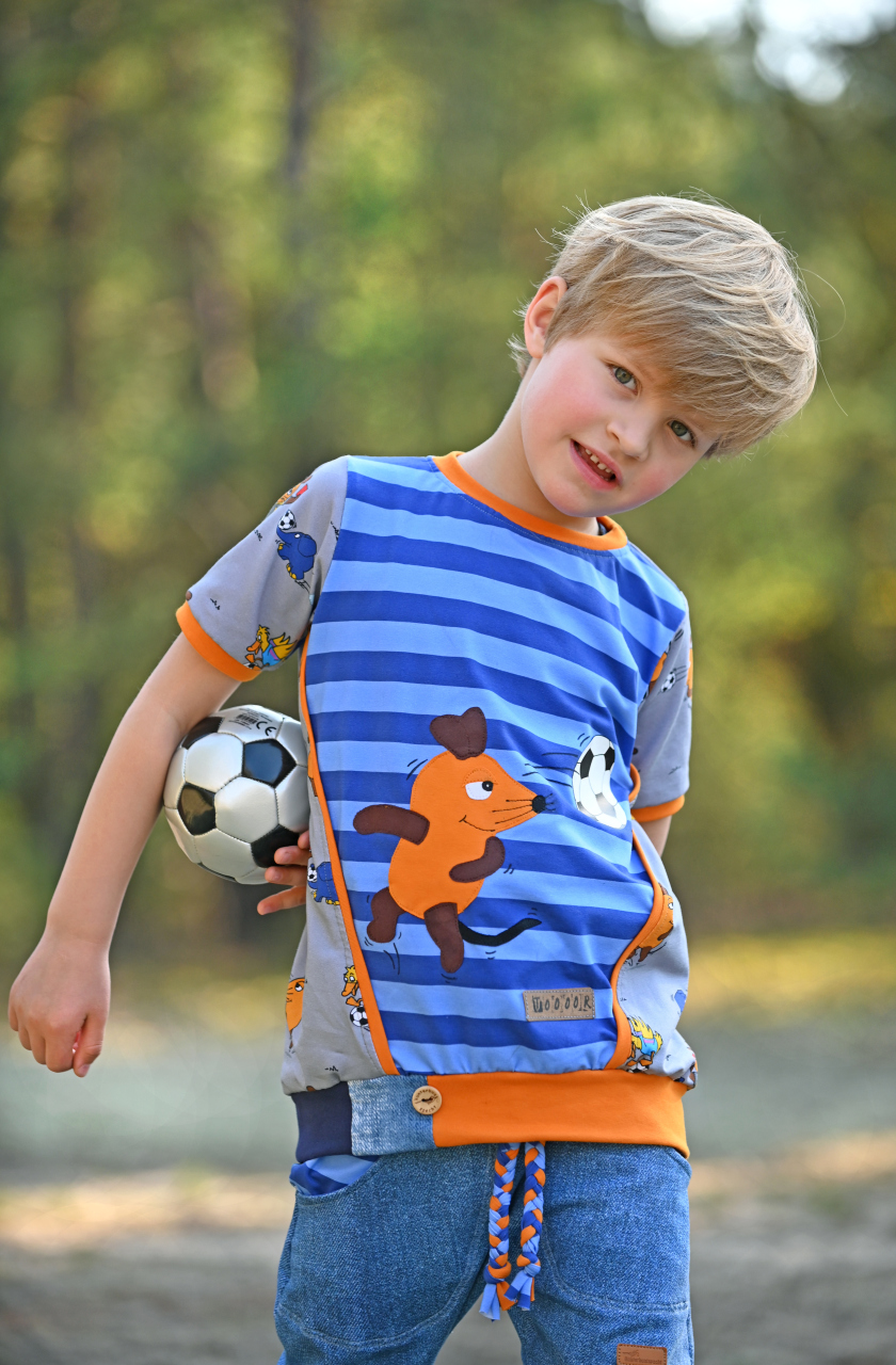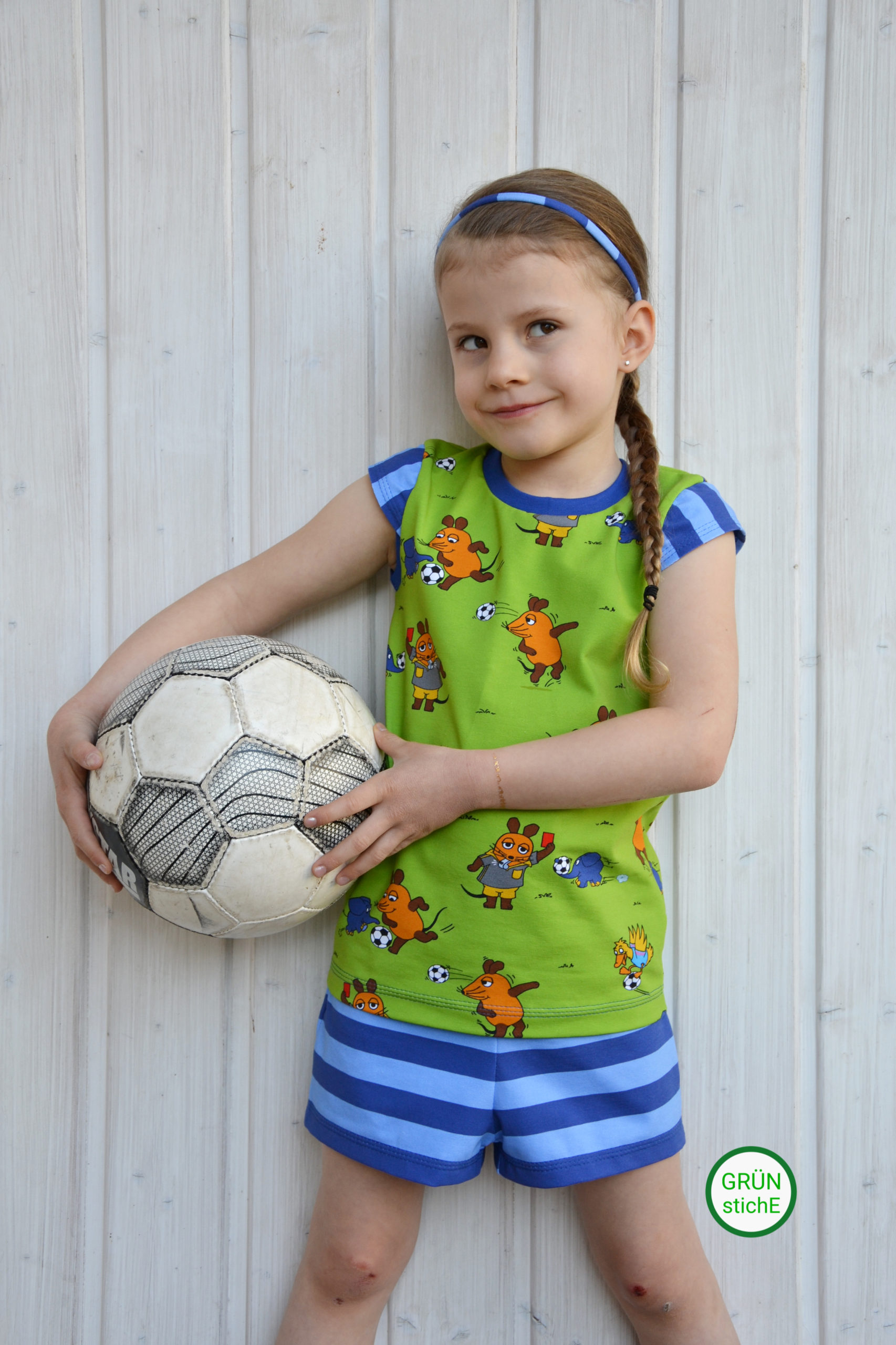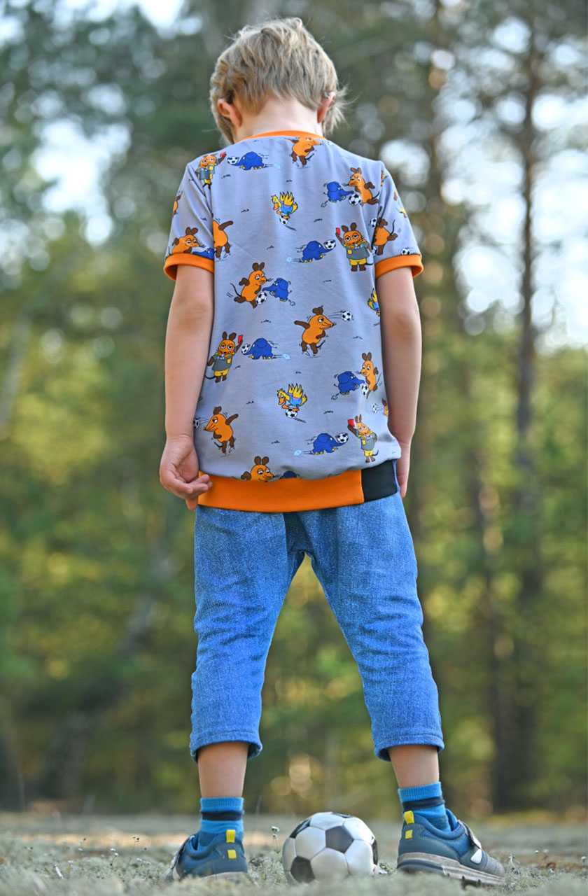 Drei Hauptstoffe im Allover Design warten auf Euch. Die Maus und der Elefant beim Federballspielen in satten Farben, sowie die Maus, die Ente und der Elefant als Fußballstars. Hier bieten wir Euch die Stoffe auf grauem und grünem Hintergrund an. Perfekt für sommerliche Outfits wie Shirts, Hosen, aber auch Kleider oder Jacken sind ganz zauberhaft aus diesen Stoffen.