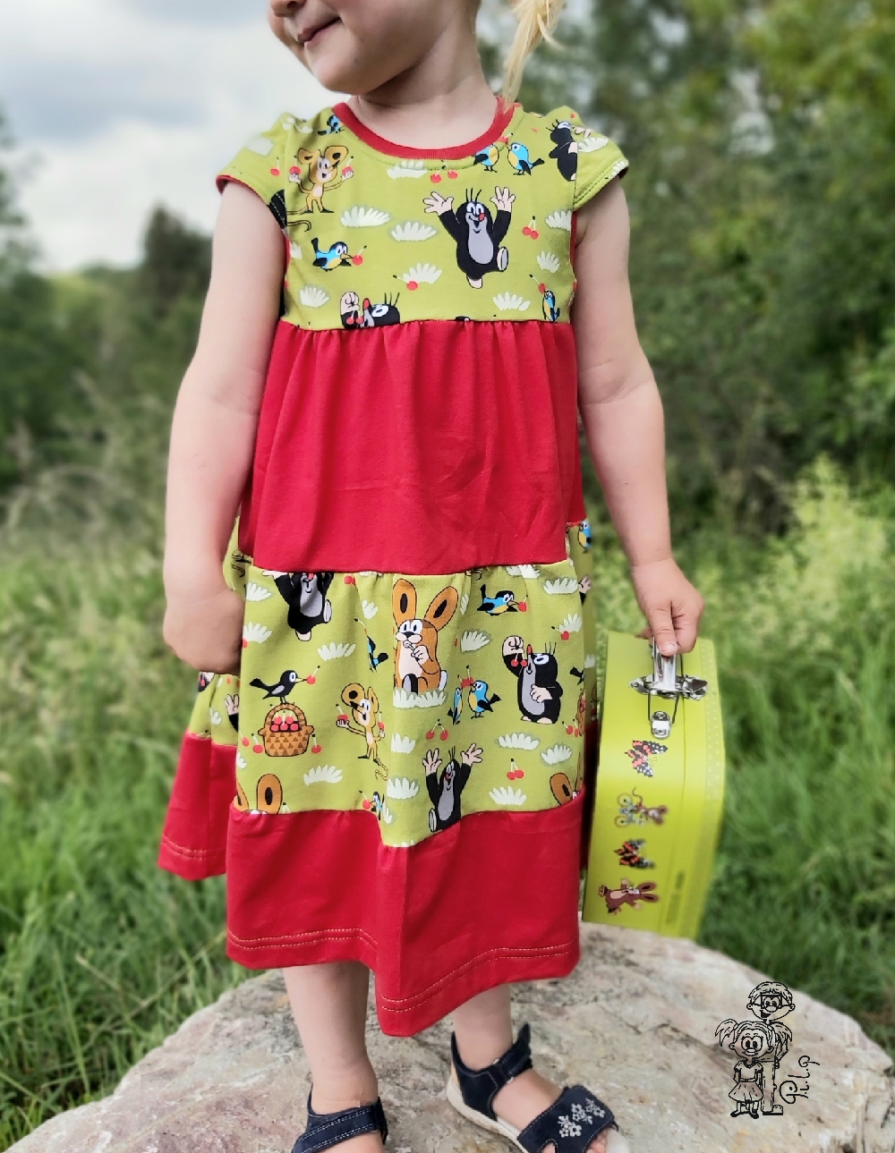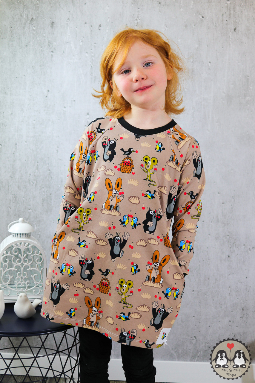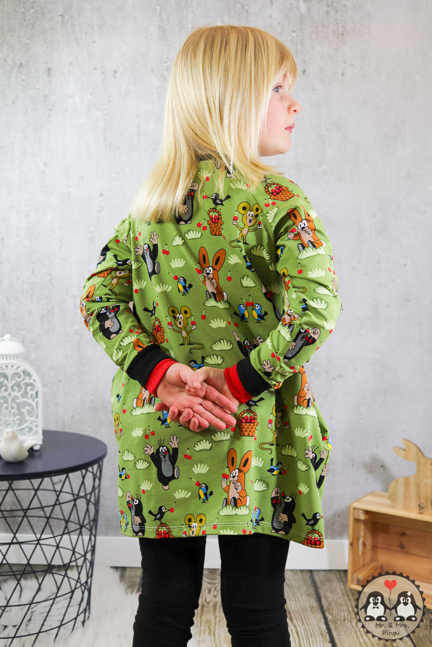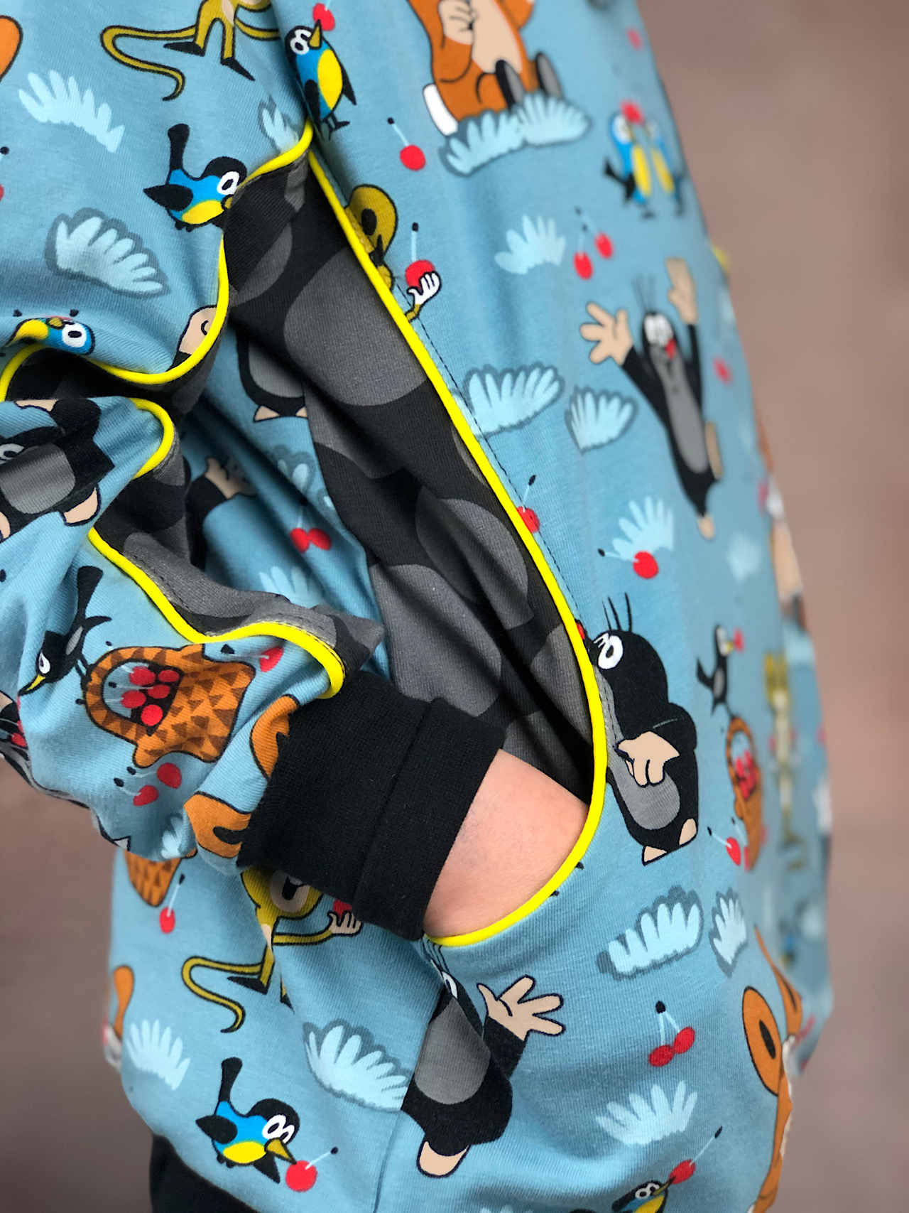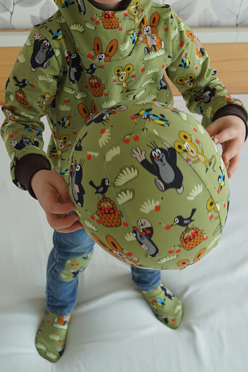 Der kleine Maulwurf Kirschenfest erscheint auf Jersey mit einer Materialzusammensetzung von 95% Baumwolle und 5 % Elasthan.