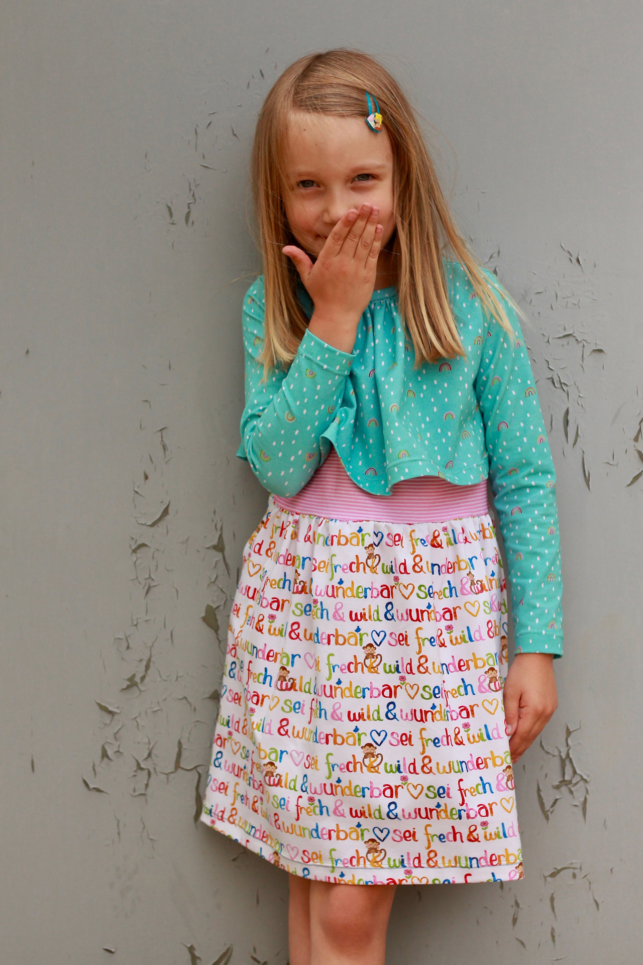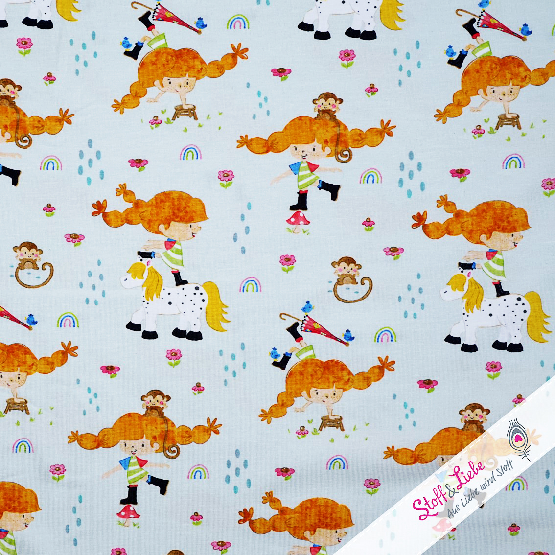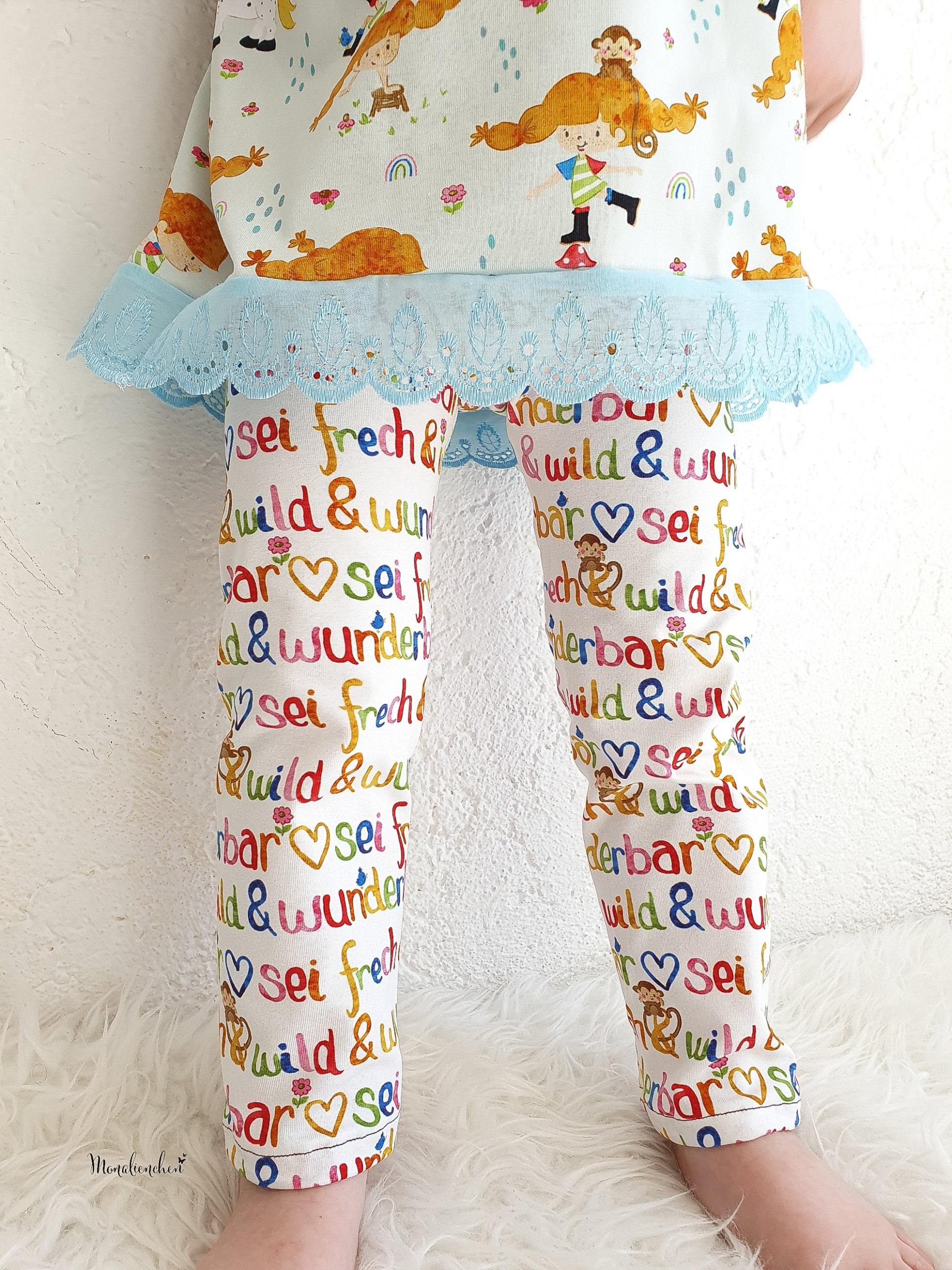 Die Kollektion umfass drei Stoffe: der Hauptstoff „Die starke Lotta“, sowie die Kombistoffe „Sei frech & wild & wunderbar“ und „Lottas Kombi: Regenbogen.