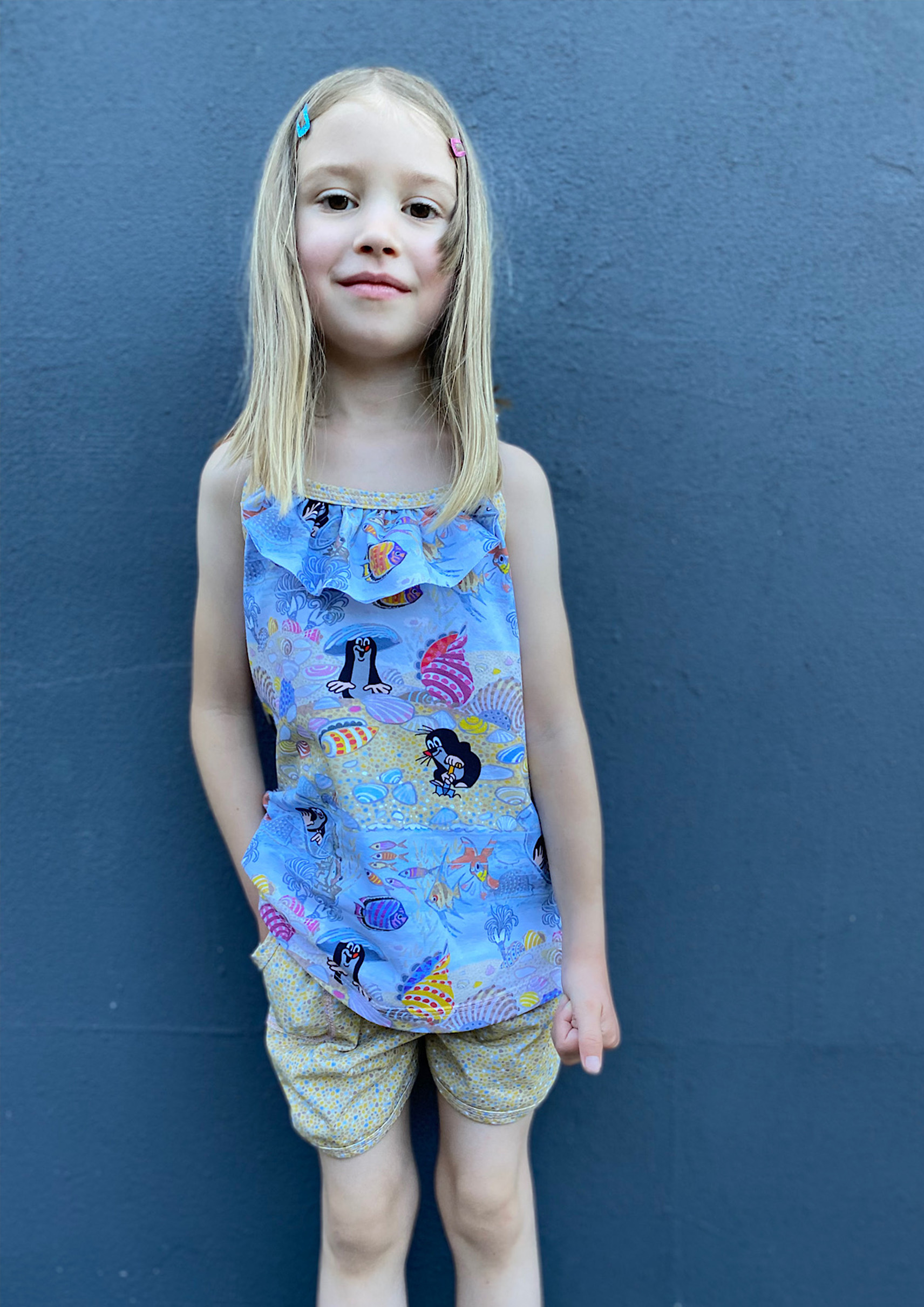 Die Stoffe der Kollektion sind perfekt aufeinander abgestimmt und ergeben traumhafte Sommeroutfits. Wir sehen Kleider, Shorts, Shirts, Trägertops und luftige Röcke vor uns. Aber lasst Euch gesagt sein: Auch solo vernäht sind diese Stoffe einfach traumhaft! Ein elegantes Kleid aus Aquarell oder ein sportliches Shirt aus den Kieseln? Alles ist möglich!