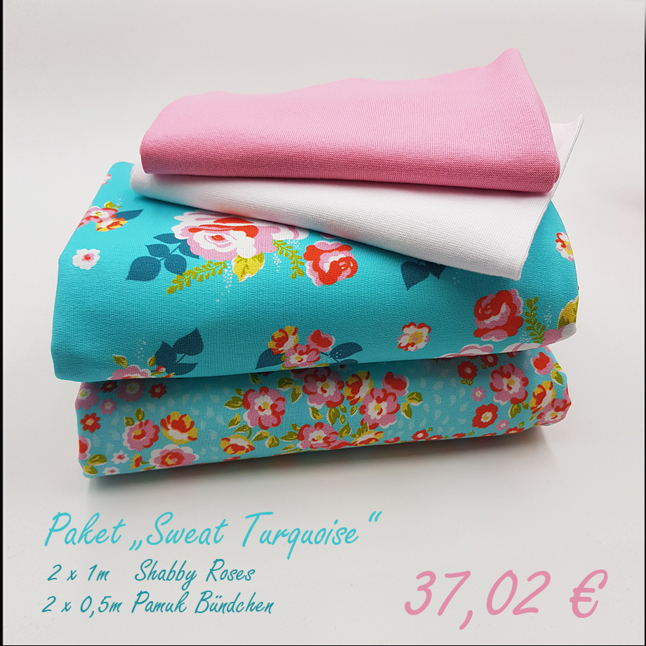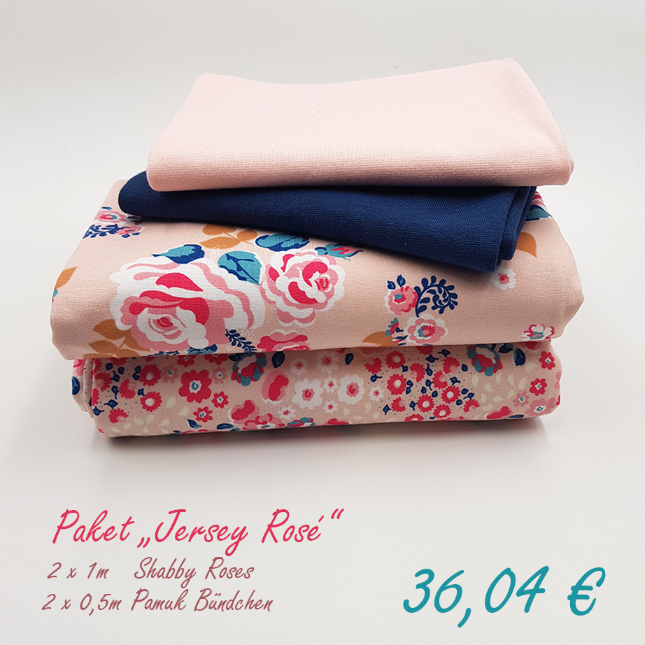 Als besonderes Angebot haben wir diese Woche für Euch Rundum-Sorglos-Pakete geschnürt! Die Pakete enthalten jeweils 2 x 1 m Shabby Chic Roses und 2 x 0,5 m Pamuk Bündchen in passenden Farben. Das ganze natürlich zum absoluten Vorzugspreis!