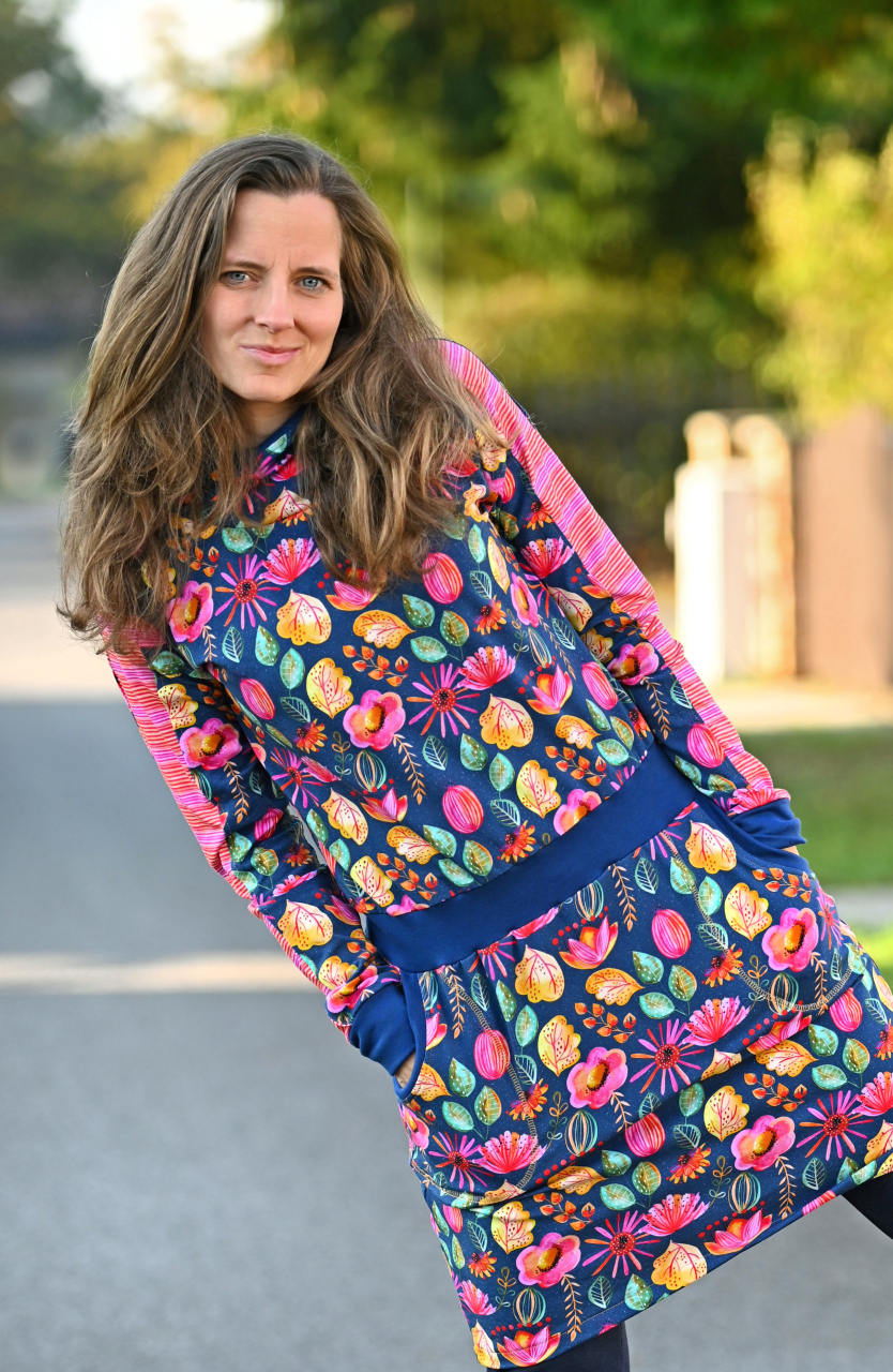 Wir sehen schon jede Menge Kleider, Hoodies, leichte Jacken und auch Shirts und Hosen in diesem farbenfrohen Design vor uns, die die Welt um uns herum bunter machen!