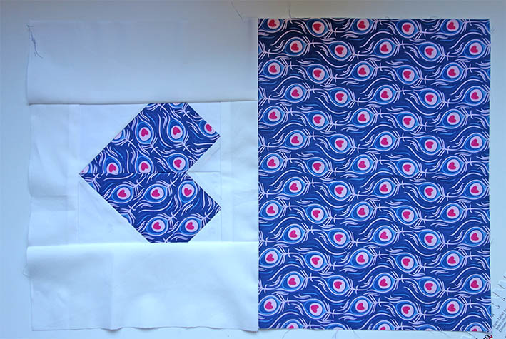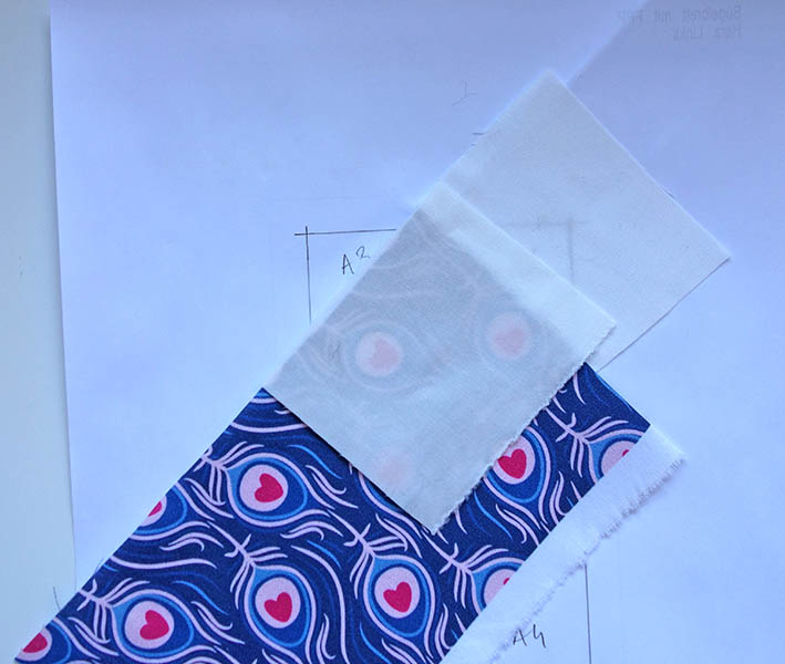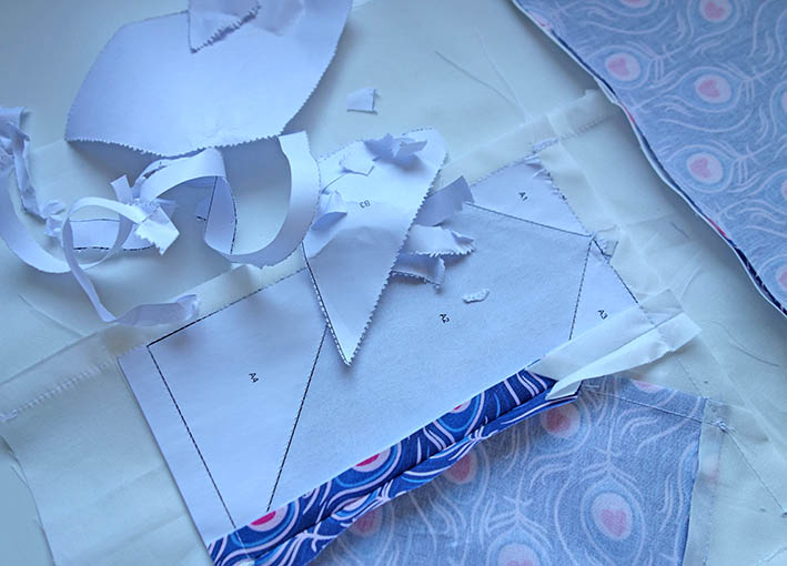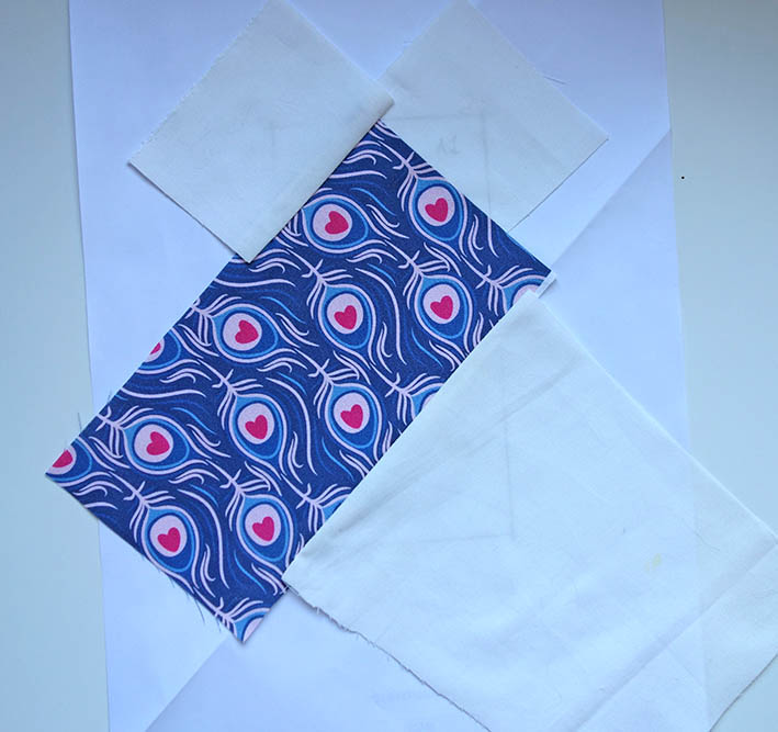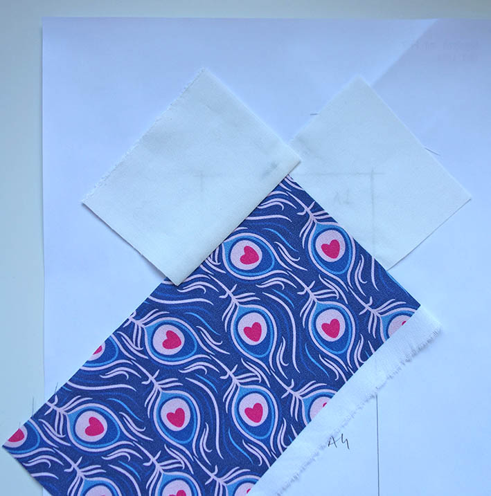 Bei dieser Technik nähen wir auf die bedruckte Papierseite, legen die Stoffzuschnitte jedoch auf die linke Papierseite. Das ist meines Erachtens das Schwierigste an der Sache.