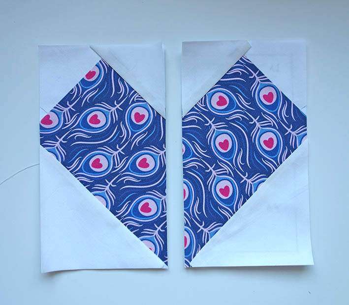 Nähe den 33 cm x 25 cm Pavo Zuschnitt an der oberen Kante an, und bügle die Nahtzugabe nach oben.