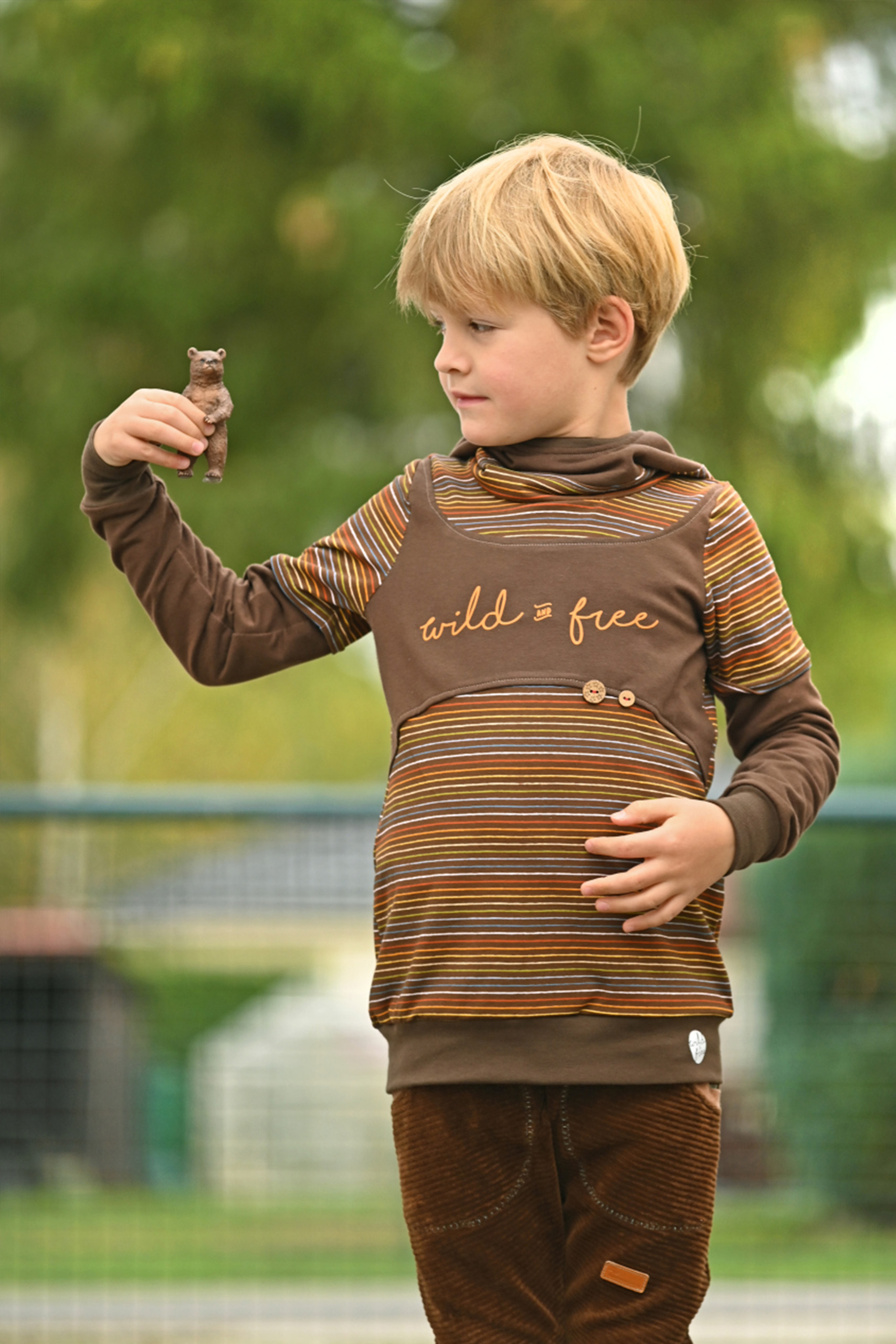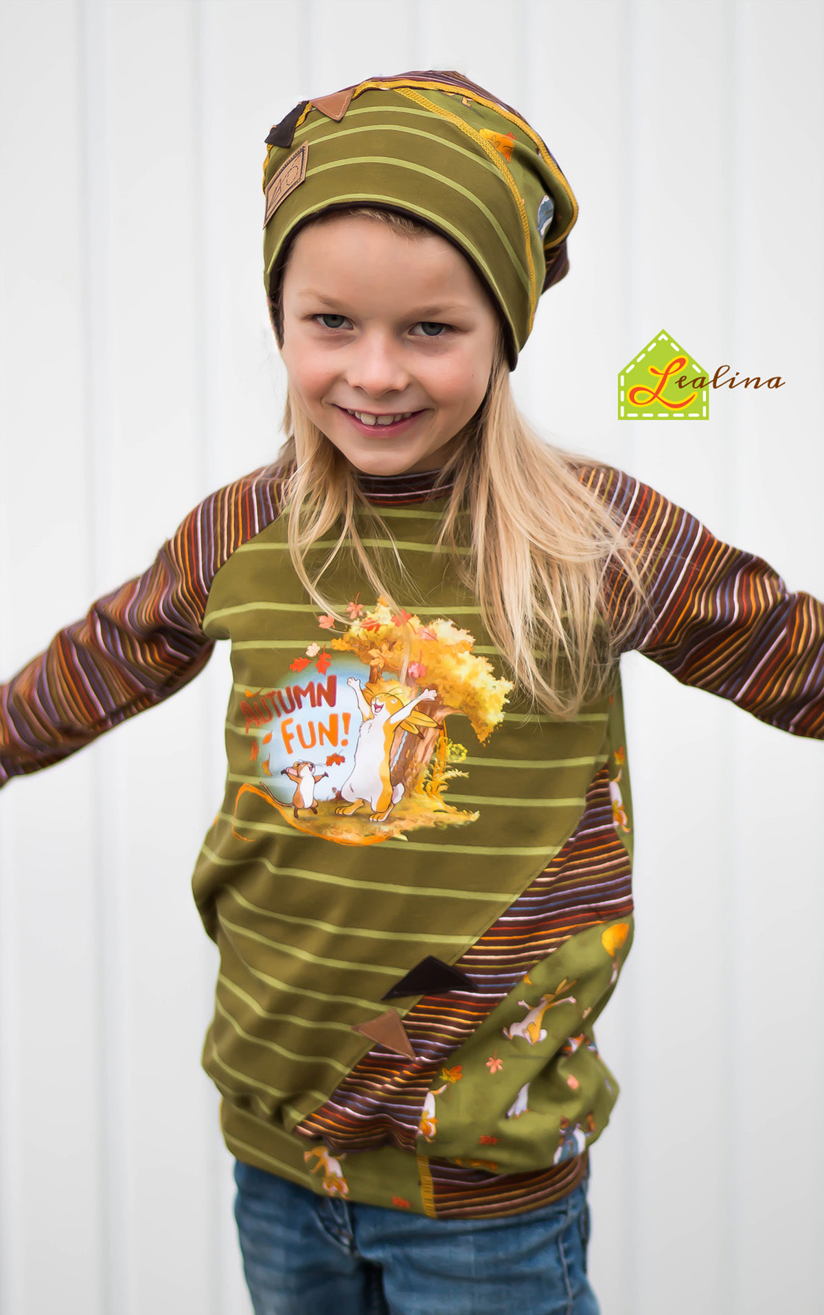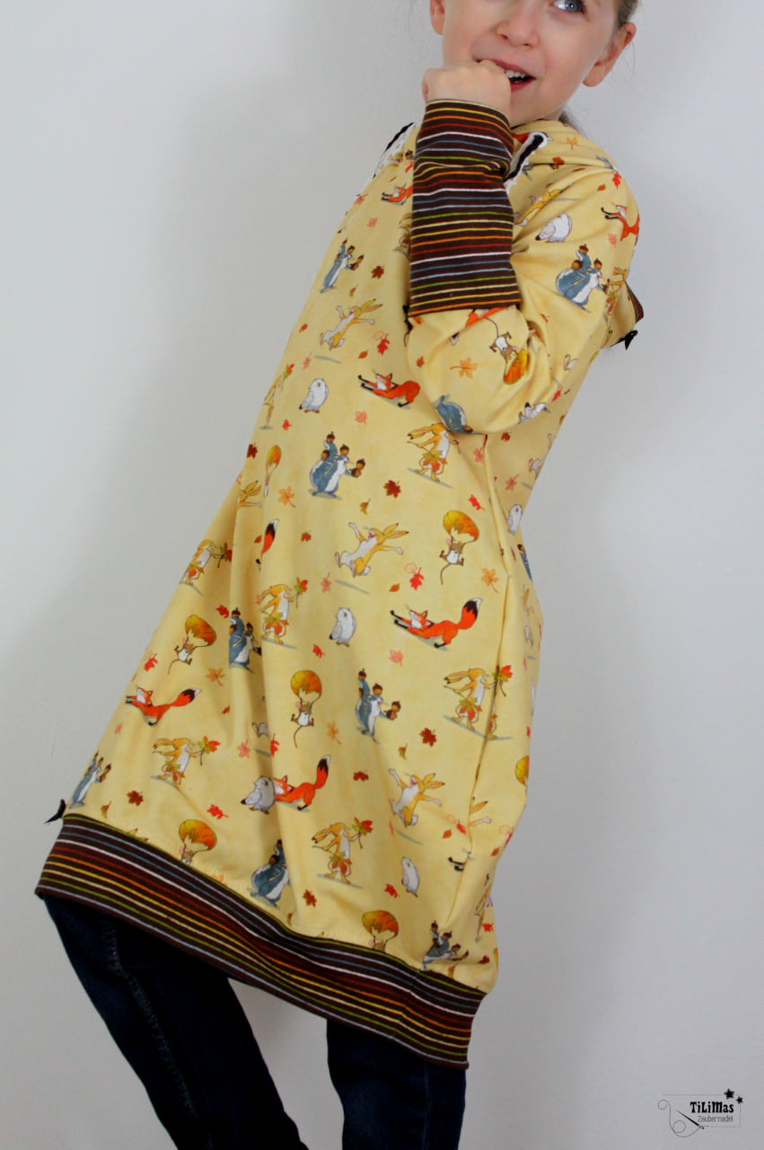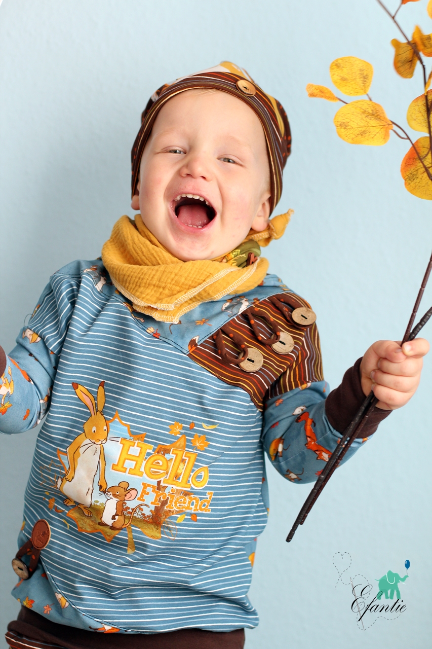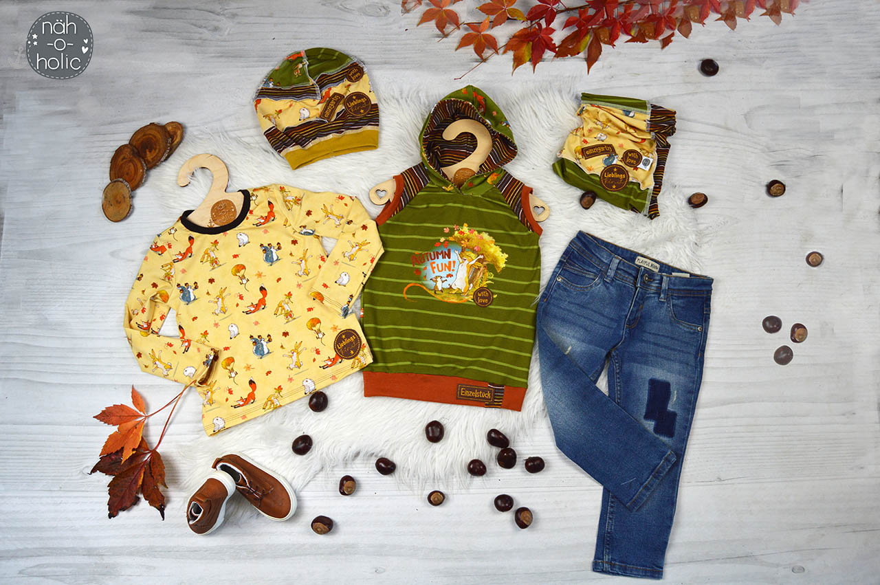 Passend dazu haben wir als Kombistoff unsere Ringel „Fall Rainbow“ für Euch. Die Ringel sind aber auch solo vernäht oder wiederum kombiniert mit Unistoffen ein echtes Highlight. Wir lieben es, wenn unsere Stoffe, die eigentlich als Kombistoffe gedacht waren, ihren Soloauftritt bekommen und ganz alleine für sich stehen können.