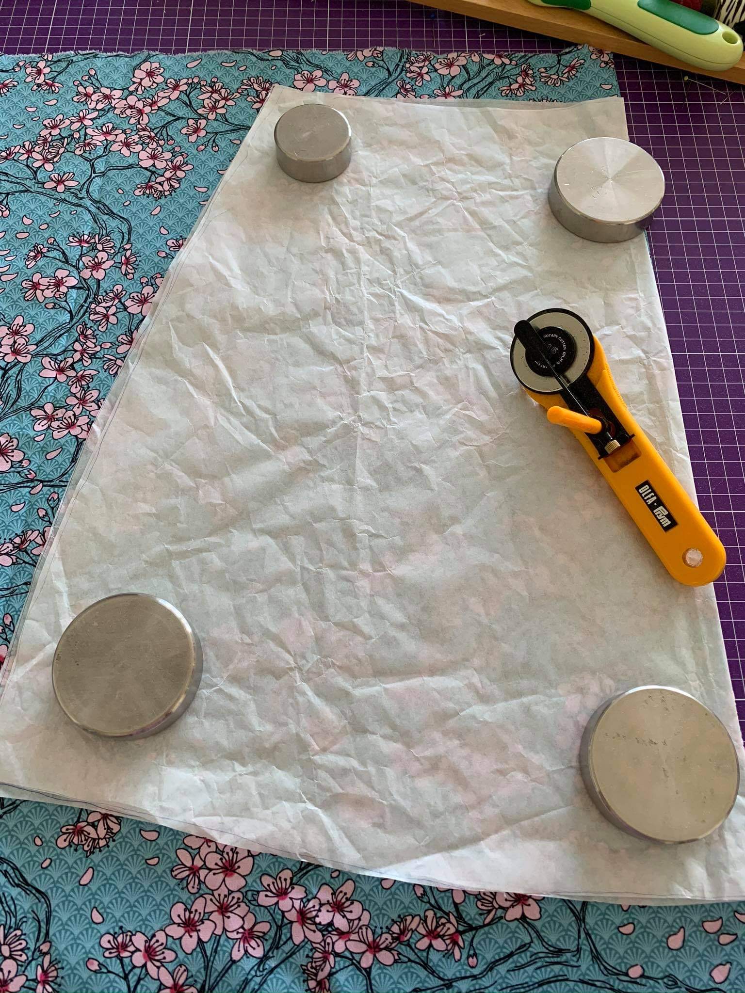 Von einem vorhandenen Rock habe ich mir so Pi mal Auge das Schnittmuster abgepaust. Dann habe ich das auf Stoff gelegt und einfach ausgeschnitten.