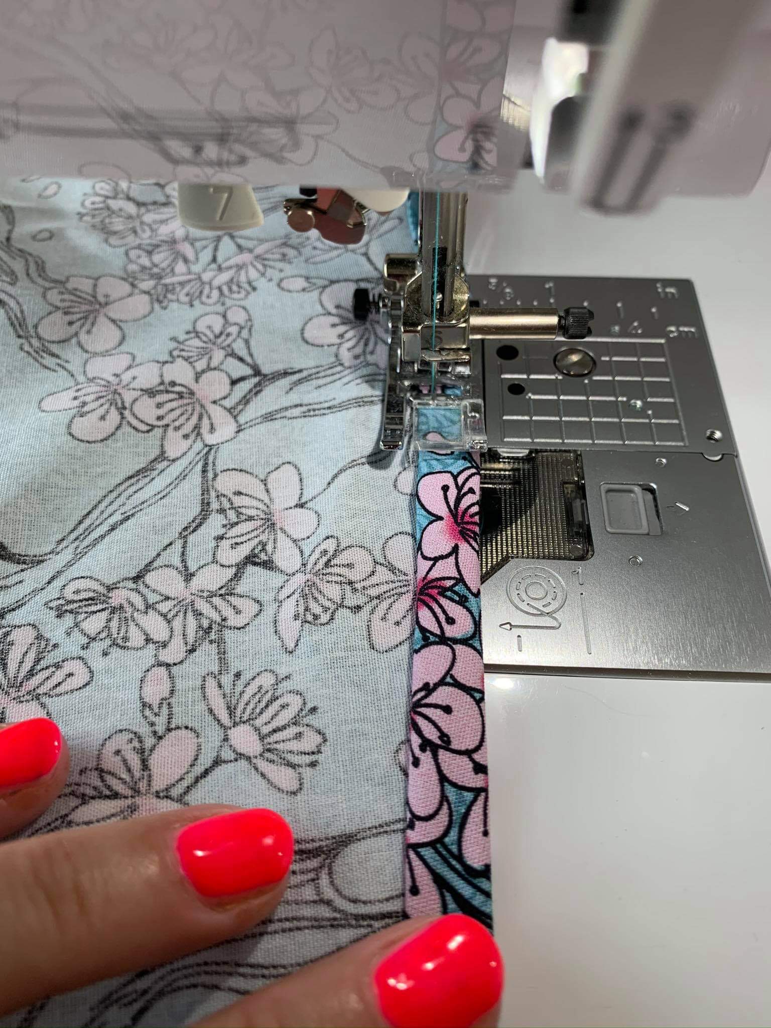 An der einen Seite habe ich es ganz fest genäht und an der anderen Seite mit großem Geradstich, dass ich die Gummis noch ziehen kann.