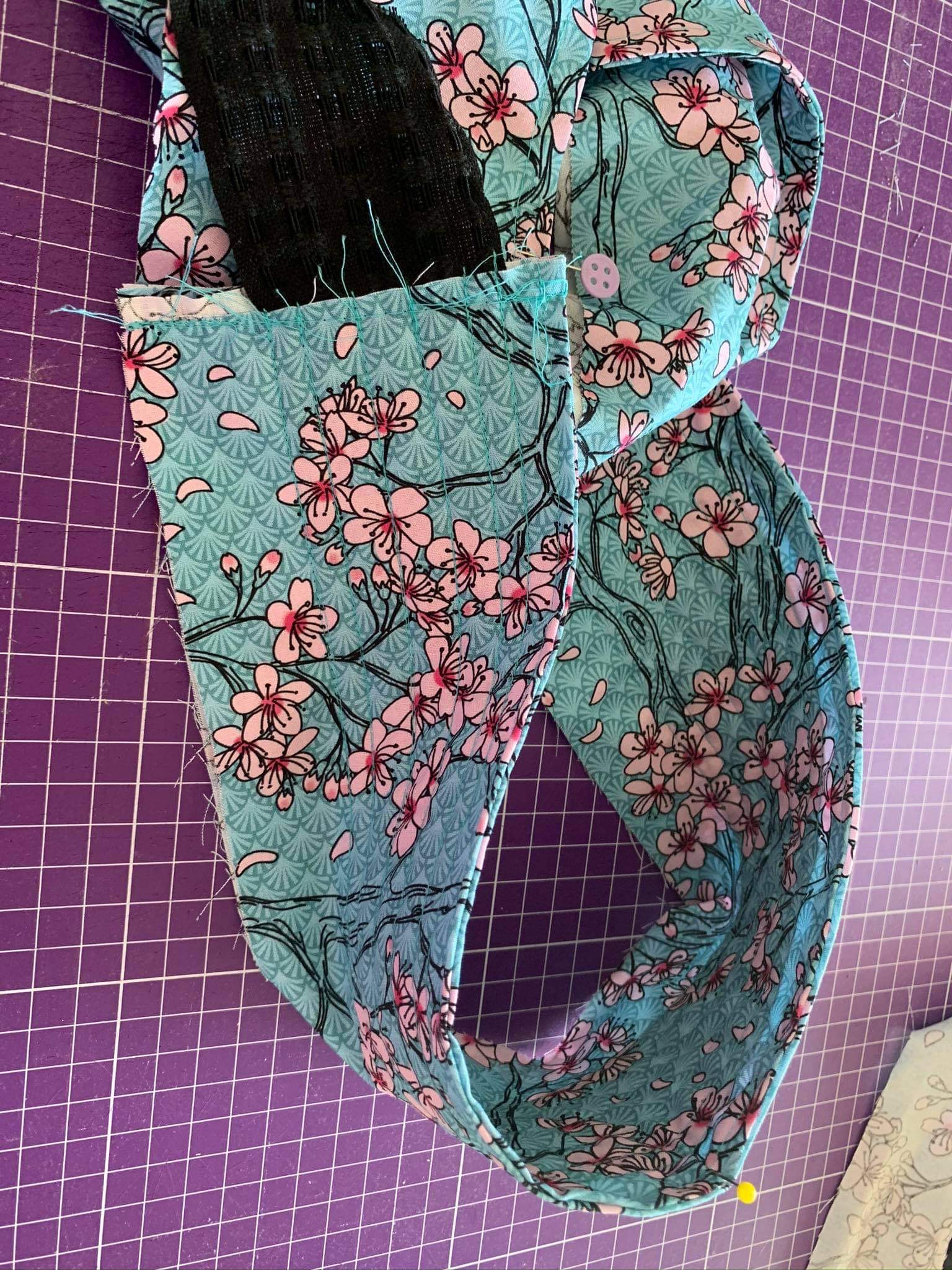Dann habe ich den zweiten Streifen rechts auf rechts an den anderen genäht und das ganze umgeklappt und abgesteppt.