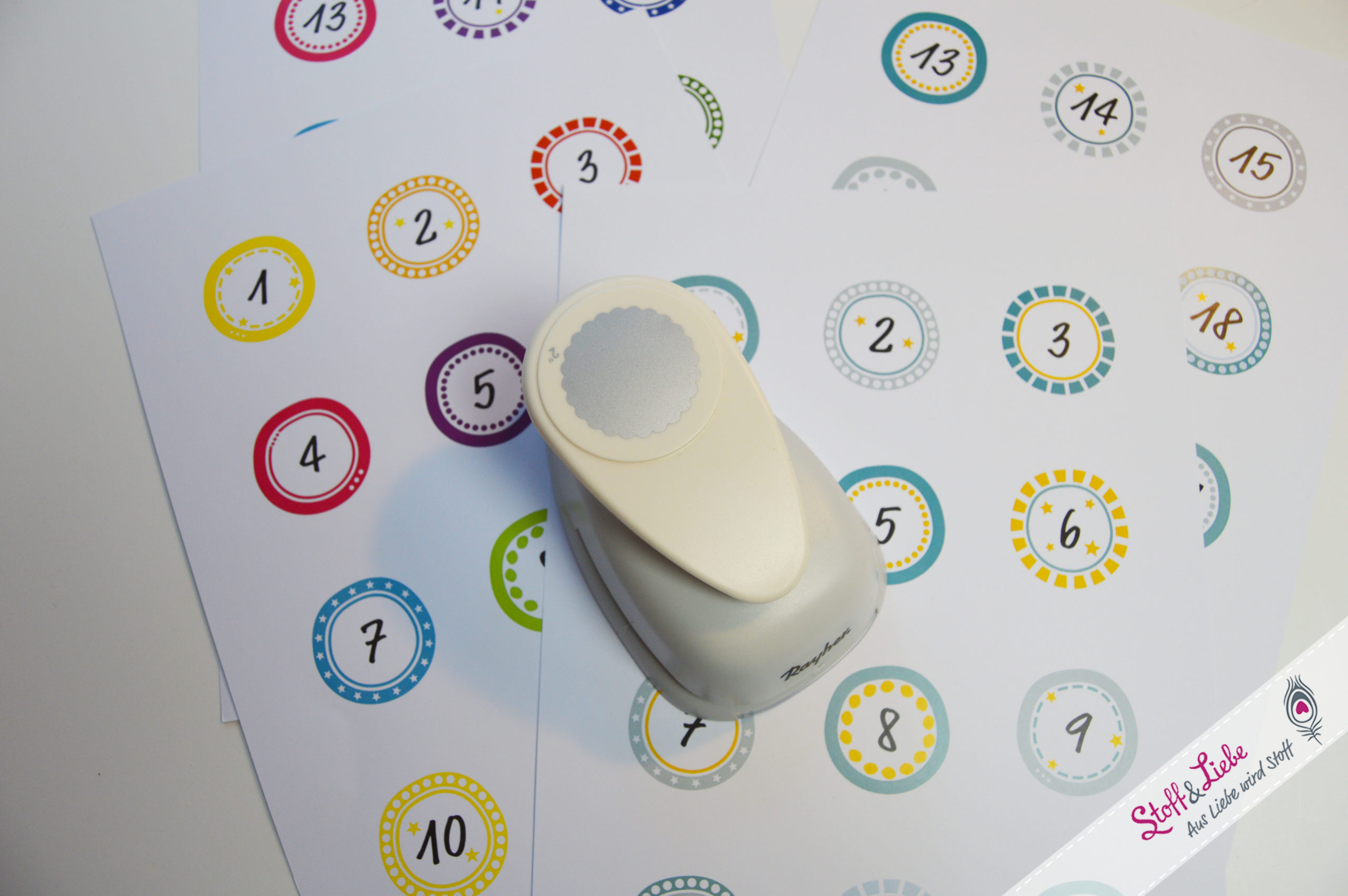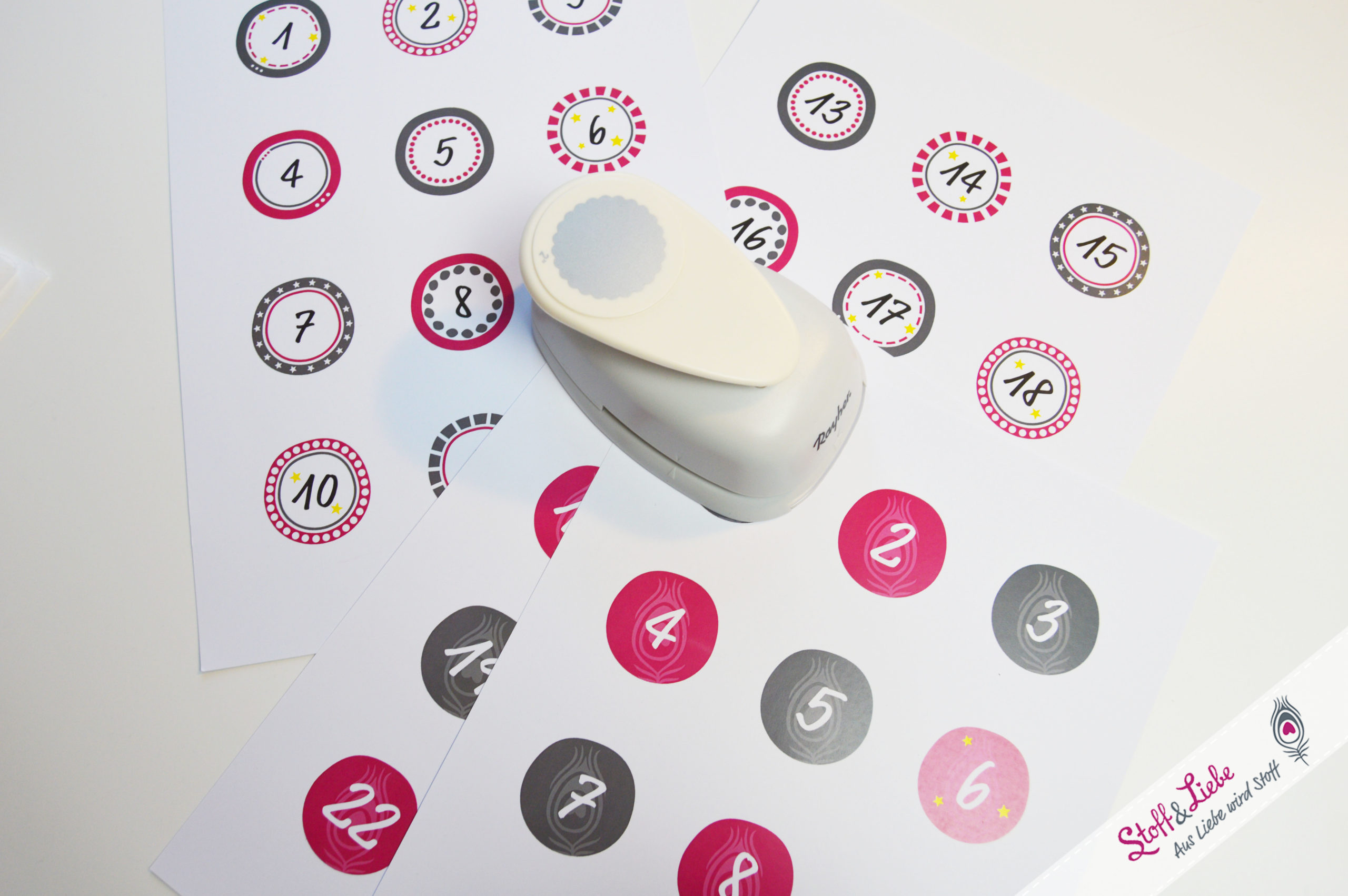 - Ausdruck der Zahlen 1-24 auf 200 g Papier in einer von zwei passenden Farbstellungen