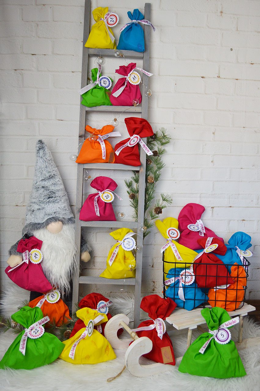Erinnert Ihr Euch noch an unsere Regenbogentäschlein von Grünstiche und Näh-o-holic? Die Regenbogen-Näh-Pakete kamen so gut bei Euch an, das wir uns gedacht haben, dass ein Regenbogen Adventskalender bestimmt auch genau Euren Geschmack treffen wird.