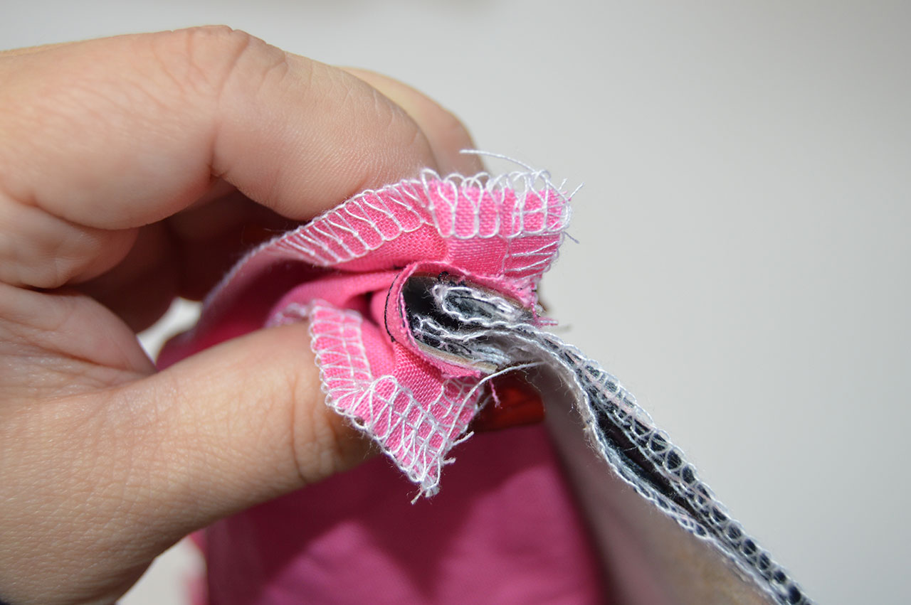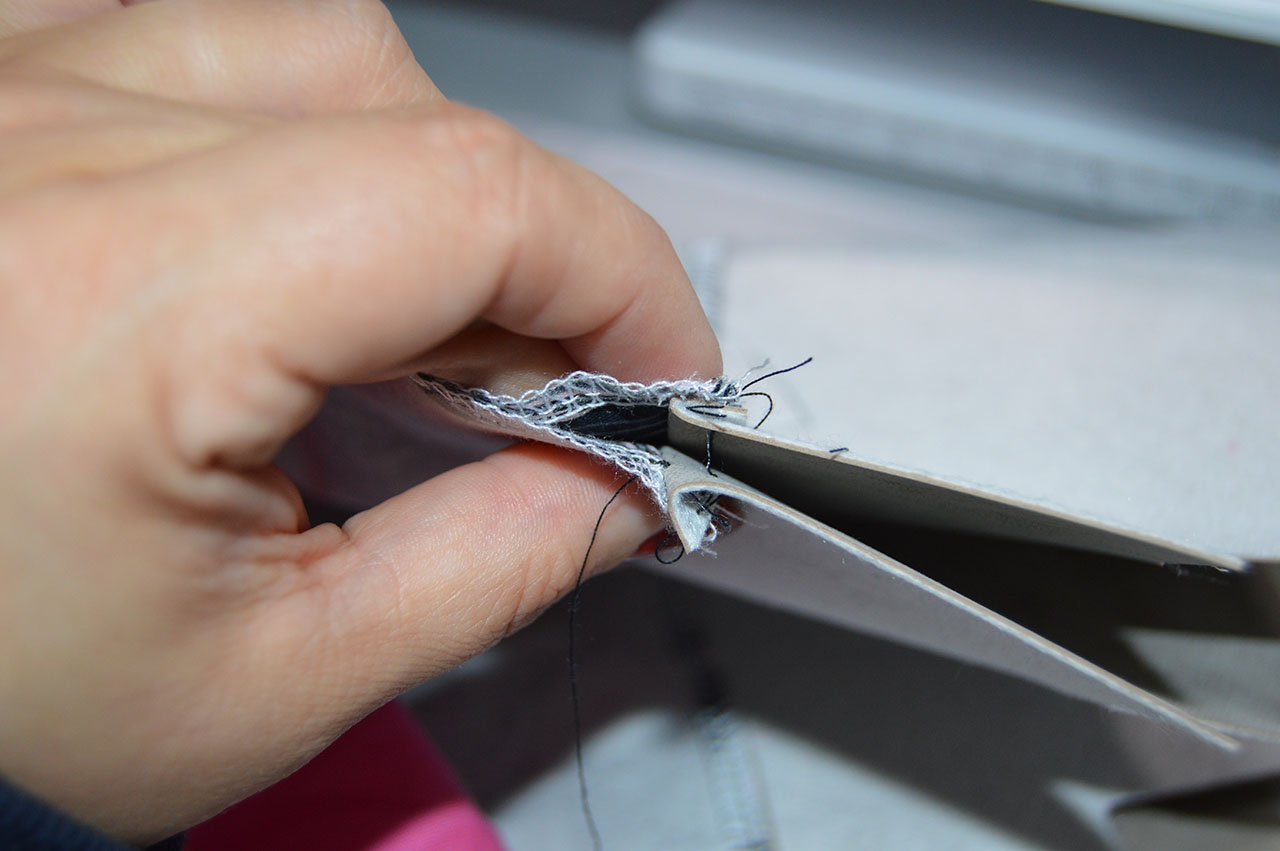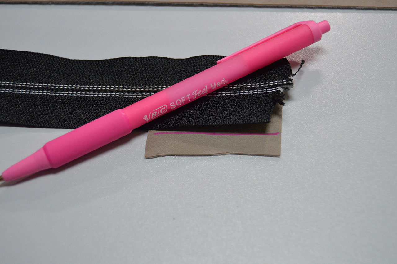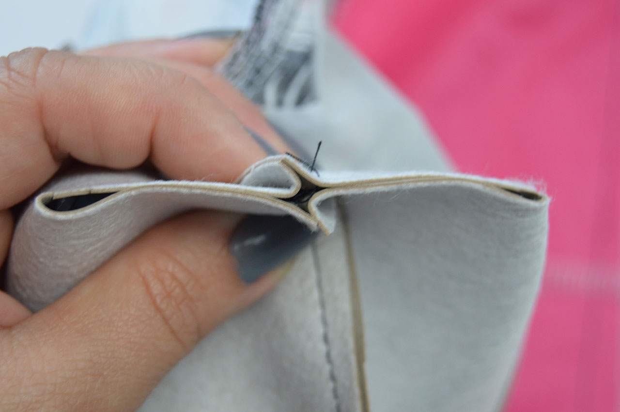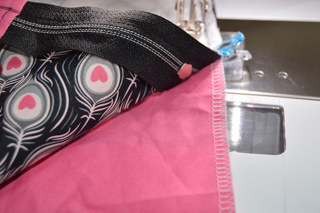 Um bei Eurer Kosmetiktasche schöne Reißverschluss-Enden zu bekommen, fassen wir diesen ein.