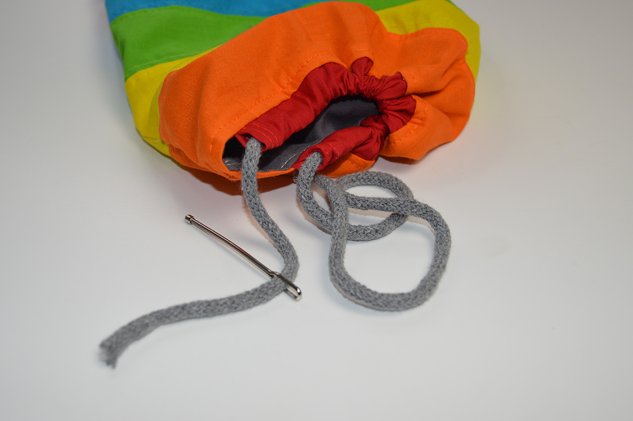 Jetzt könnt Ihr Eure Kordel in Wunschlänge, mindestens aber 60 cm durchziehen.