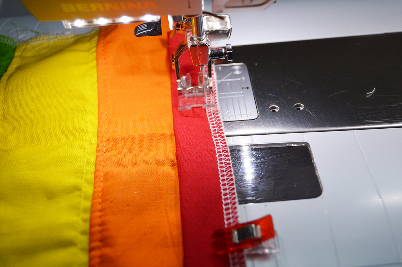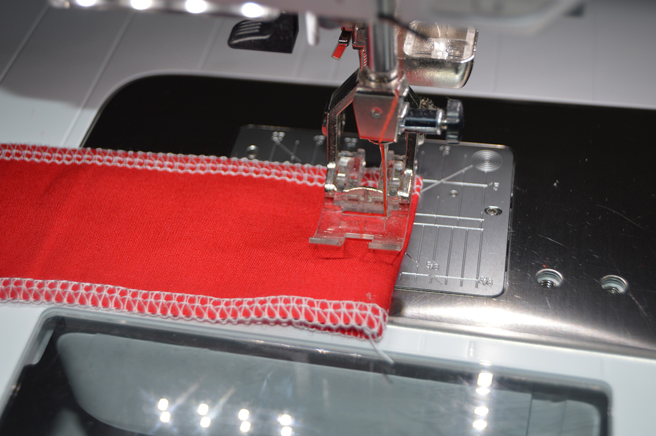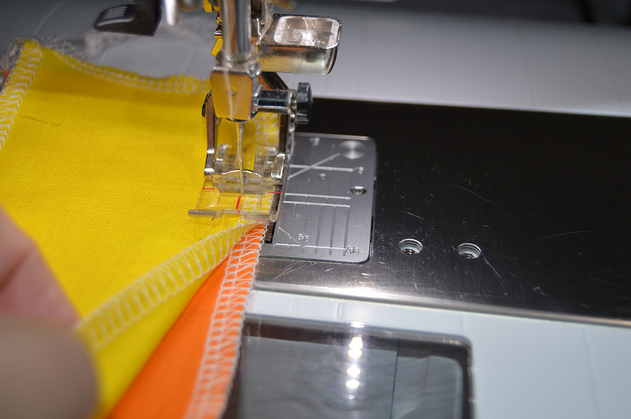 Achtet darauf, das Ihr die Nadelposition so einstellt, das Ihr Eure Naht genau neben der Versäuberungsnaht setzt.