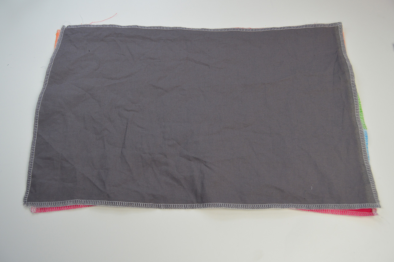 Steppt im Anschluss alle Nähte knappkantig ab. Fleißarbeit: immer passendes farbliches Garn verwenden