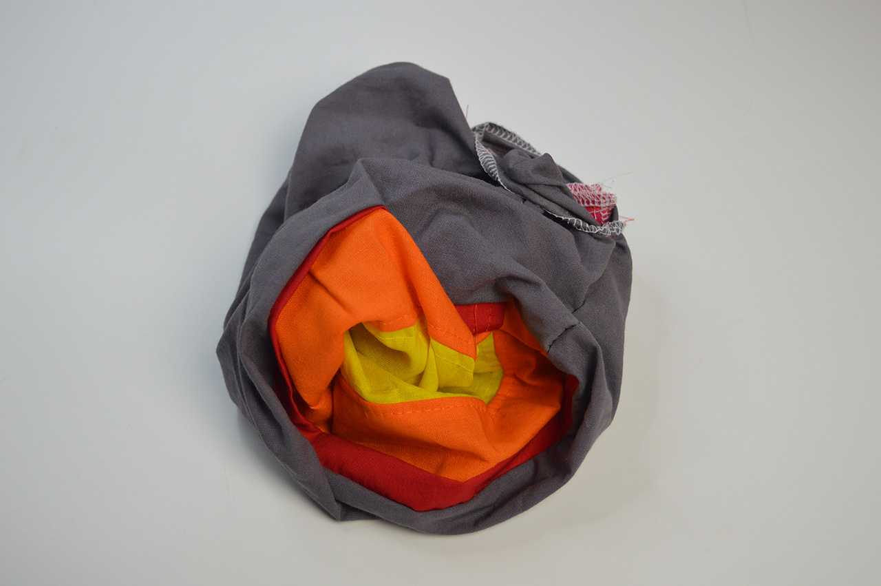 Wendet den Beutel durch die Wendeöffnung und formt ihn aus. Schließt die Wendeöffnung per Hand oder mit der Nähmaschine.